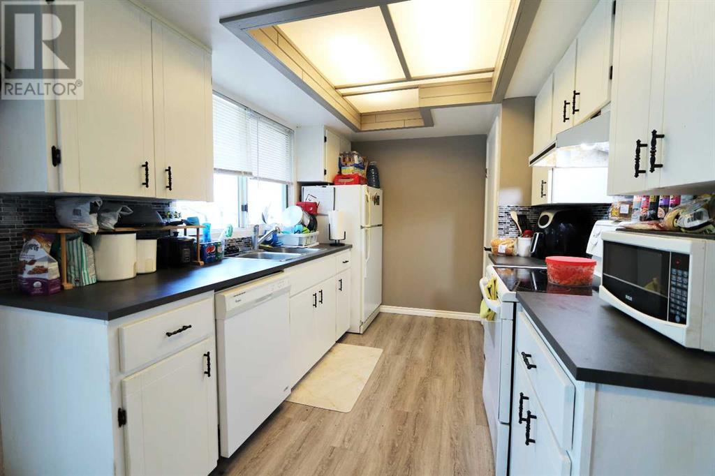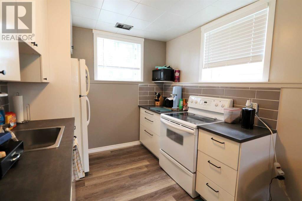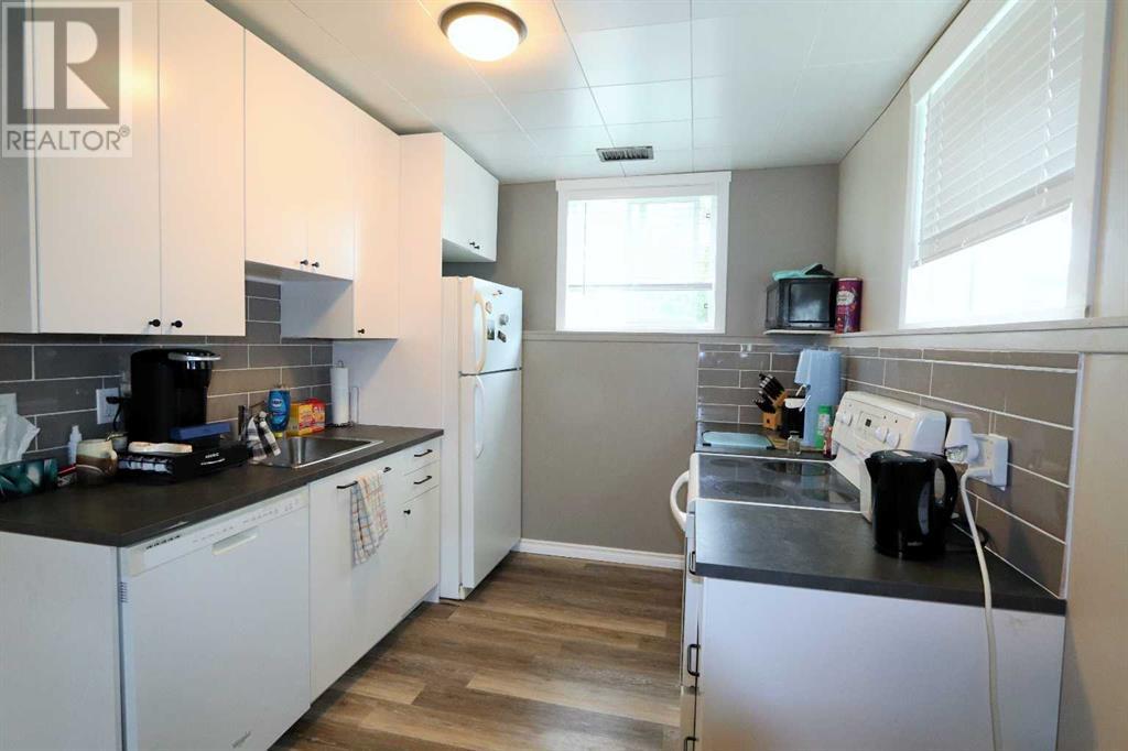 Affordable raised bungalow close to downtown amenities. This one checks a lot of plus boxes, functional main floor plan with 2 bedrooms, large living room, dining room and bright kitchen. The large windows brighten the recently renovated basement suite, with 2 bedrooms, 4 pce bathroom, storage area, living room and kitchen. There's a shared laundry area in the common space. Enjoy the private deck and newly fenced rear yard. The 24x24 detached garage is great for the work shop or parking for 2 vehicles. Brand new vinyl siding gives you years of maintenance free exterior. (id:22211)