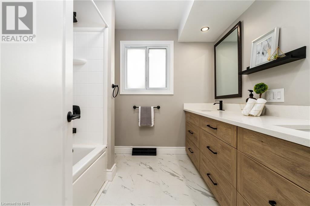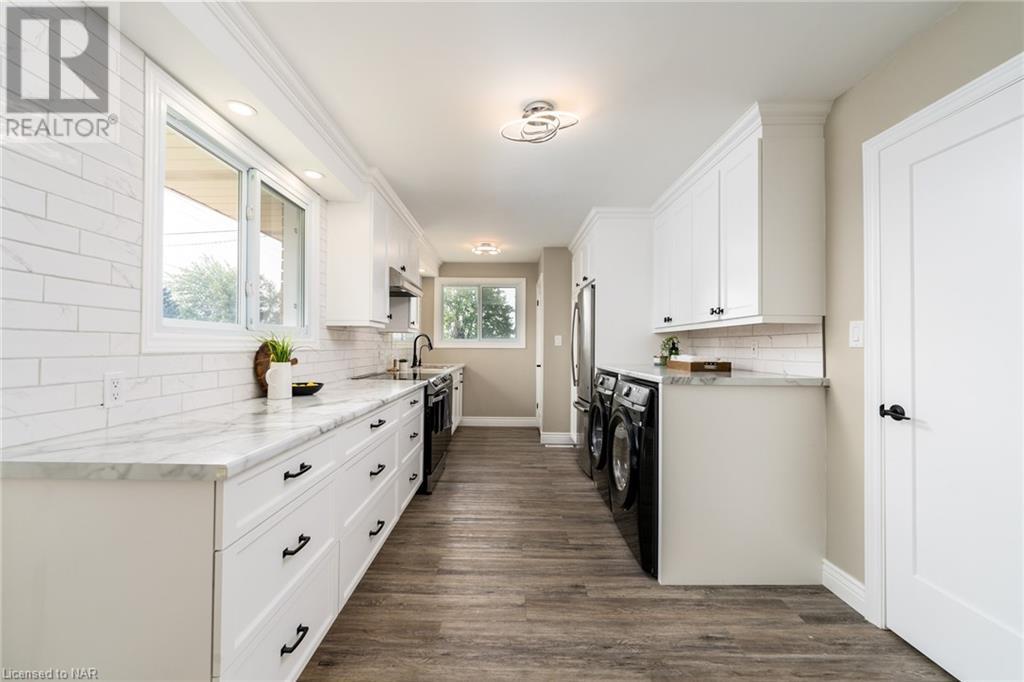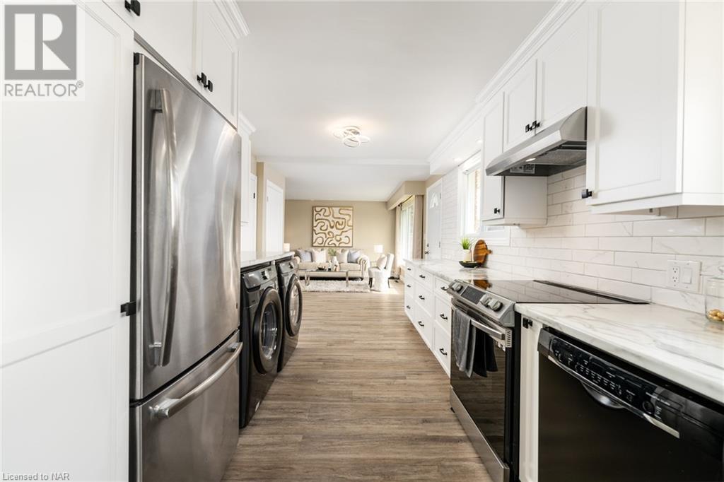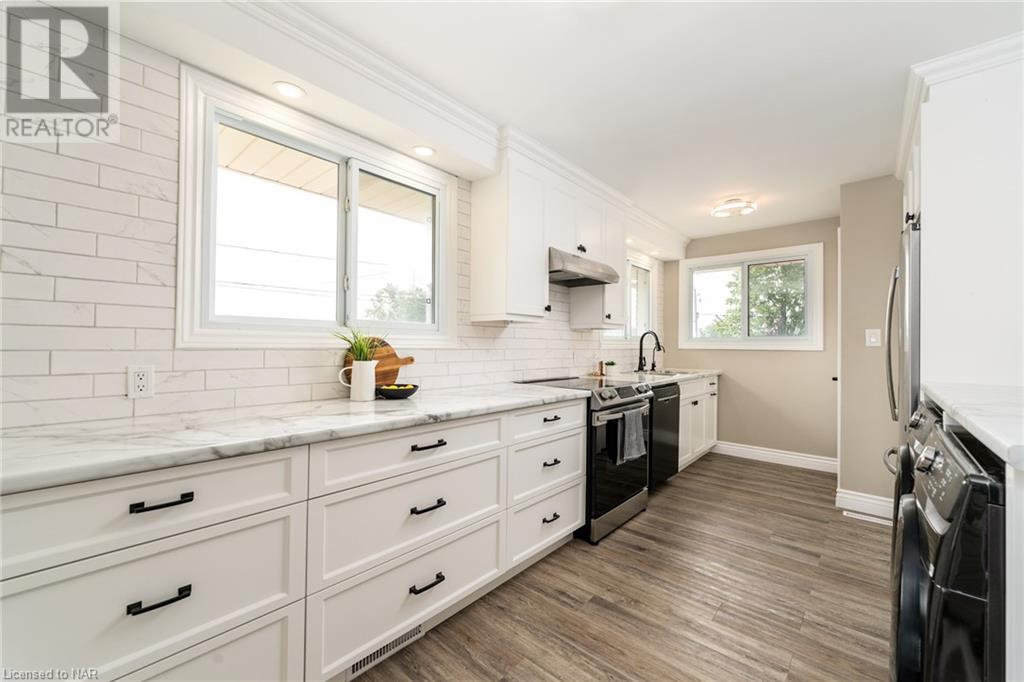 Welcome to 1060 Steele Street, Port Colbourne. Situated in a wonderful family neighbourhood with close proximity to parks, schools, dining and all the amenities. This superb three-bedroom, three-bathroom property is fully renovated and move in ready! Enjoy the outdoors and summertime in your private oversized 60 x 170 fenced yard perfect for relaxing and entertaining. For the car enthusiast, this property greets you with a four car, double wide driveway and an attached garage. Main floor features a gorgeous white shaker cabinetry kitchen with stainless steel appliances, an open concept living room and dining room with lots of natural light from the walk out patio doors that lead you to a brand new 12x12 deck. The floor plan continues with one large primary bedroom, a powder bathroom and a five-piece bathroom featuring a stunning jacuzzi tub and a custom Azule his and hers vanity with quartz counter tops. Looking for extra income? This property features a lower level with in-law potential that has a separate entrance to the basement. Plenty of space with two bedrooms, a full bathroom, kitchen and recreational room. Great opportunity for investors or those looking to offset their monthly payments. Noteworthy upgrades include; newer appliances, two sets of new washer and dryer, new furnace (2022), new flooring, new baseboards, new casing, new Azule custom kitchen cabinetry and backsplash, new light fixtures, new deck, new concrete pad and the list goes on and on. Don’t miss this chance. Call today! (id:22211)