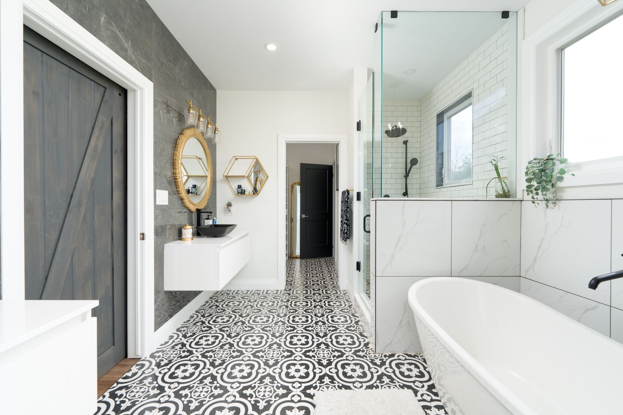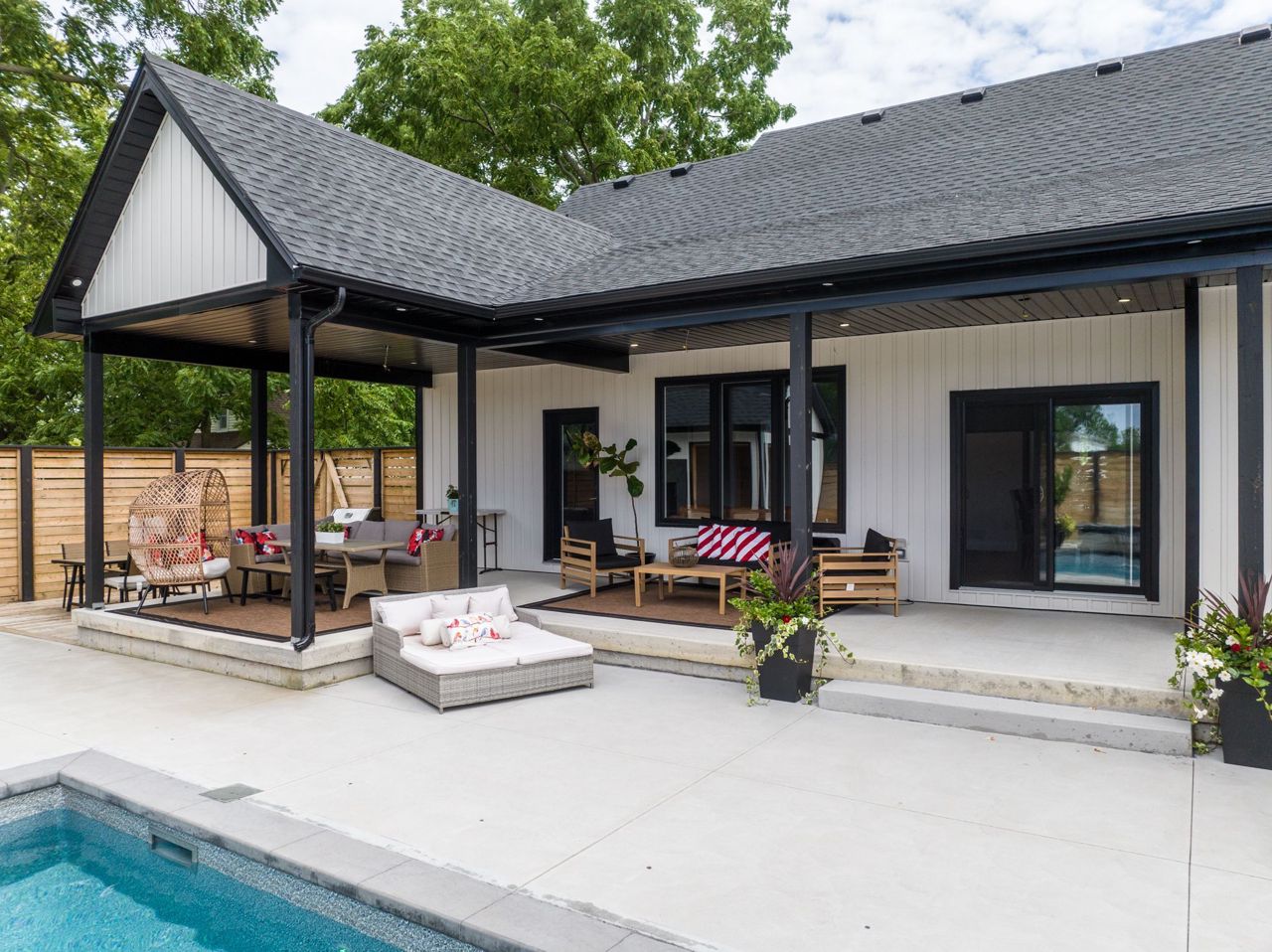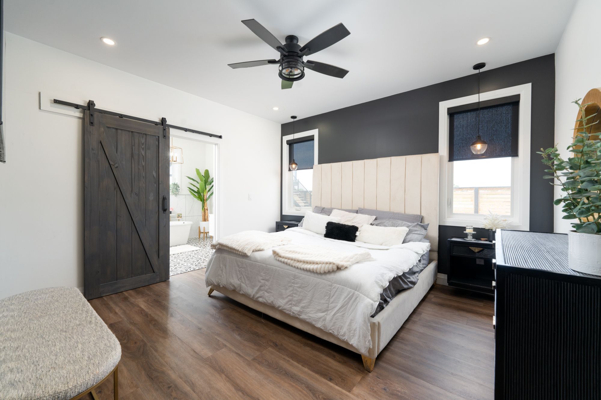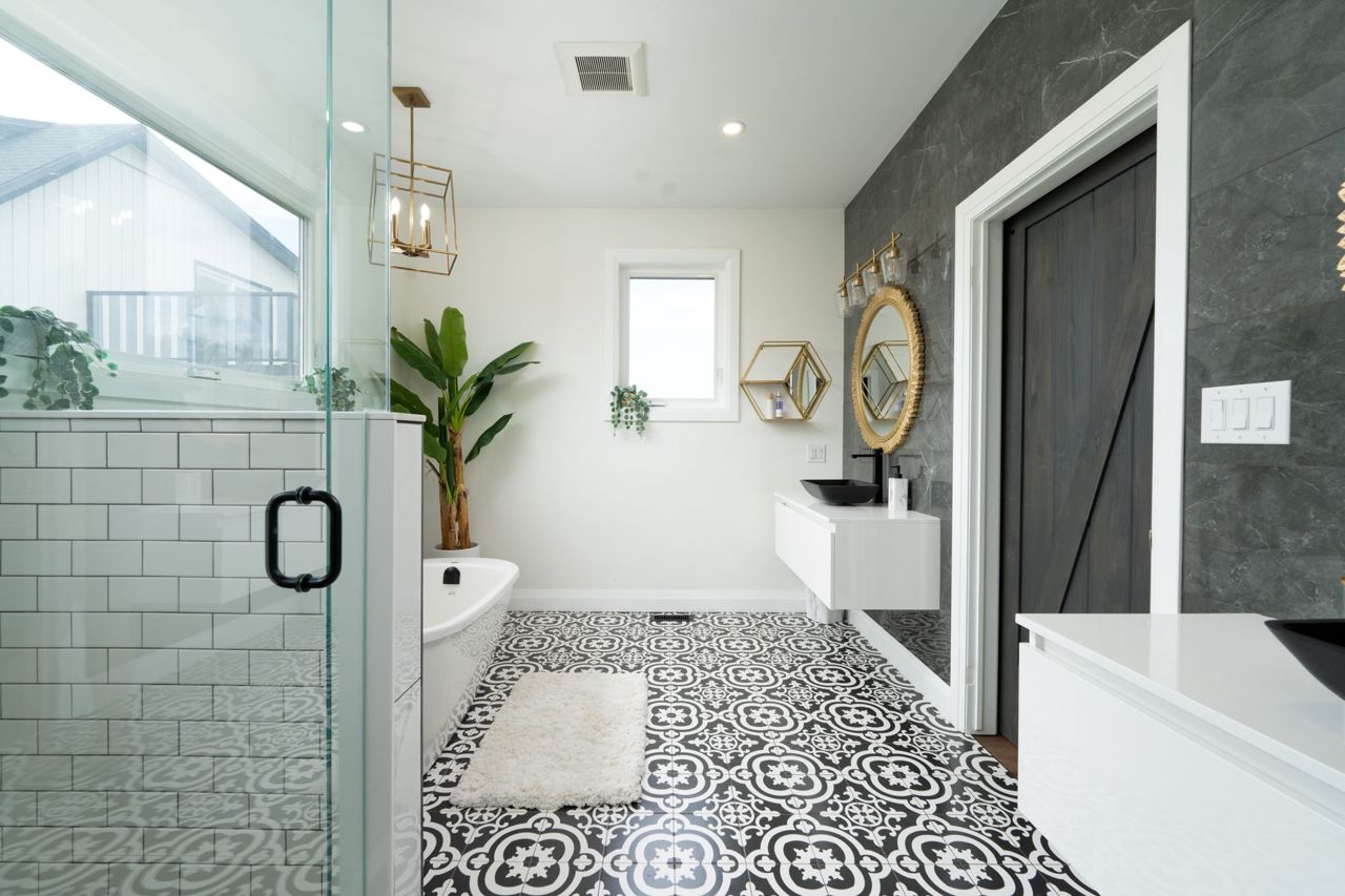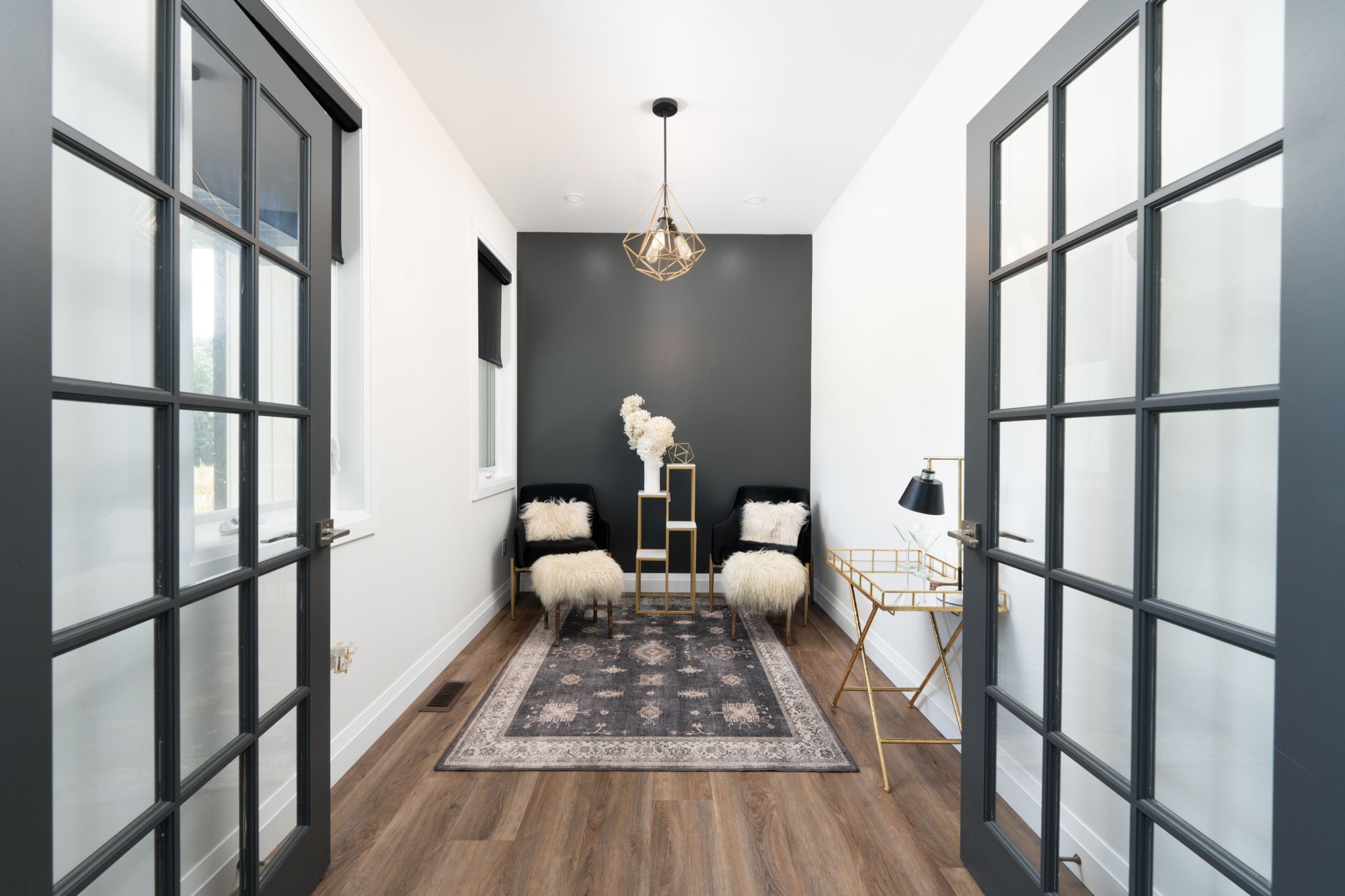 This Modern Chic Farmhouse Bungalow offers, over 2700 sq feet of living space, four bedrooms, 3 bathrooms, and an office space.