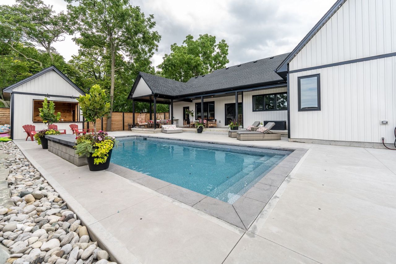 This thoughtfully designed masterpiece checks all the boxes. The kitchen is fully equipped with custom finishes and an oversized quartz island and a white farm sink. At one corner you’ll find a blissful wine closet and at the other, a walk-in pantry, both make for a pleasing way to entertain friends and family. The living room and grand entry boast high ceilings and a walk through to the covered patio - open it all up for a lovely indoor/outdoor living space in the breezy summers. Each bedroom is oversized leaving the kids plenty of room to grow. The master bedroom is equipped with a 5 piece luxury ensuite, making your morning routines a pleasure. Don’t forget about your two story guest house. Kick back and relax in this unbeatable backyard oasis, sea salt pool and pool house to top it all off.If you don't want to hang in the backyard, then head down to the beautiful white sandy beach at the end of the road. Oh decisions, decisions!