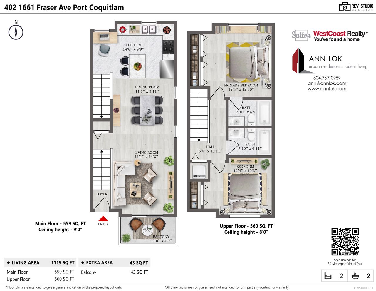 Ultra spacious END-Unit two storey 2 Bedroom 2 Bathroom townhouse on a QUIET street, central location to the best of PoCo and steps to Maclean park. Modern open floorplan south-facing with ample windows w/ plenty of natural light & open wide streetscapes. Featuring 9’ ceilings, newly renovated stylish laminate flooring & freshly painted thruout, an entertainment sized living AND dining area – perfect for hosting get-togethers or for ultimate comfort in home/family living, XLarge kitchen with breakfast island, flex corner off kitchen area for a dreamy banquet dining or work station, 43 sf balcony for bbq’ing, upper level w/ 2 spacious bedrooms & 2 bathrooms w/ a primary ensuite bathroom, 1 parking & 1 storage. Quick & Easy access to major routes, Downtown Poco, Save-On & Costco.
