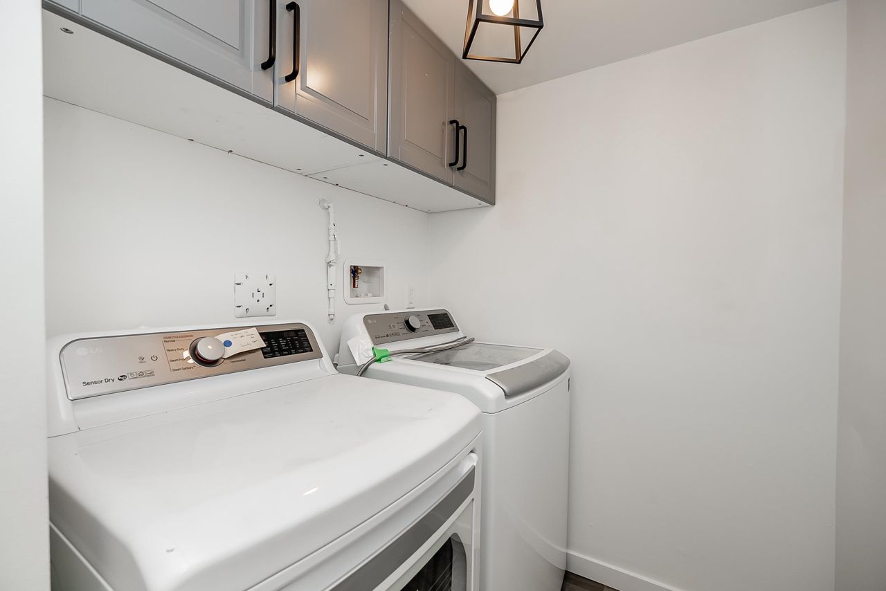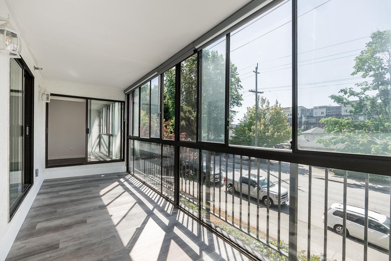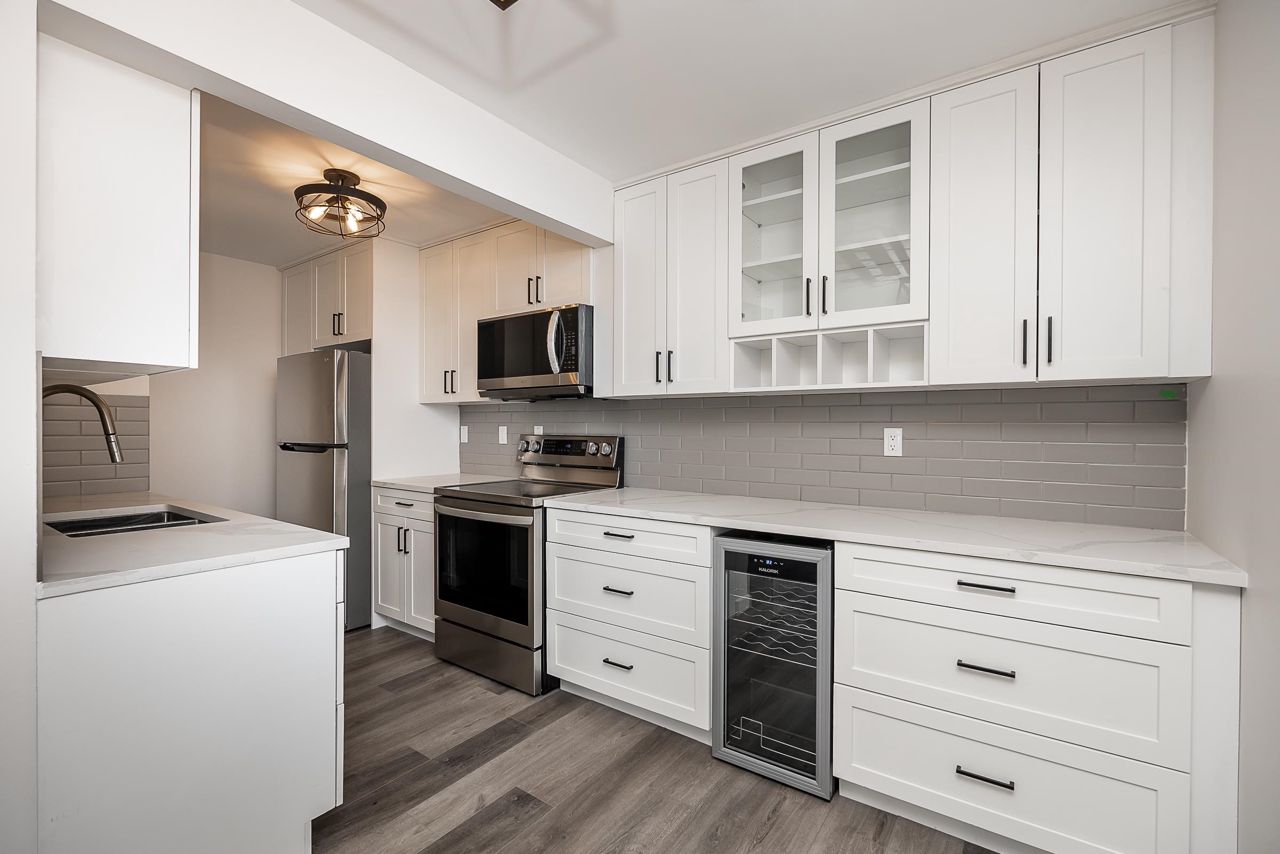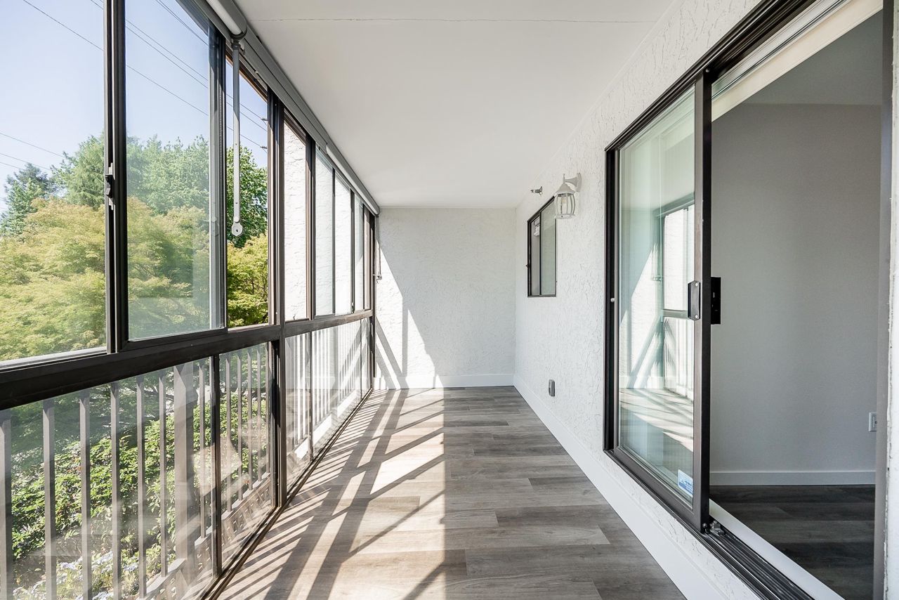 Welcome to this beautiful 2 bed condo in the heart of Port Coquitlam! Offering a generous 939 sq ft plan that has been meticulously renovated! Galley style kitchen with shaker style cabinetry, S/S appliances, under mount sink and quartz countertops with extended custom cabinetry that leads to eating area. Dining seamlessly opens to a bright, generous living room with access to a solarium that is an extension of the living space. Gorgeous bath w/modern rain shower head and handheld. Closets have built-in organizers, laundry room w/side by side machines. Ample in unit storage. New flooring, paint, pot lights, hot water tank, light fixtures and more! A like-new building with an exceptional Strata Council. Prime location - walking distance to Poco rec centre, WCE, trails and downtown Poco.