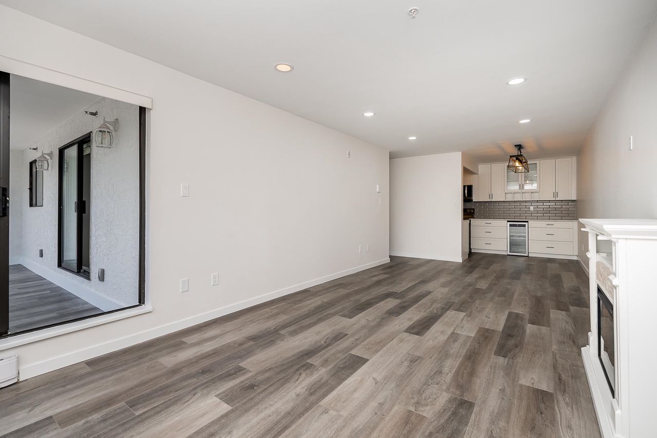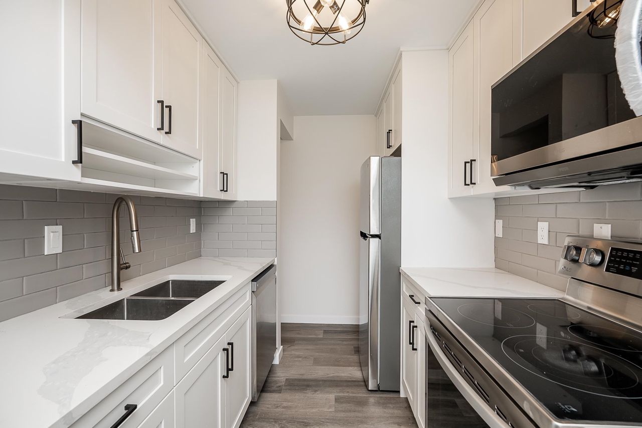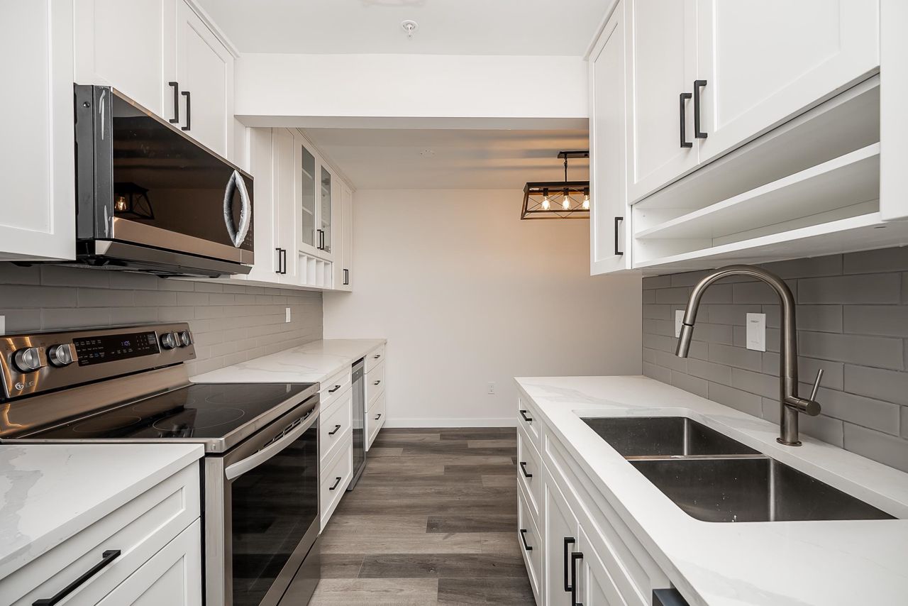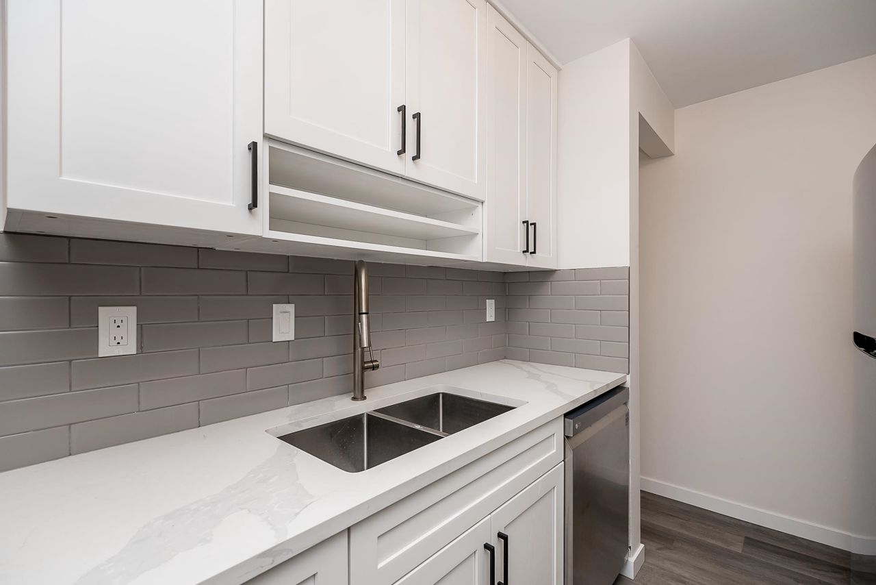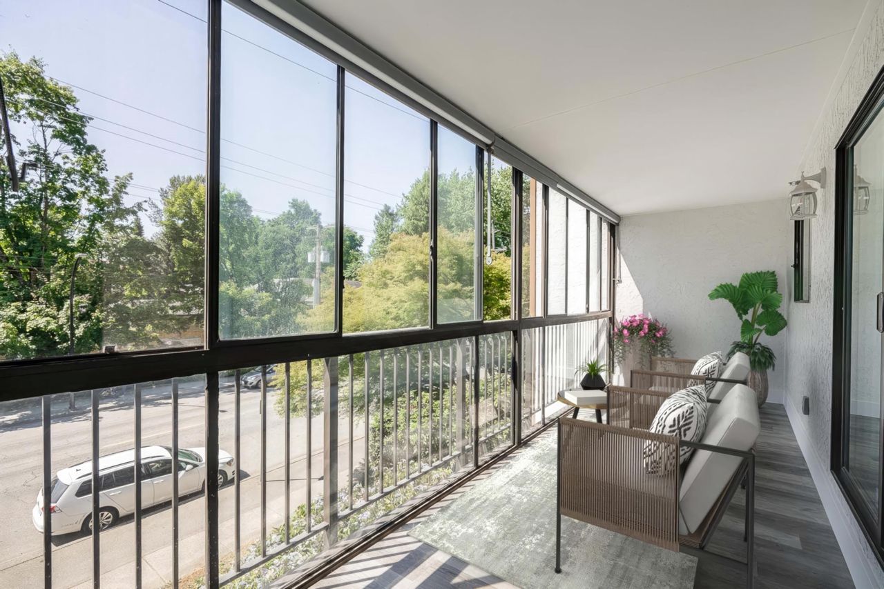 Welcome to this beautiful 2 bed condo in the heart of Port Coquitlam! Offering a generous 939 sq ft plan that has been meticulously renovated! Galley style kitchen with shaker style cabinetry, S/S appliances, under mount sink and quartz countertops with extended custom cabinetry that leads to eating area. Dining seamlessly opens to a bright, generous living room with access to a solarium that is an extension of the living space. Gorgeous bath w/modern rain shower head and handheld. Closets have built-in organizers, laundry room w/side by side machines. Ample in unit storage. New flooring, paint, pot lights, hot water tank, light fixtures and more! A like-new building with an exceptional Strata Council. Prime location - walking distance to Poco rec centre, WCE, trails and downtown Poco.