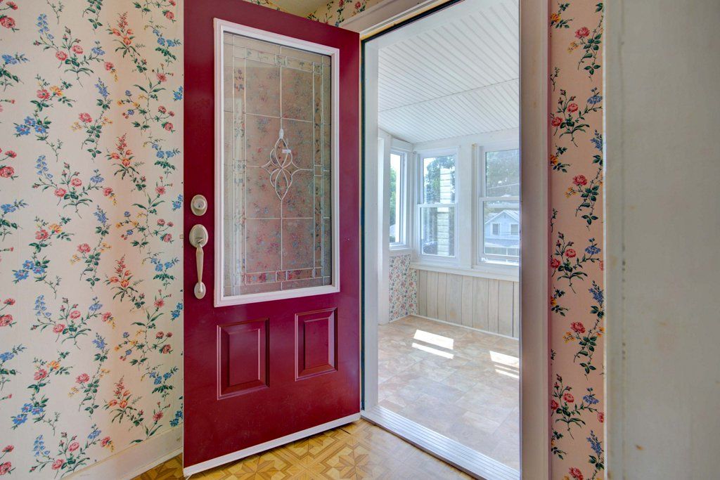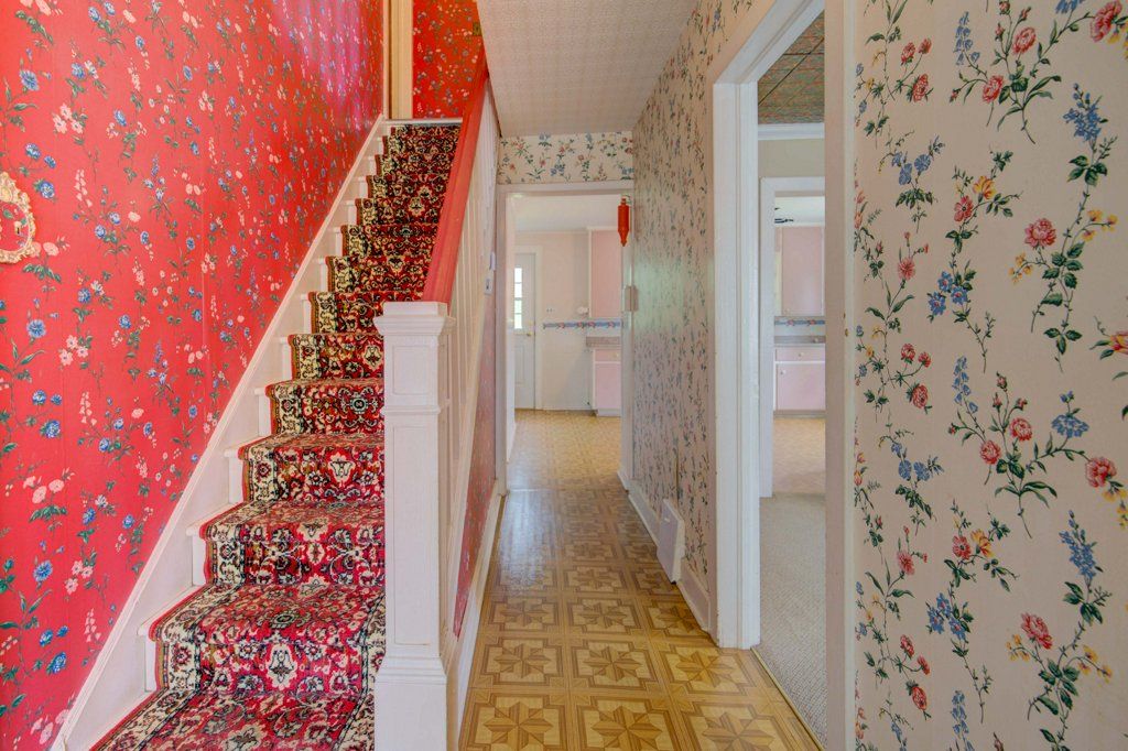 Inside, a large, sunny, enclosed porch opens to a main floor that features a large sitting room, formal dining/living room, a large working kitchen and a main floor primary bedroom both with a view of the rear garden.