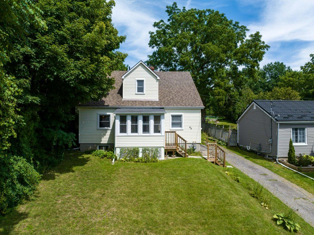 Located in a quiet, rural neighborhood just steps away from all of the conveniences of town including a senior’s center and a youth recreation facility only a block away, and only a short distance to highway 401, this cozy mid-century 1.5 story home sits on an extra deep lot surrounded by mature trees.
