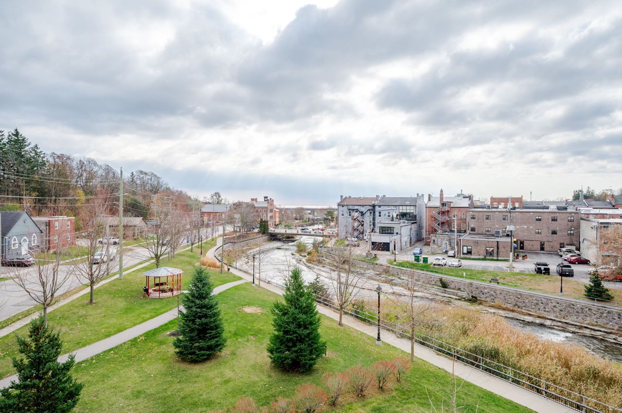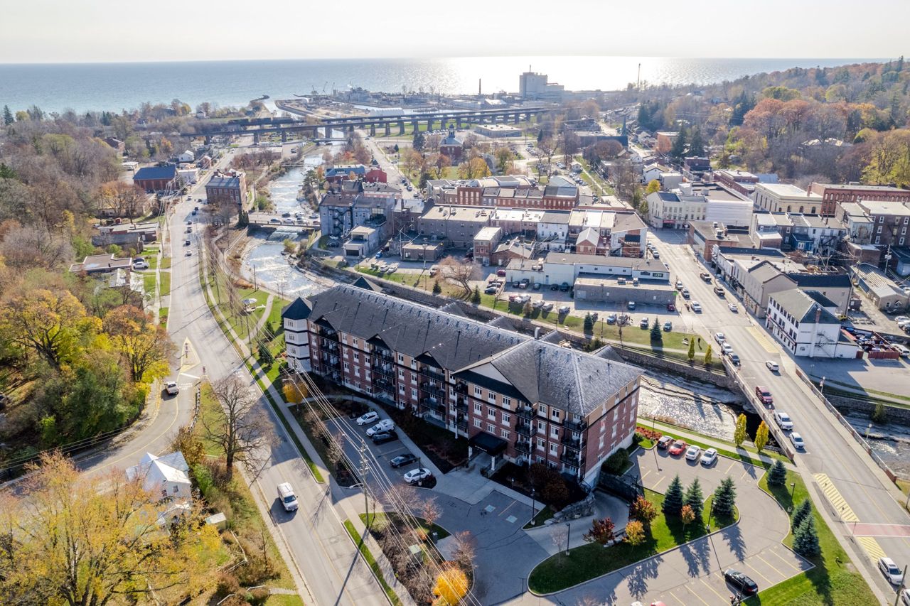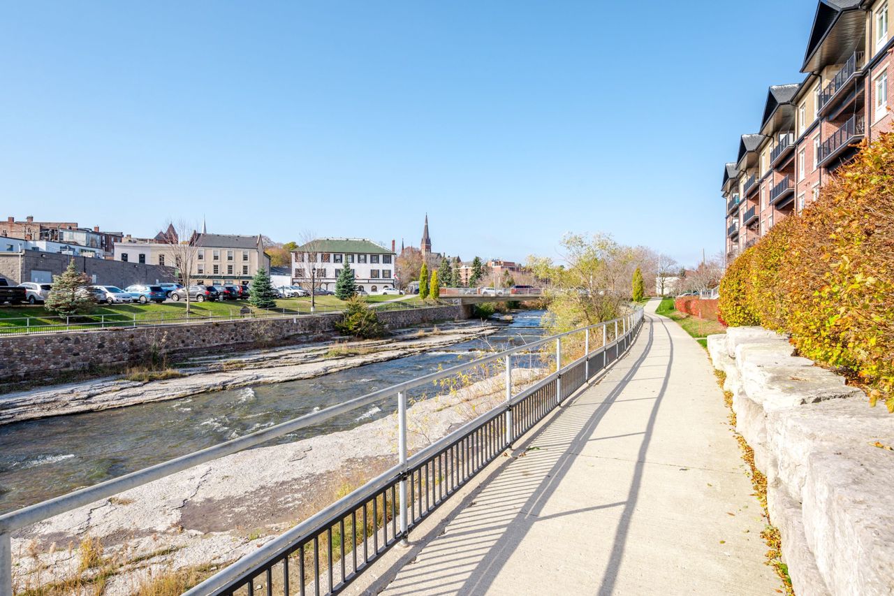 The living space is bathed in natural light with commanding views from every window of this corner unit. Offering 1 bedroom, 2 bathrooms, in-unit stackable laundry, open concept living room, kitchen & dining room. Step out to the covered balcony and enjoy the sights & sounds of the Ganaraska River. Perfectly situated by the riverside trail, and steps away to Port Hope's vibrant downtown core, where you can explore the unique shops, cafes, bakeries, breweries, theatre, parks, trails, and fine cuisine. A lifestyle that is easy to embrace.