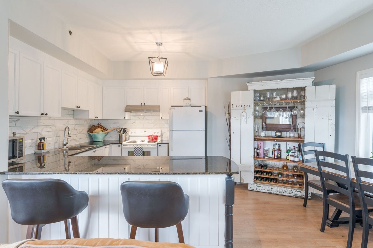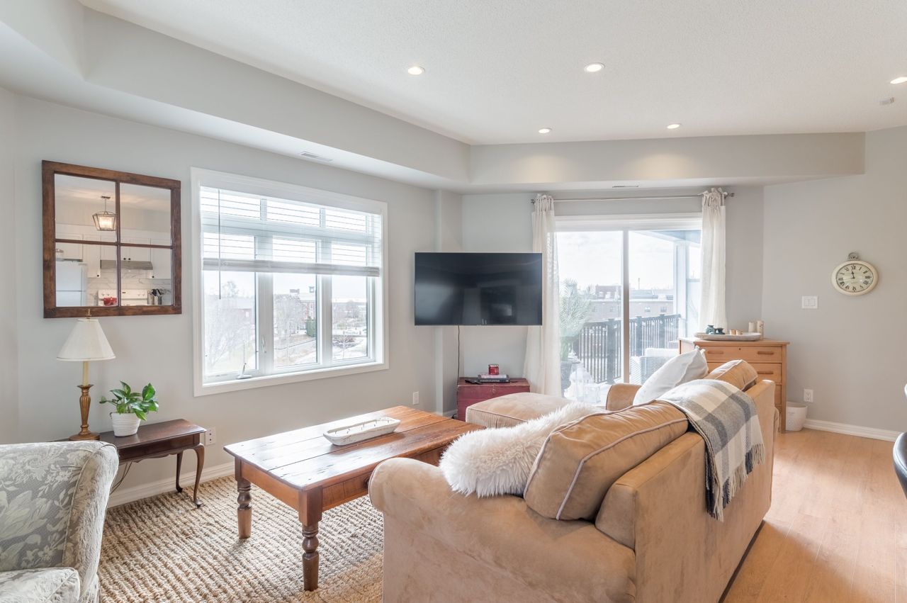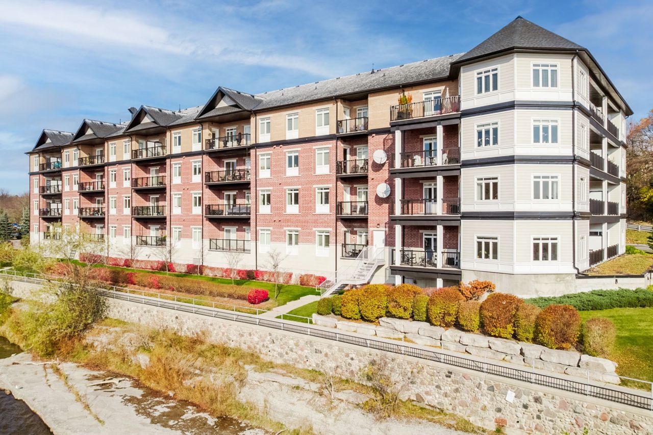 The living space is bathed in natural light with commanding views from every window of this corner unit. Offering 1 bedroom, 2 bathrooms, in-unit stackable laundry, open concept living room, kitchen & dining room. Step out to the covered balcony and enjoy the sights & sounds of the Ganaraska River. Perfectly situated by the riverside trail, and steps away to Port Hope's vibrant downtown core, where you can explore the unique shops, cafes, bakeries, breweries, theatre, parks, trails, and fine cuisine. A lifestyle that is easy to embrace.
