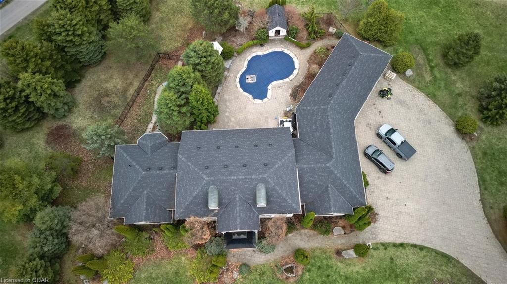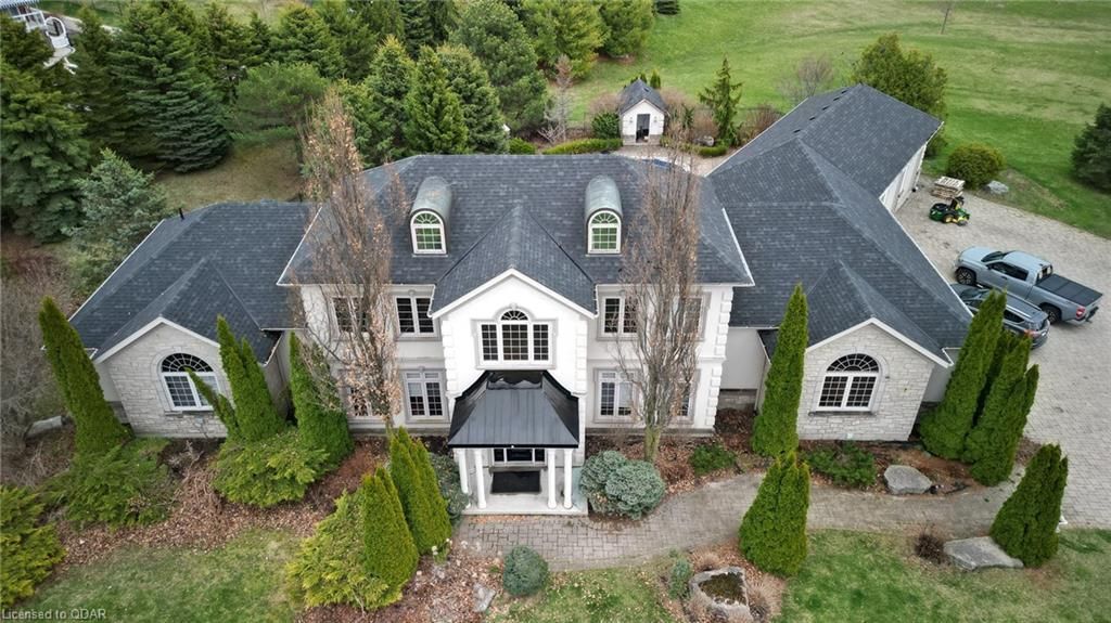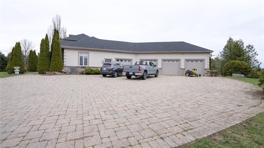 Welcome to your dream home! A luxurious custom-built 3 bedroom, 4 bathroom 2-storey with an open concept kitchen/dining and great room. Nestled back from the road on 9.6 acres of stunning land with breathtaking southern views of Lake Ontario and the Port Hope Golf Club. As you enter this grand estate, you will immediately be struck by the soaring ceilings and open floor plan, offering ample space for both relaxation and entertainment. The gourmet kitchen boasts fine appliances, a center island, and custom cabinetry, perfect for the most discerning of chefs. The spacious great room is perfect for entertaining family and friends, with large windows that fill the room with natural light and offer stunning views of the property. The expansive master suite features a luxurious en-suite bathroom, complete with a spa. The two additional bedrooms are generously sized and offer plenty of space for guests or a growing family. You could EASILY add more bedrooms to this home. The finished lower level is an absolute entertainer's delight with its huge custom bar/games area and walk out to your inground pool and must-see patio. Step outside onto your expansive, professionally landscaped property with mature perennials and trees, where you will be welcomed by endless opportunities for relaxation and recreation. The sprawling grounds are perfect for hosting outdoor gatherings and taking in the spectacular southern views. Take your separate driveway and you will find a large workshop (4100 sqft) with separate meters for hydro and gas. The workshop currently houses a 2 bedroom, 1 bath unit which can continue to be rented. or easily restored back for any sort of enthusiast. This custom-built family home has been meticulously designed and finished with the highest quality materials, leaving no detail overlooked.