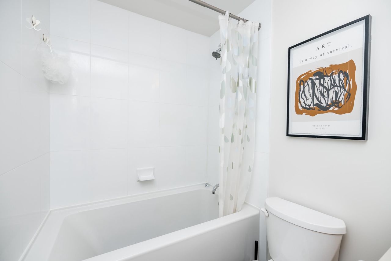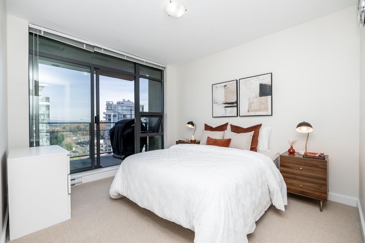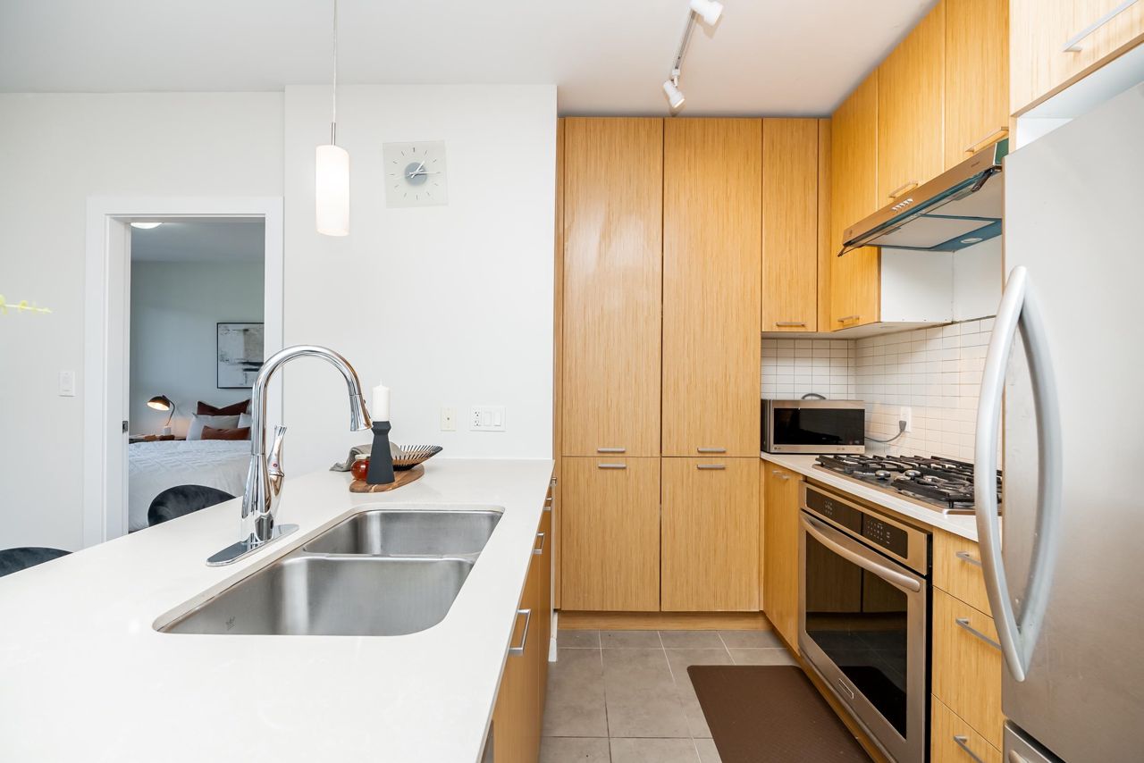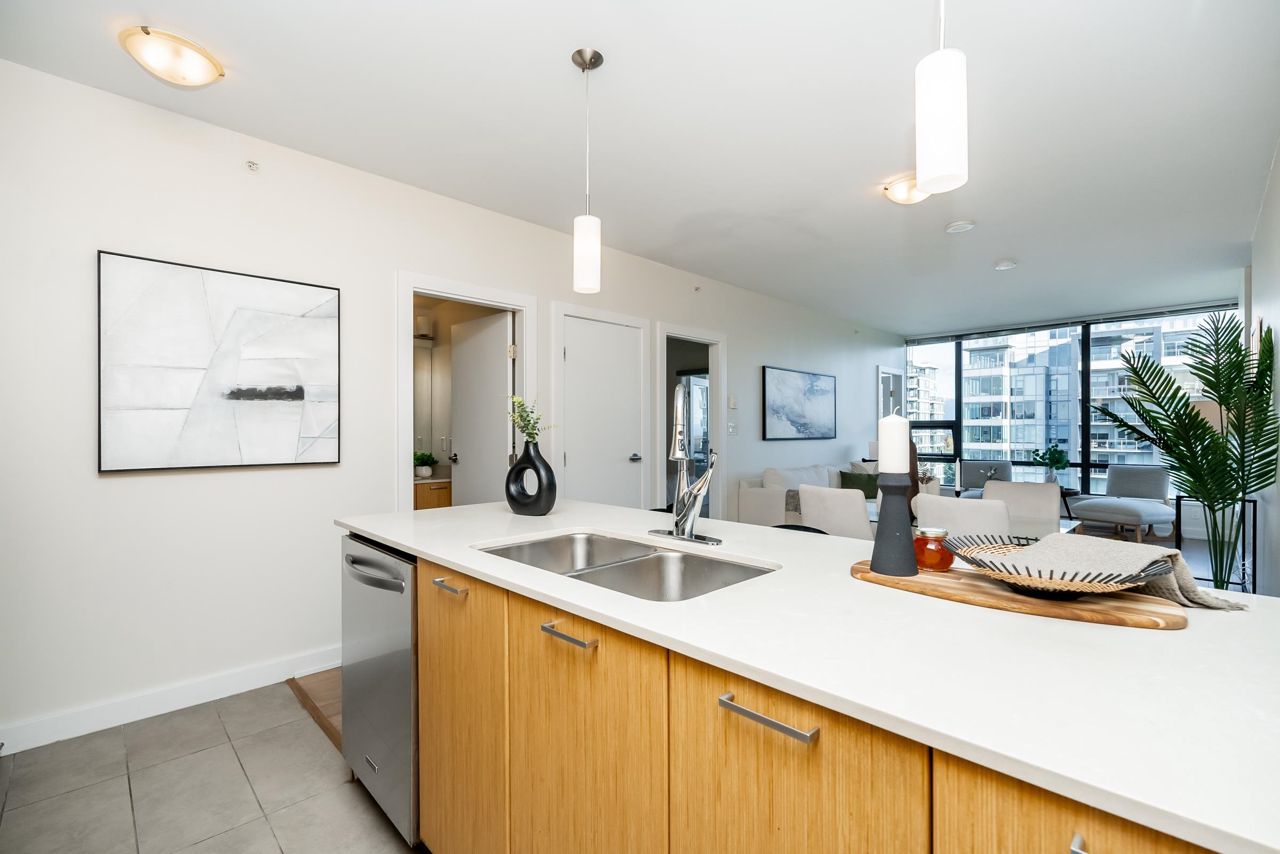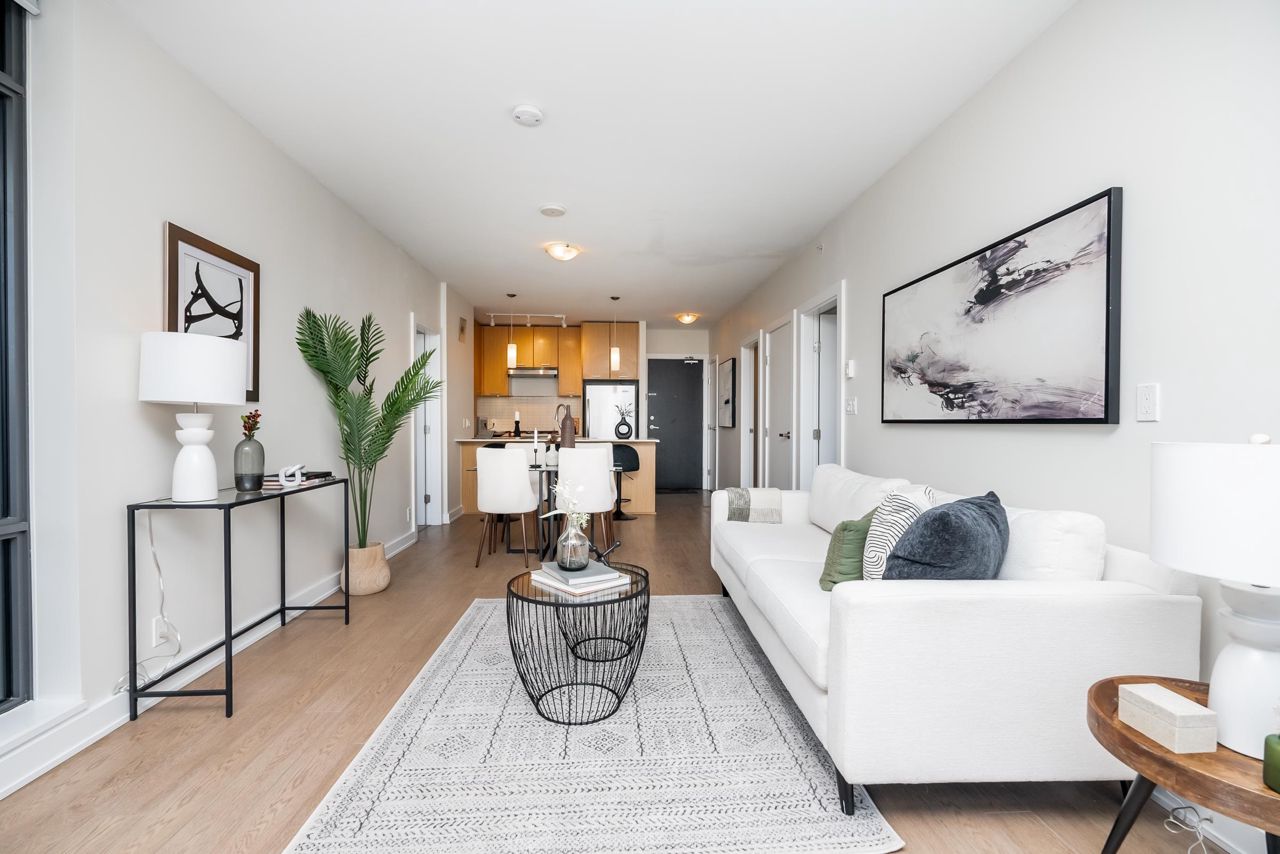 Welcome to the Residences in Suter Brook, Port Moody! This bright and spacious 24th floor 2 BED + OFFICE offers 954 sq ft of sky high living space! Featuring an open plan with an efficient kitchen with quartz countertops, floor to ceiling cabinets, S/S appliances, GAS cooktop and counter seating. Dining leads seamlessly to living, with access to a covered, private balcony. Bedrooms are located on either side of the living room for privacy, primary has access to the patio, a large WIC + 4 piece ensuite. Den is perfect for a home office. Floor to ceiling windows stream in natural light! Experience incredible views of the mountains, city and sunrises. Robust amenities and an unbeatable location with walking distance to Suter Brook Village, Skytrain, WCE, Rocky Point, trails & Brewers Row.
