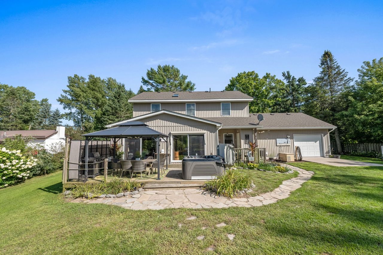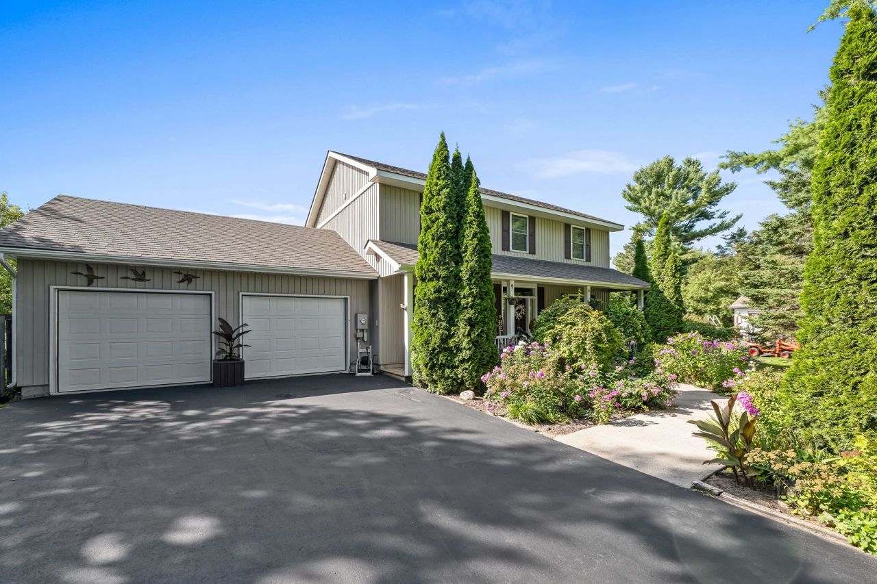 Stunning 2 storey, 4 bedroom, 3 bath home on Wellers Bay in Prince Edward County. This perfect year round home includes an attached 2 car garage with 3rd door drive through and parking for 8 cars. This bright and spacious home boasts in floor radiant heat through and has a 2nd floor laundry room. There are walkouts from kitchen and dining rooms to sunroom with 3 walkouts to beautiful back yard featuring 2 patios, large stone firepit, garden swing and hot tub. Close to PEC's famous Millennium Trail. Take your pontoon boat out for a cruise & enjoy the gorgeous lake views on Wellers Bay or just relax with family & friends in your spectacular backyard oasis.9’ ceilings on ground, 8’ on 2nd, shingles'19, refurbished 18’ pontoon boat w/50 horse power Evinrude, hard top gazebo '23, new 4pc bath '23, On demand hot water sys. H.R.V sys, water softener, UV light & reverse osmosis filters