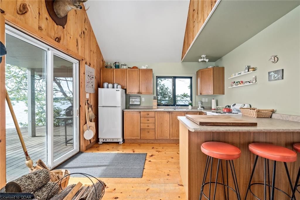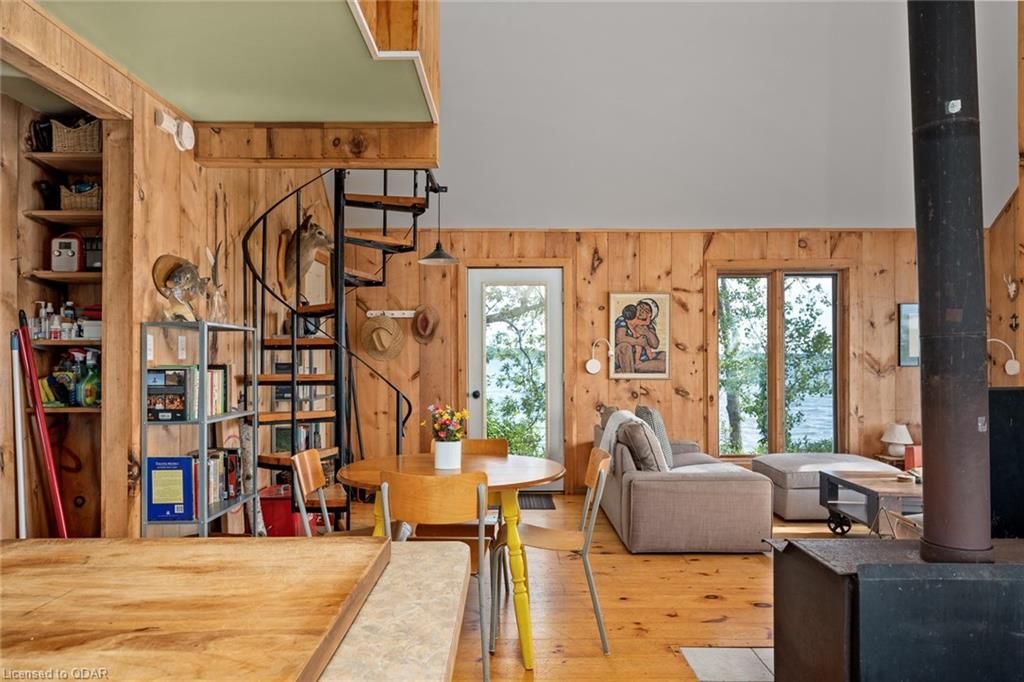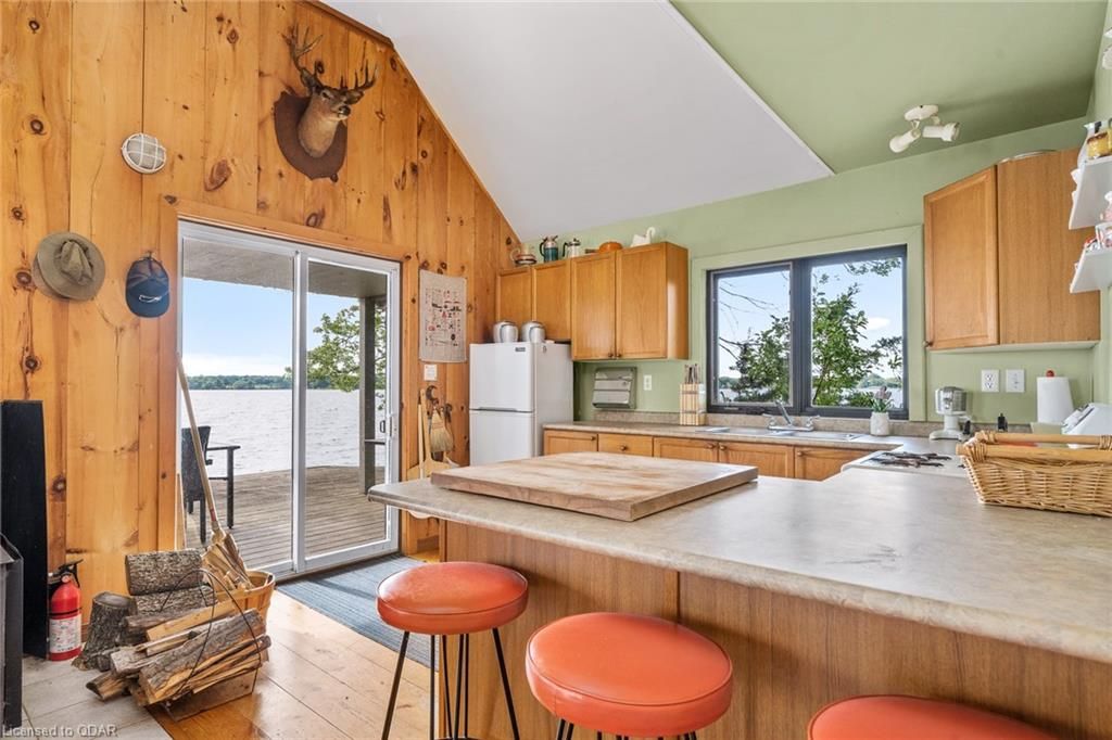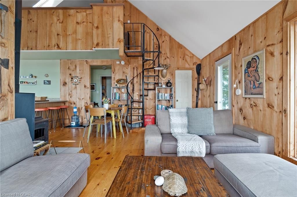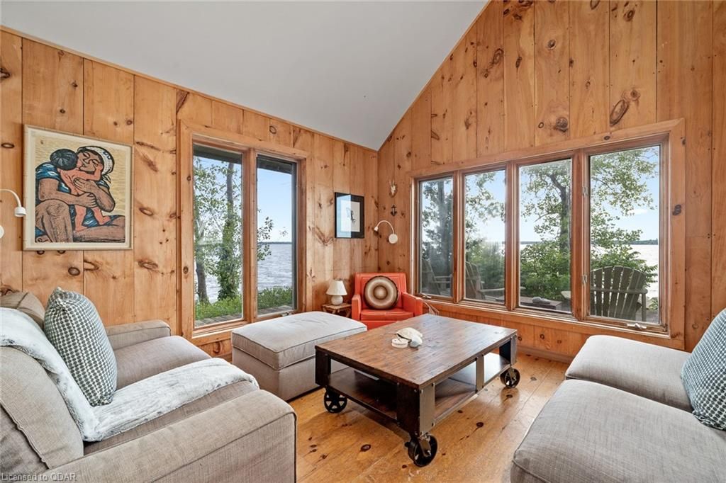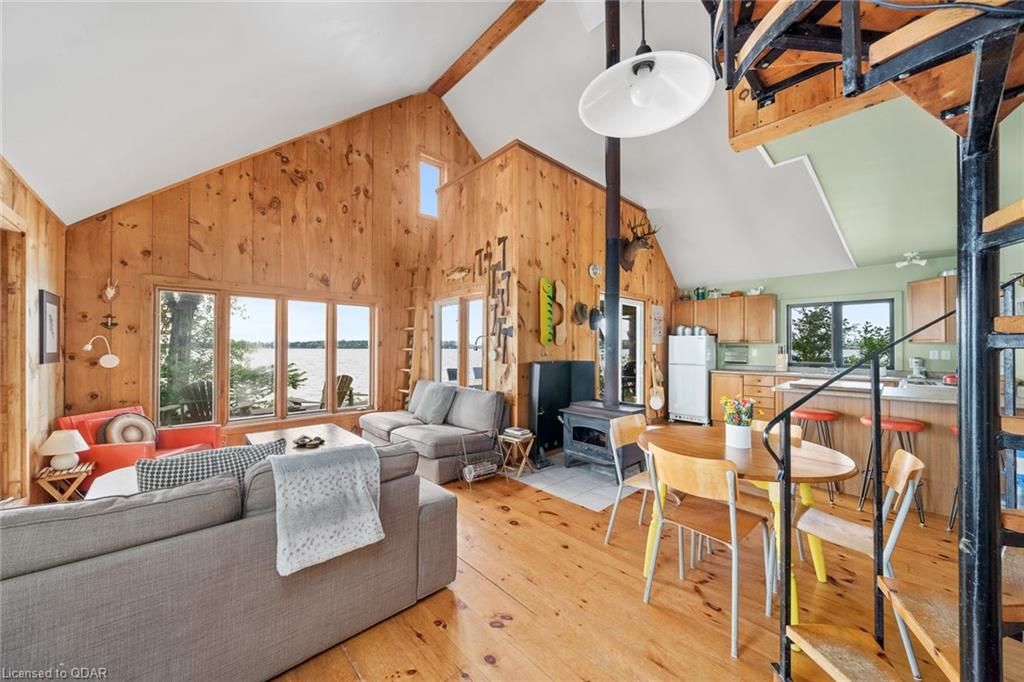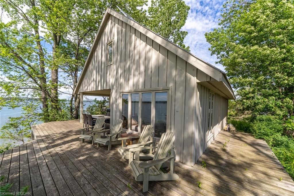 Your once in a lifetime opportunity to own a private island in the centre of Prince Edward County! Welcome Lyons Island, better known by locals and on maps as Jobs Island. Ultimate privacy and being minutes to famous beaches, vineyards, and restaurants meet here! Hop on the boat for a quick ride to your private dock, arrive to over 1000ft of waterfront and a picturesque 3 bed 1 bath cottage with panoramic views of East Lake. The cottage was lovingly hand built, the quality and the care it's seen over the years is evident. Soaring ceilings, beautiful knotty pine on the floors and walls. The main floor has an open concept kitchen, dining, and living space with its focus squarely on the beautiful waterfront view. Off this space you'll find two guest bedrooms and a 3 pc bath with composting toilet. Head up the charming circular staircase to the primary bedroom with a king bed, sitting area, and private deck looking over the rest of your island.