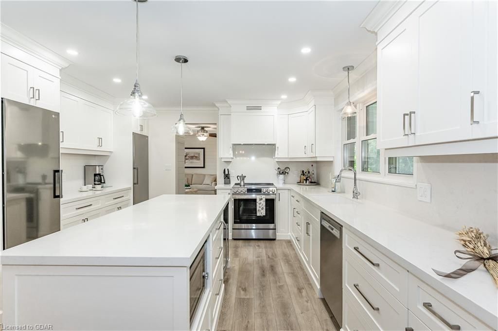 Country living only 5 minutes from the city of Guelph!! Be sure to visit this completely renovated 2667 sq/ft, 4 bedroom, 3 bathroom home situated on 3.75 acres in desirable Puslinch Township. Attention to detail was taken when renovating this picturesque home. Features include a gorgeous new kitchen with a center island and plenty of built in storage, carpet free, newly renovated bathrooms, soaker tub, Primary bedroom with built-ins for storage, Geothermal heating and cooling, steel roof, over-sized double garage with a separate entrance to the basement and the list goes on! Close to shopping, grocery stores, restaurants, YMCA, hiking trails, KW airport and much more.