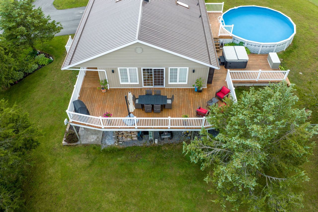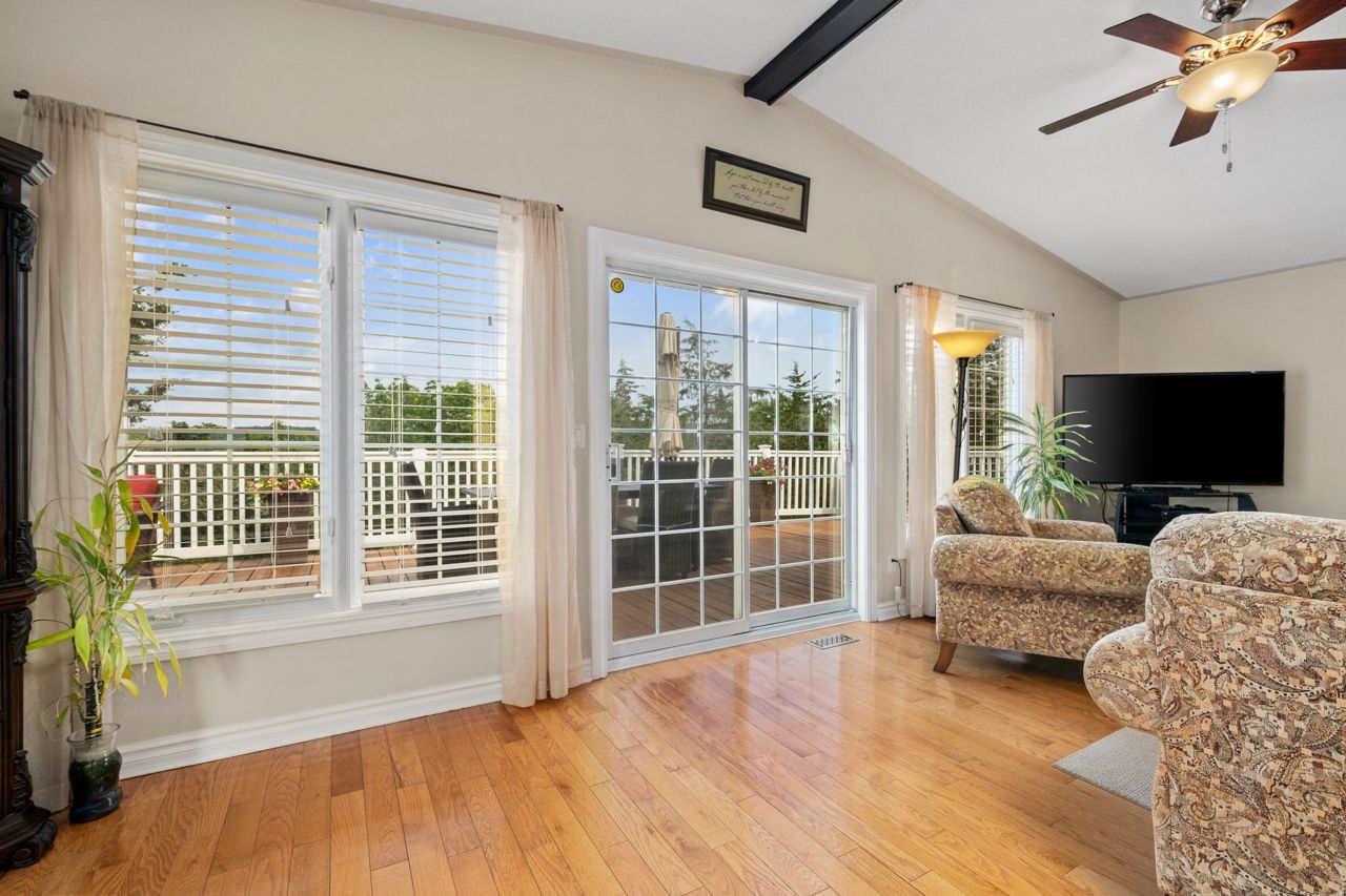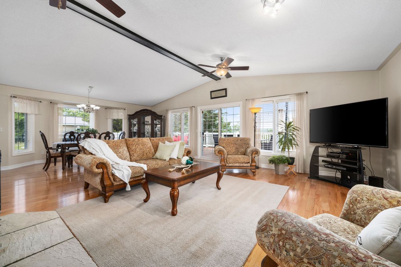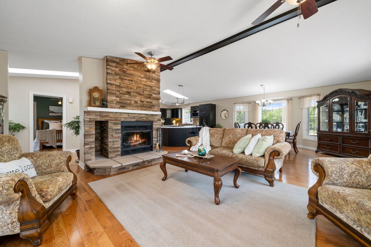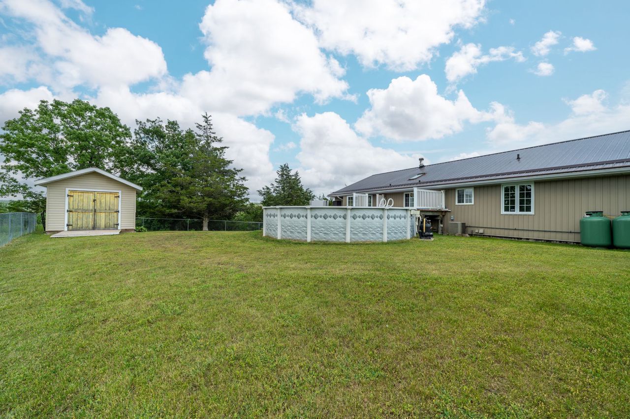 Pristine hilltop bungalow on 2.5 acres with million dollar views -- you can see for miles & miles... the river, the lights at night at the Batawa Ski Hill, 4 seasons of exquisite beauty . Main level has over 2000 sq.ft. of living space. Entertain with ease in the open concept living/dining/kitchen with hardwood & ceramic floors, cathedral ceiling and full size windows all around, stainless kitchen appliances/pantry & island, plus the ambiance of the wood burning fireplace on those chilly fall & winter days! Huge m/bedroom (approx.20ft x 24ft) with additional double walk in closet and 4 pc ensuite. Two more bedrooms on main, 4pc bath with hide away laundry area, propane heat, central air, generous foyer w/skylight, 4ft wide hallways. Lower level has infloor heating, massive rec room/games area with wet bar, 3pc bath, mechanical room and attached 4 bay garage (2wide x 2 deep, drywalled). Exterior updates include vinyl siding, metal roof, paved drive, wrap around deck with vinyl railing.Enjoy the above ground pool and hot tub --plus fenced backyard , storage shed, fire pit and more storage under the deck.