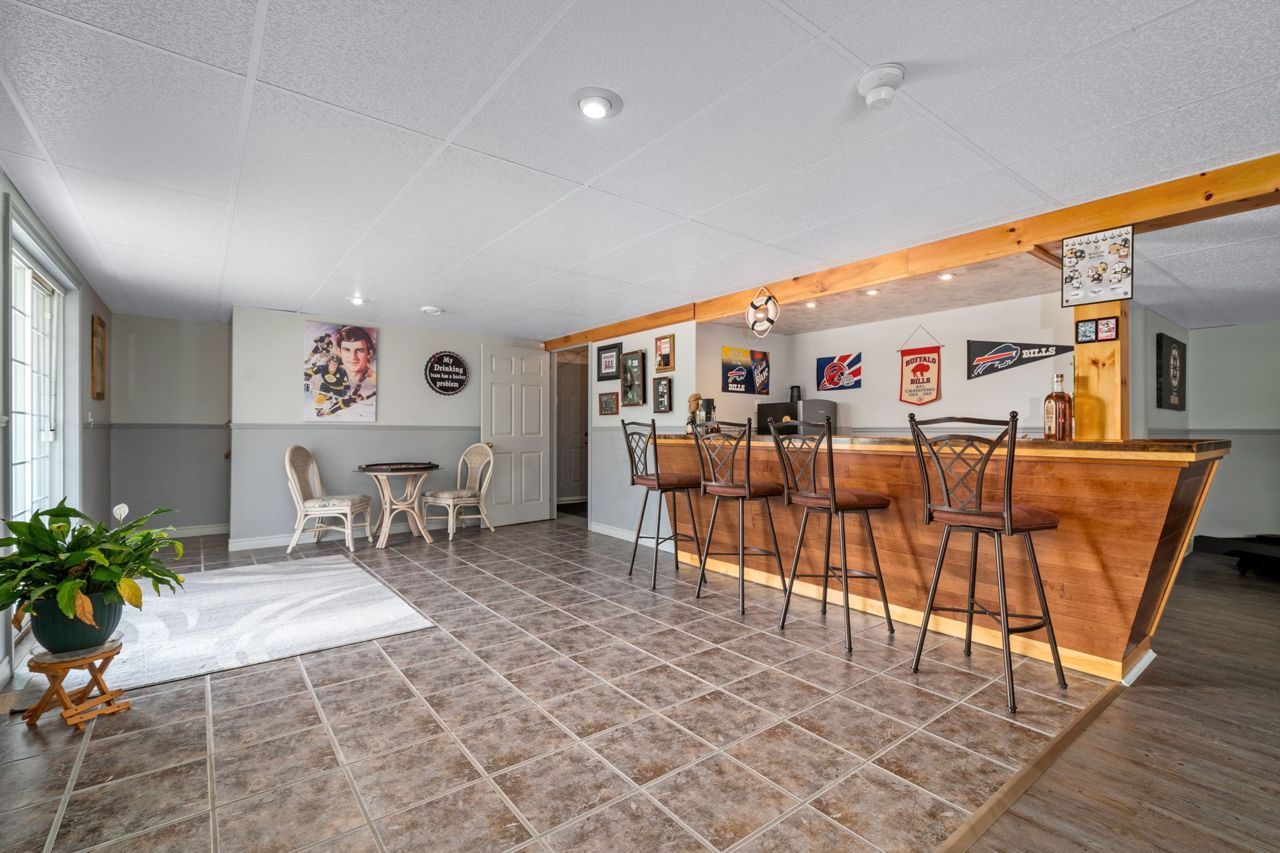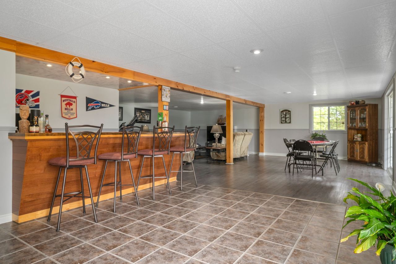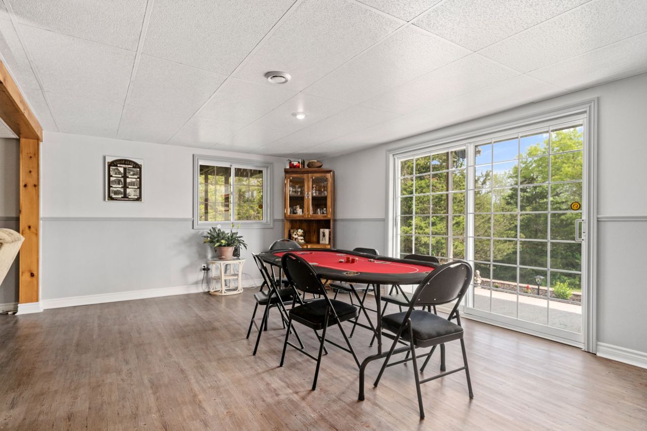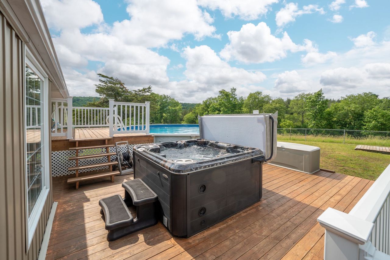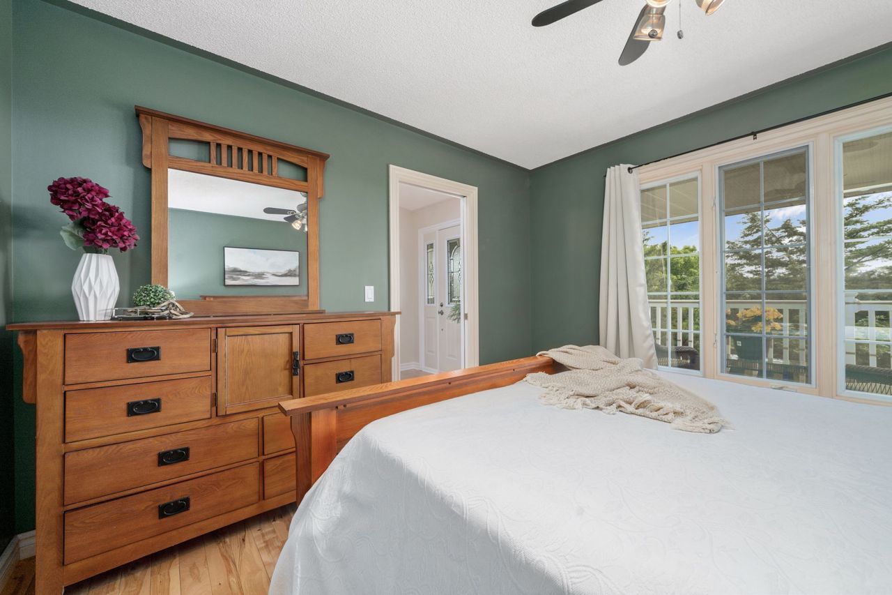 Pristine hilltop bungalow on 2.5 acres with million dollar views -- you can see for miles & miles... the river, the lights at night at the Batawa Ski Hill, 4 seasons of exquisite beauty . Main level has over 2000 sq.ft. of living space. Entertain with ease in the open concept living/dining/kitchen with hardwood & ceramic floors, cathedral ceiling and full size windows all around, stainless kitchen appliances/pantry & island, plus the ambiance of the wood burning fireplace on those chilly fall & winter days! Huge m/bedroom (approx.20ft x 24ft) with additional double walk in closet and 4 pc ensuite. Two more bedrooms on main, 4pc bath with hide away laundry area, propane heat, central air, generous foyer w/skylight, 4ft wide hallways. Lower level has infloor heating, massive rec room/games area with wet bar, 3pc bath, mechanical room and attached 4 bay garage (2wide x 2 deep, drywalled). Exterior updates include vinyl siding, metal roof, paved drive, wrap around deck with vinyl railing.Enjoy the above ground pool and hot tub --plus fenced backyard , storage shed, fire pit and more storage under the deck.