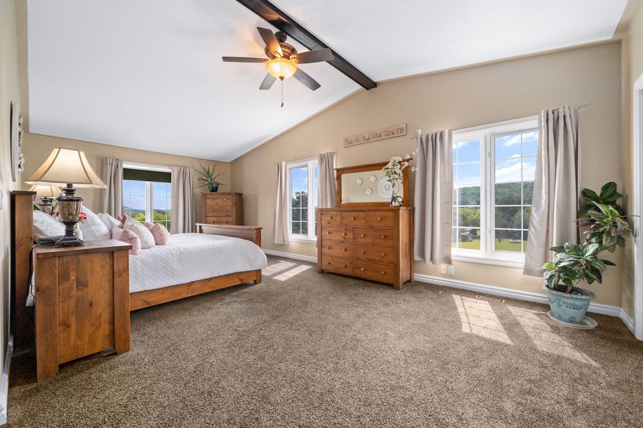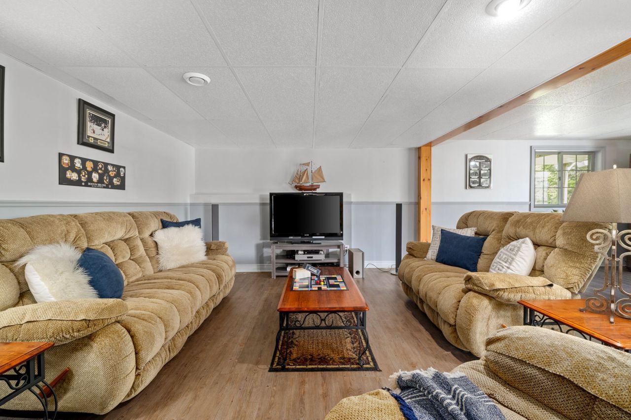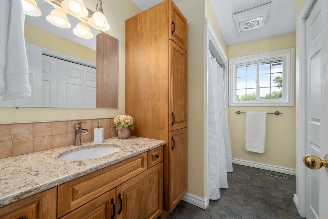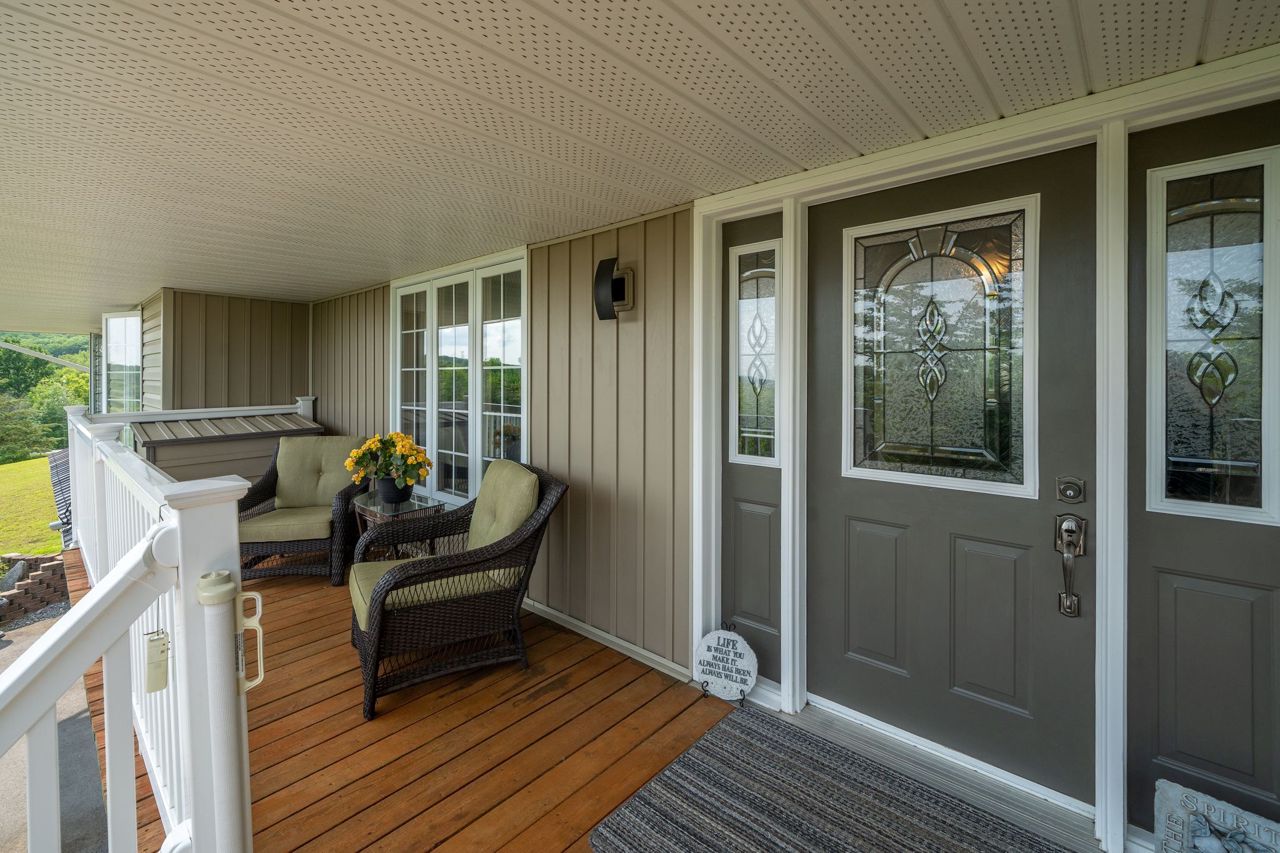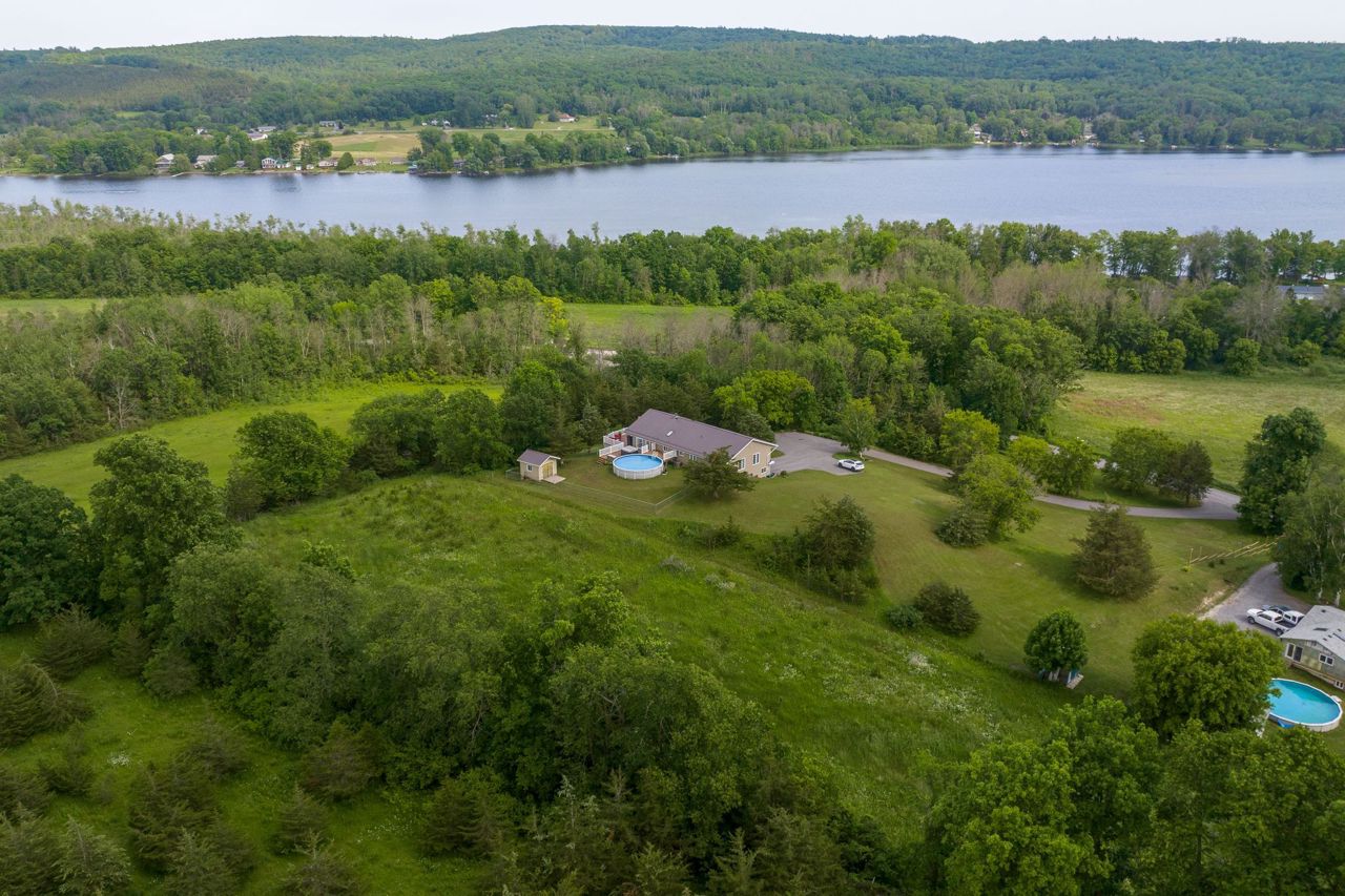 Pristine hilltop bungalow on 2.5 acres with million dollar views -- you can see for miles & miles... the river, the lights at night at the Batawa Ski Hill, 4 seasons of exquisite beauty . Main level has over 2000 sq.ft. of living space. Entertain with ease in the open concept living/dining/kitchen with hardwood & ceramic floors, cathedral ceiling and full size windows all around, stainless kitchen appliances/pantry & island, plus the ambiance of the wood burning fireplace on those chilly fall & winter days! Huge m/bedroom (approx.20ft x 24ft) with additional double walk in closet and 4 pc ensuite. Two more bedrooms on main, 4pc bath with hide away laundry area, propane heat, central air, generous foyer w/skylight, 4ft wide hallways. Lower level has infloor heating, massive rec room/games area with wet bar, 3pc bath, mechanical room and attached 4 bay garage (2wide x 2 deep, drywalled). Exterior updates include vinyl siding, metal roof, paved drive, wrap around deck with vinyl railing.Enjoy the above ground pool and hot tub --plus fenced backyard , storage shed, fire pit and more storage under the deck.
