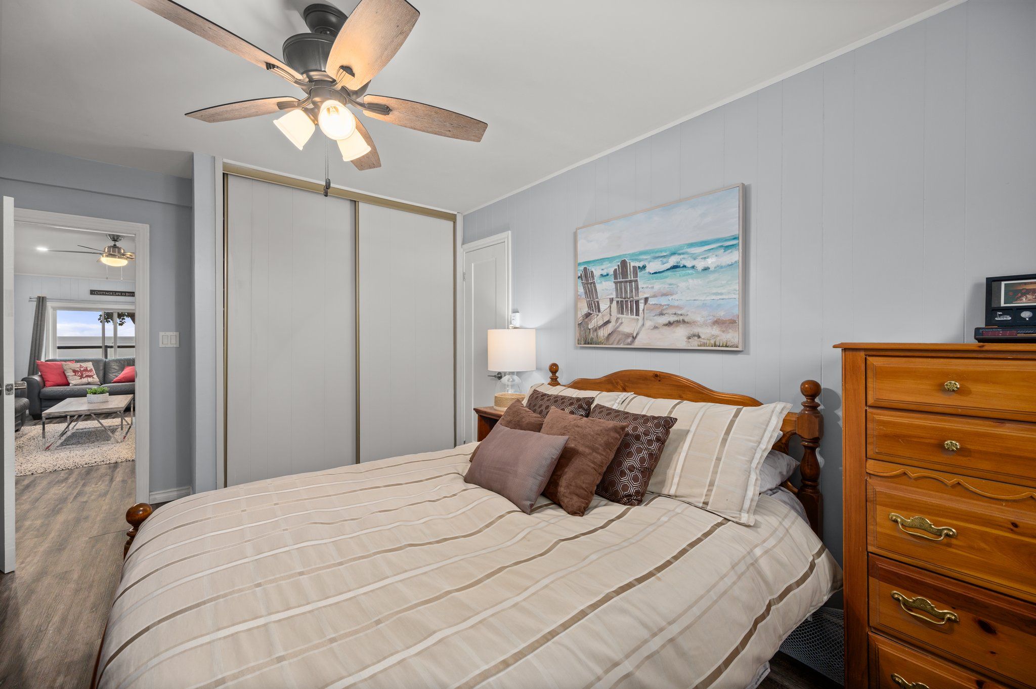 The centerpiece of this cottage is the cozy fireplace, situated at the heart of the cottage. Gather around its flickering flames on chilly evenings, creating a sense of warmth and togetherness. With three bedrooms, there is ample space for everyone to rest and rejuvenate.