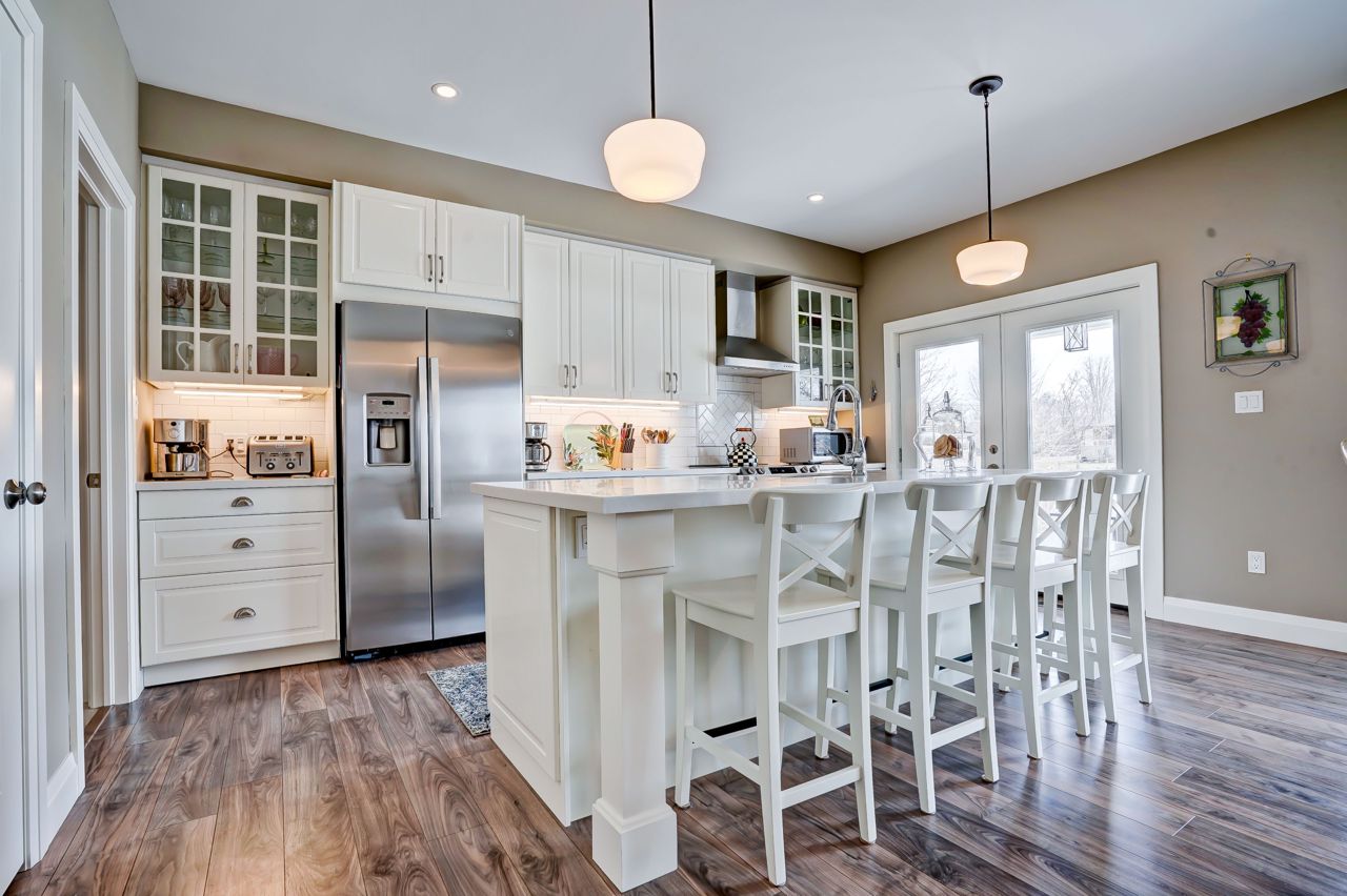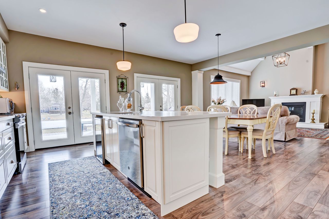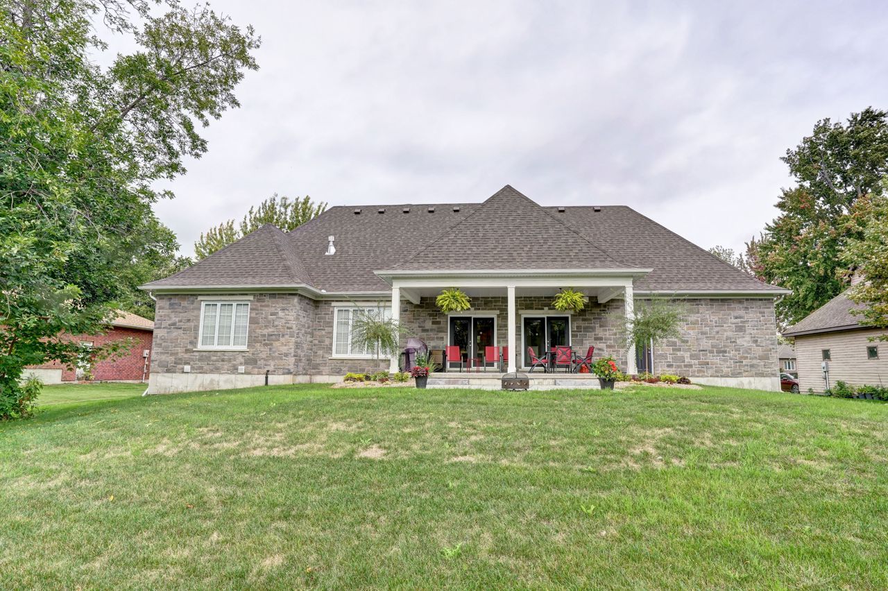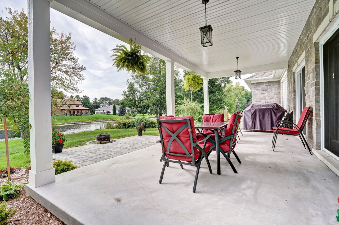 Spectacular Custom-built 3 bedroom bungalow on a beautiful lot backing onto a pond in Bayshore Village. This extensively upgraded home features 9' ceilings, a bright open eat-in kitchen with a huge center island, Corian countertops, & walk-out to a covered porch overlooking the beautiful pond. Great room has a high ceiling & a large gas fireplace. Private master comes equipped with a gorgeous 4 piece ensuite with a glass shower, soaker tub, & tile flooring. Main floor also has 2 additional bedrooms, 3 pc baths, & a large laundry room with entry to the attached dbl garage. Basement is partially finished with a Rec room & Games room or office, 4 pc bath & lots of room to grow. Two Electrical panels & propane piping for future Generator. Home is tastefully decorated and well-built! The Seller is a member in good standing with Bayshore Village Association, The Bayshore Village's fee for 2023 is $975 which includes access to golf, tennis courts, swimming pool, clubhouse, and more!!!