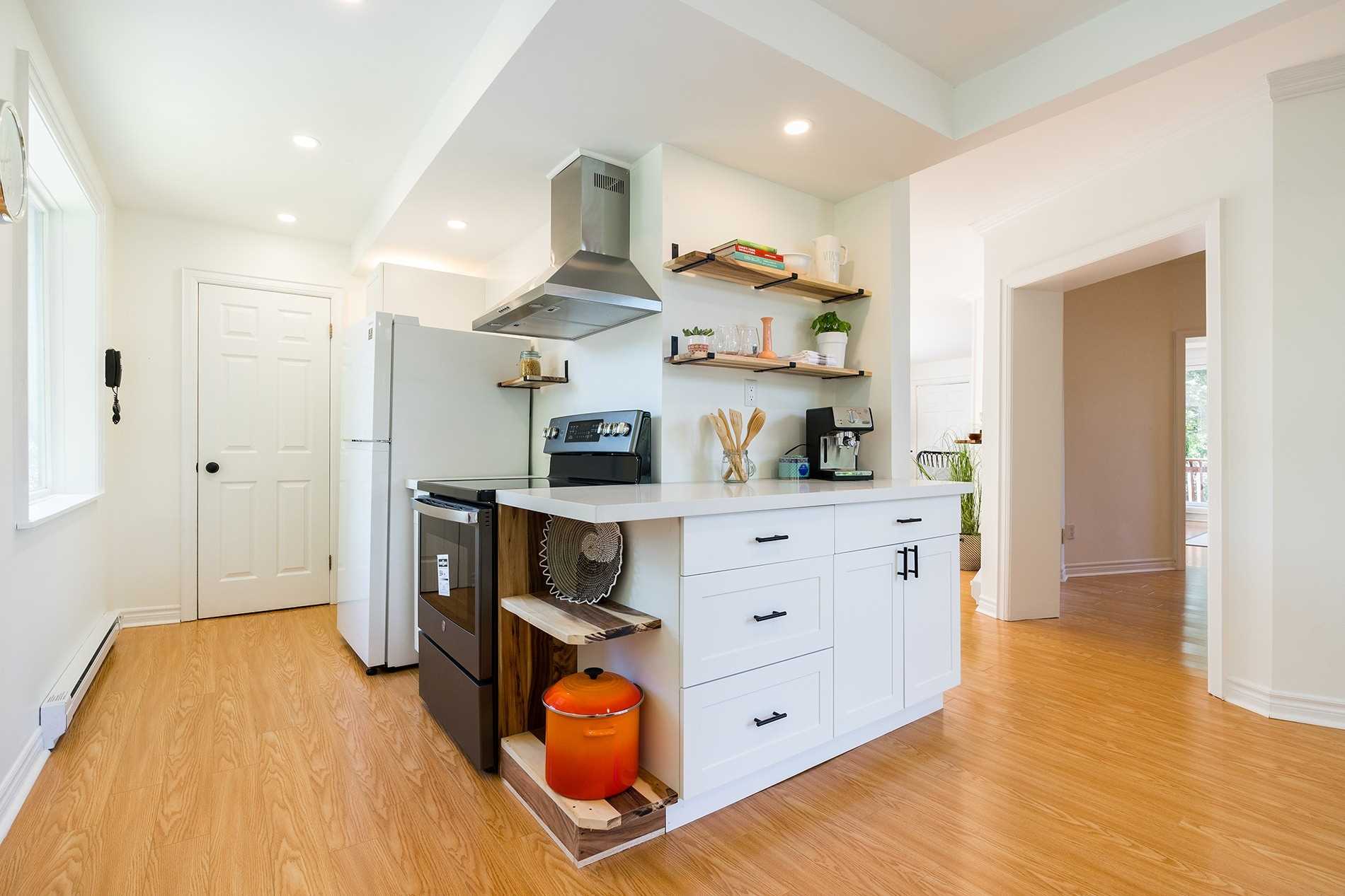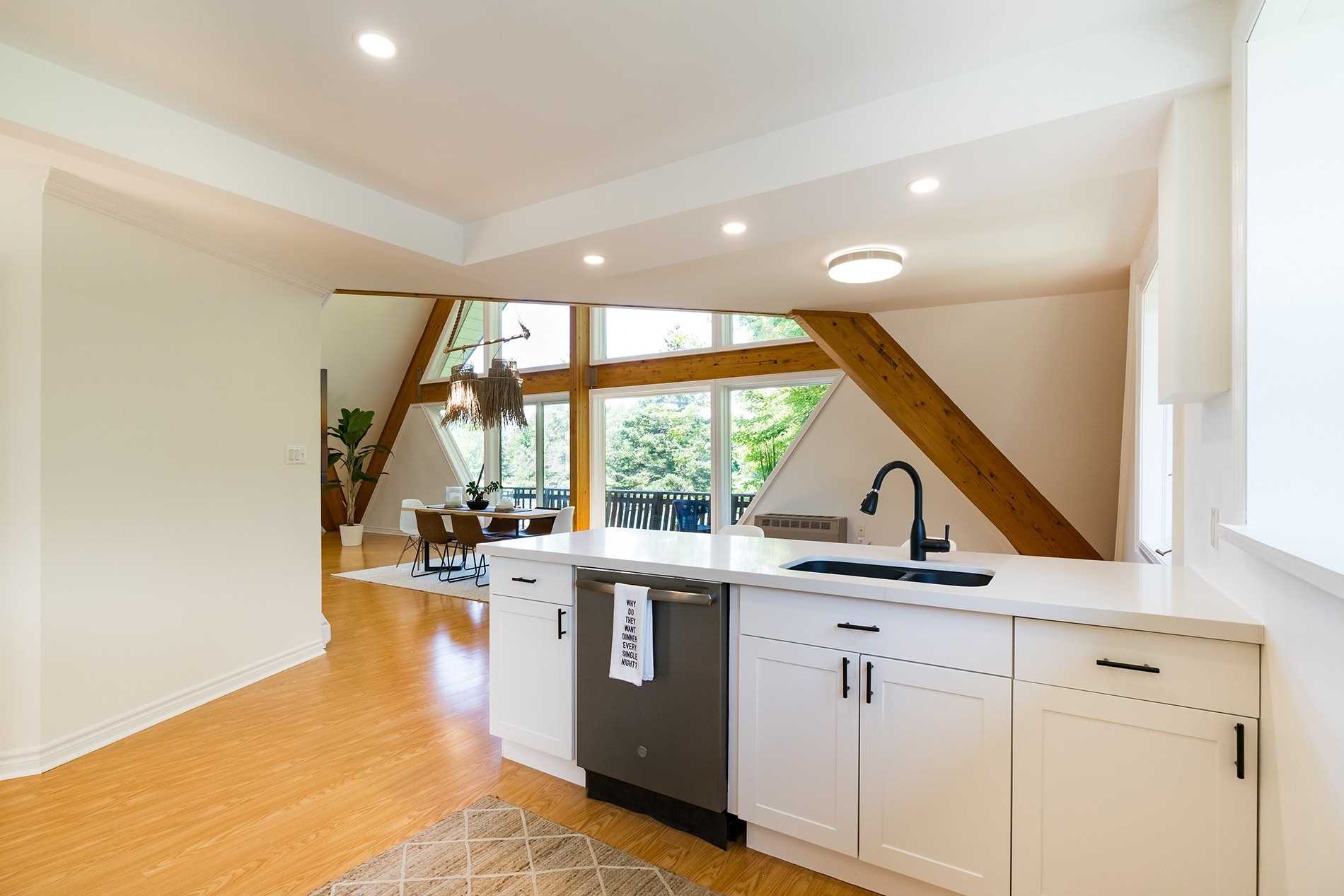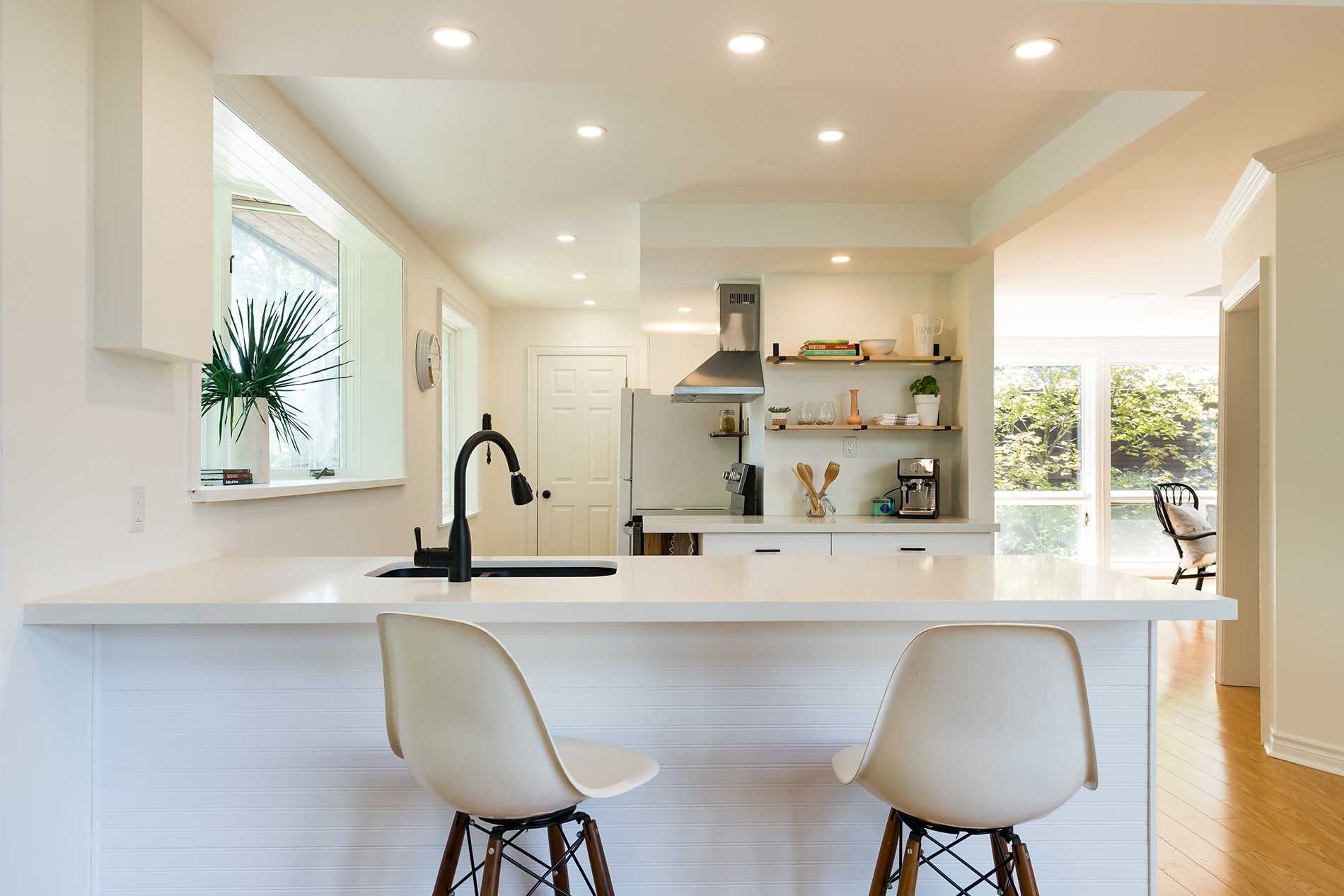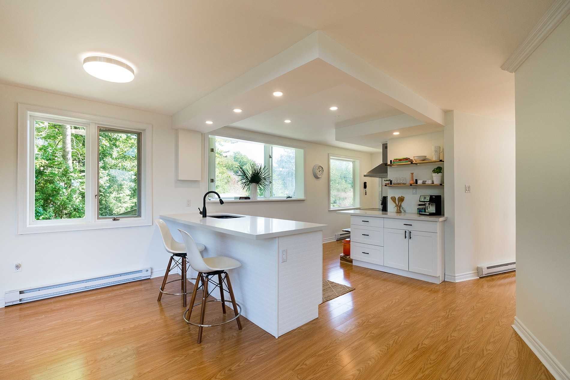Large Window Pot Lights Breakfast Bar
