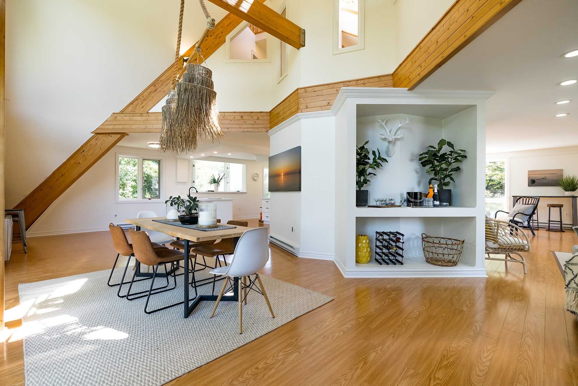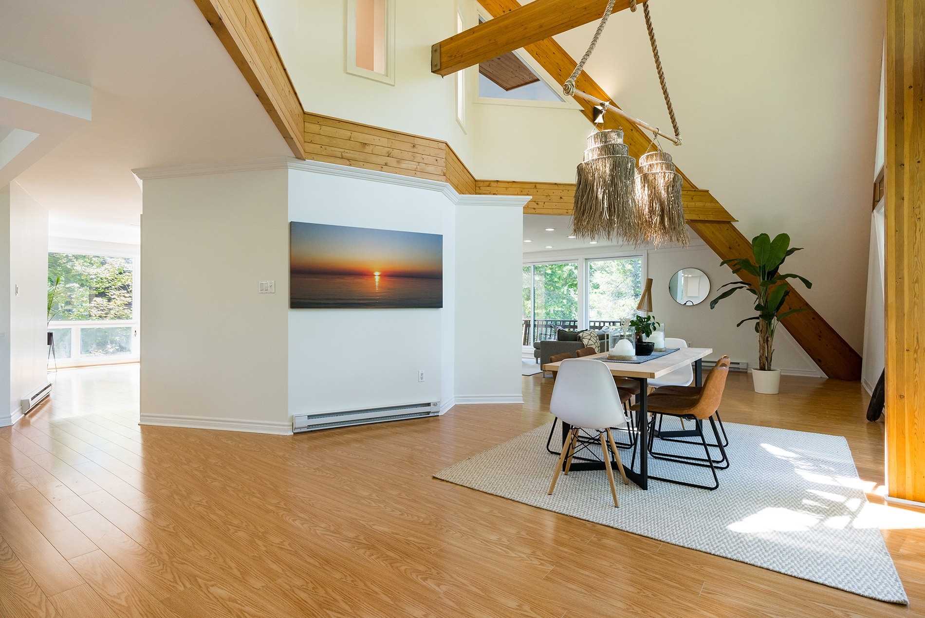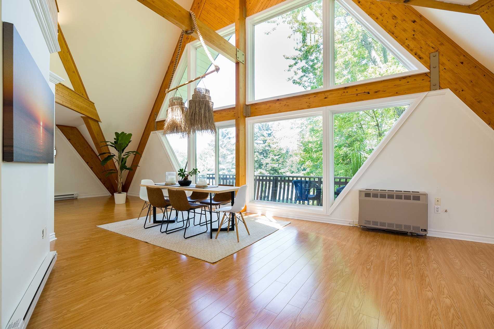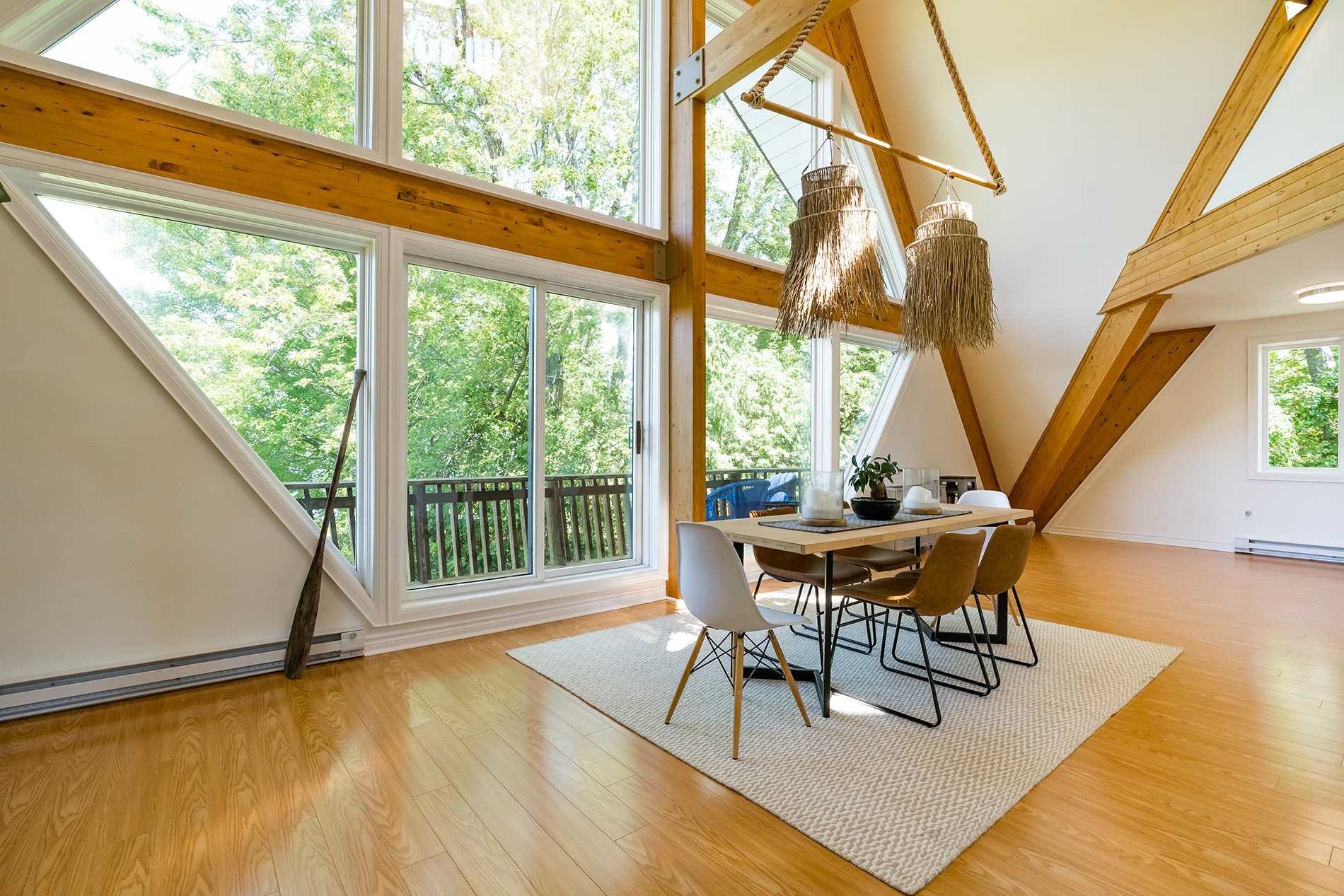 Hardwood Floor Large Window Beamed