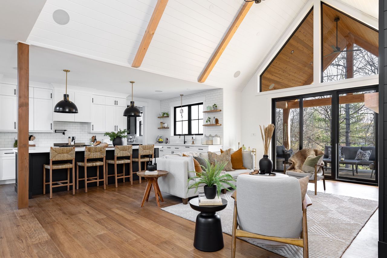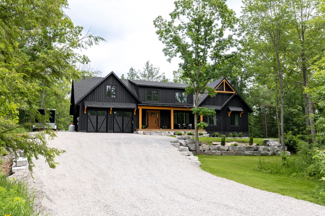 Gorgeous Bungaloft featuring the finest of finishes & quality throughout! Expertly selected & curated by a professional designer, this magazine worthy masterpiece is sure to impress! Nestled in an incredible neighbourhood & set atop a private estate lot you are only a few steps to riverfront access, 2 min to small town amenities, & if you crave the urban vibrance, Orillia is just 15 min south! Be sure to watch virtual showing! Step inside this remarkable home & you are instantly wowed! The open concept layout is simply gorgeous, w/ wide plank hickory flooring and 18' ceilings in the entryway - it is a grand & welcoming atmosphere as you step in off the lovely covered front porch. The flawless great room features 16' vaulted ceilings, a statement gas fireplace w/ shiplap detail & fir beam mantle! All of this opens out out to the incredible back deck where your dining & entertaining are next level. Be forewarned, your guests may never want to leave!Prepare to be wowed by the stunning custom kitchen, featuring every possible detail you'd want from the shaker style cabinetry, high end appliances & finishing choices to the quartz countertops & best of all the impressive Butler's Pantry.
