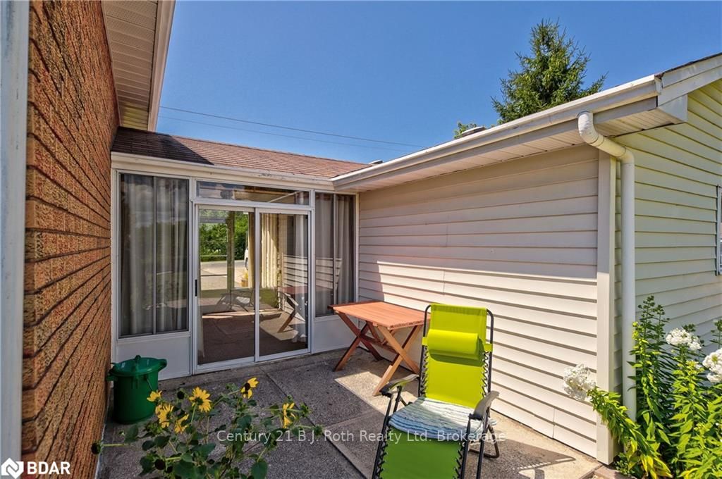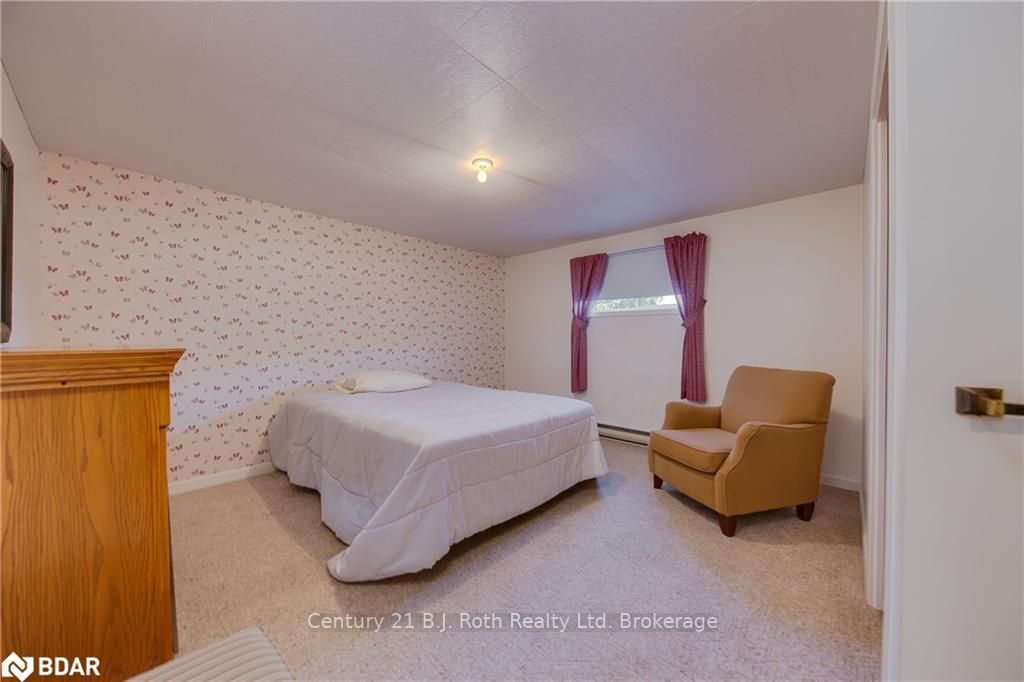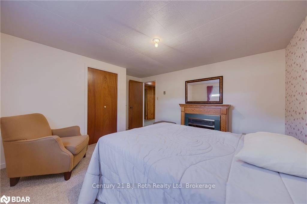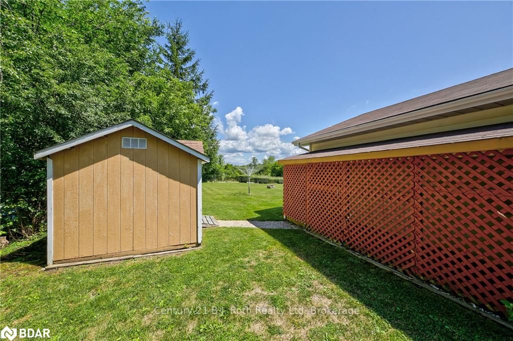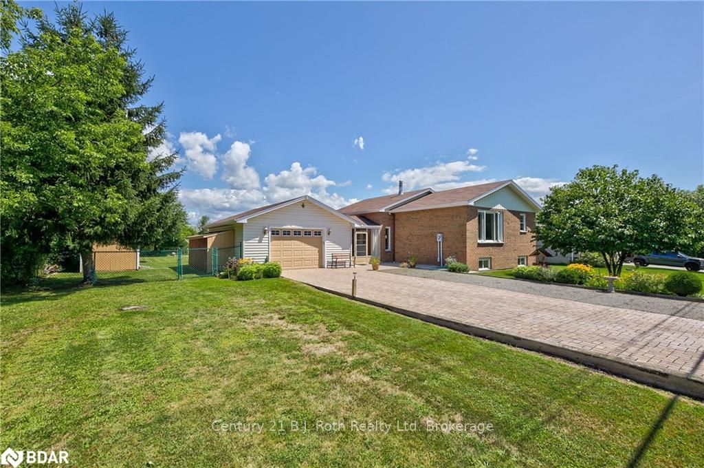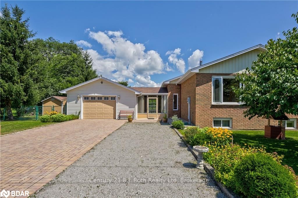 Custom built brick and aluminum raised bungalow on a large country lot close to Lake Simcoe. Only minutes east of Orillia on a year round paved road. A bright living room with oak floors has fir beamed accents in the ceiling. Eat-in kitchen features oak cupboards and sliding patio doors to an 8'x10' deck. Cedar ceiling in main hall with airtight woodstove. Garage 20'x20' is attached to house by a breezeway with 3 season sunroom and a walkout to interlocking brick patio. Fully finished basement offers a large 3rd bedroom, 3 piece bathroom, family room and workshop room. Beautiful landscaping with fenced backyard, storage shed included.