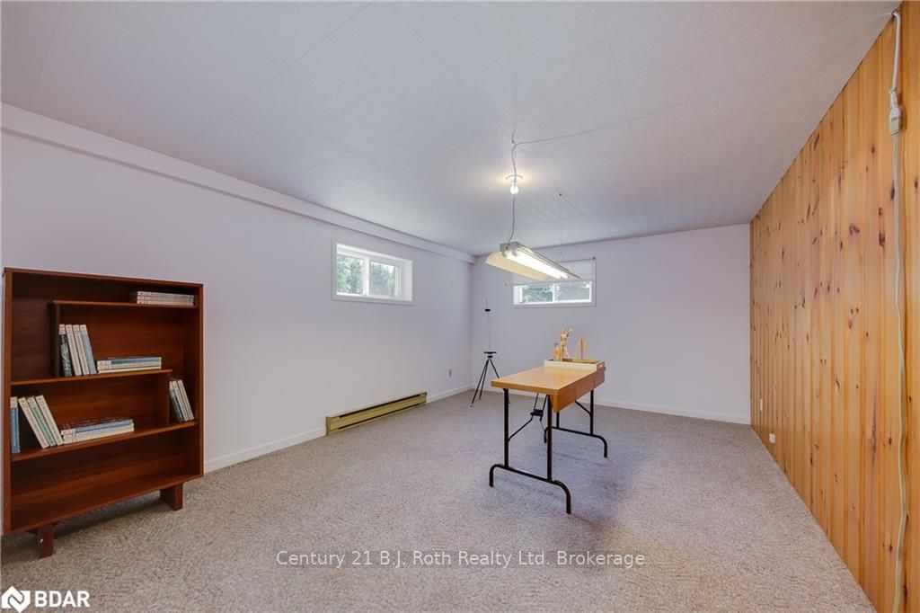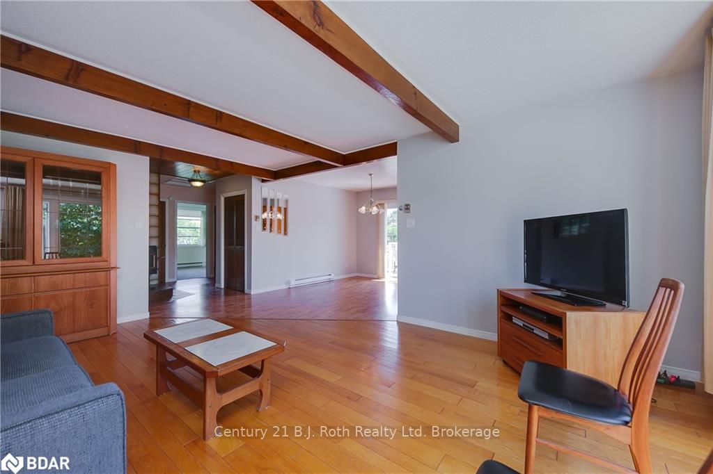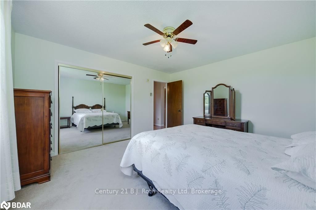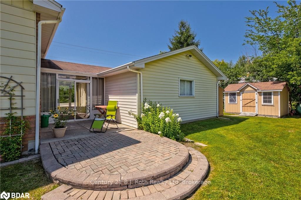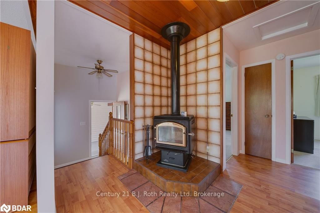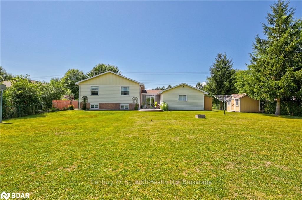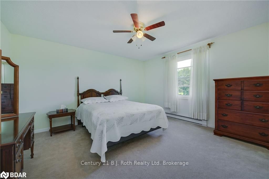 Custom built brick and aluminum raised bungalow on a large country lot close to Lake Simcoe. Only minutes east of Orillia on a year round paved road. A bright living room with oak floors has fir beamed accents in the ceiling. Eat-in kitchen features oak cupboards and sliding patio doors to an 8'x10' deck. Cedar ceiling in main hall with airtight woodstove. Garage 20'x20' is attached to house by a breezeway with 3 season sunroom and a walkout to interlocking brick patio. Fully finished basement offers a large 3rd bedroom, 3 piece bathroom, family room and workshop room. Beautiful landscaping with fenced backyard, storage shed included.
