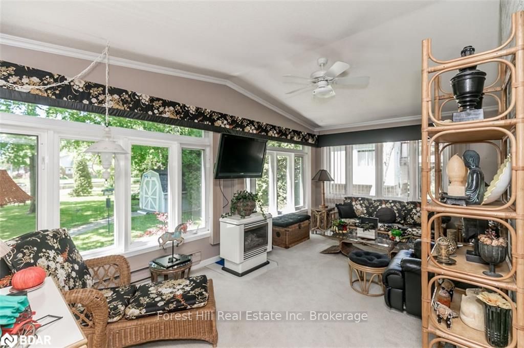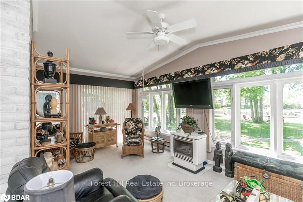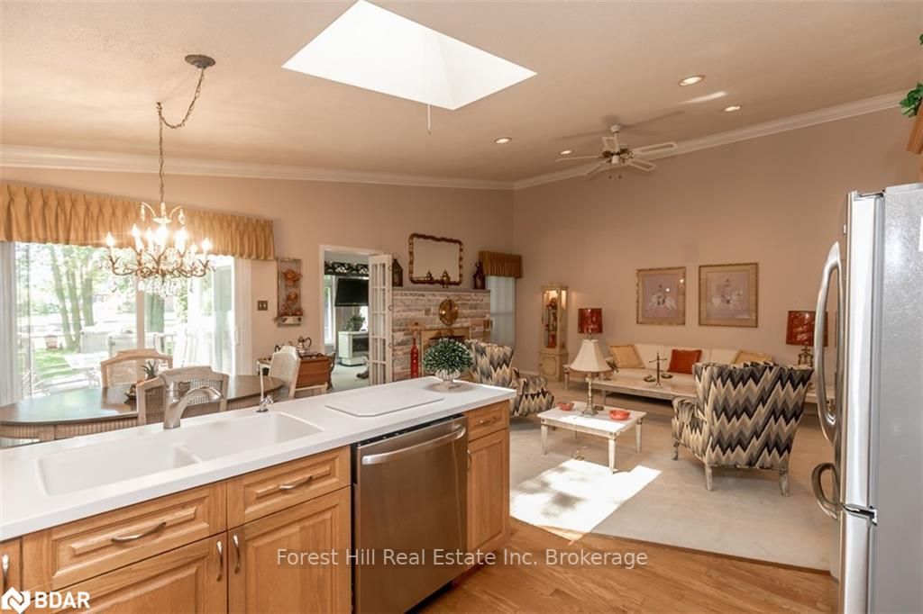 STUNNING OPEN PLAN BRICK BUNGALOW IN PRIME POSITION OF LAGOON CITY. UP-GRADED THROUGH & THROUGH. READY TO MOVE IN AND ENJOY. 1800 SQ FT OF LIVING FEATURING 3 BEDROOMS & 2 BATHROOMS, ATTACHED DOUBLE GARAGE (1/2 OF GARAGE PRESENTLY USED AS EXTRA STORE ROOM). OPEN CONCEPT KITCHEN AND LIVING AREA. VAULTED CEILINGS AND SKYLIGHT. LARGE BRICK PROPANE FIREPLACE IN THE LIVING ROOM AND PROPANE STOVE IN THE FAMILY ROOM WITH WALK-OUT TO BACK DECK. BEAUTIFULLY LANDSCAPED PRIVATE BACK YARD WITH LARGE COMPOSITE DECK, PROPANE BBQ HOOK-UP, GARDEN LIGHTING AND IRRIGATION SYSTEM. PRIVATE BOAT MOORING ON "BEAVER LAGOON" WITH BIG BOAT ACCESS TO LAKE SIMCOE. HOME HAS NEW WINDOWS, "CLARKE BASEMENT SYSTEM", NEW GARAGE DOOR, GUTTER PROTECTORS AND BACKYARD SHED TO MATCH THE HOUSE. ENJOY YOUR EVENING BEVERAGE WHILE LOOKING AT THE BEAUTIFUL SUNSETS. LOCATED IN QUIET NEIGHBORHOOD. MAKE THIS IMMACULATELY MAINTAINED BUNGALOW YOUR NEW YEAR-ROUND FAMILY HOME OR COTTAGE.