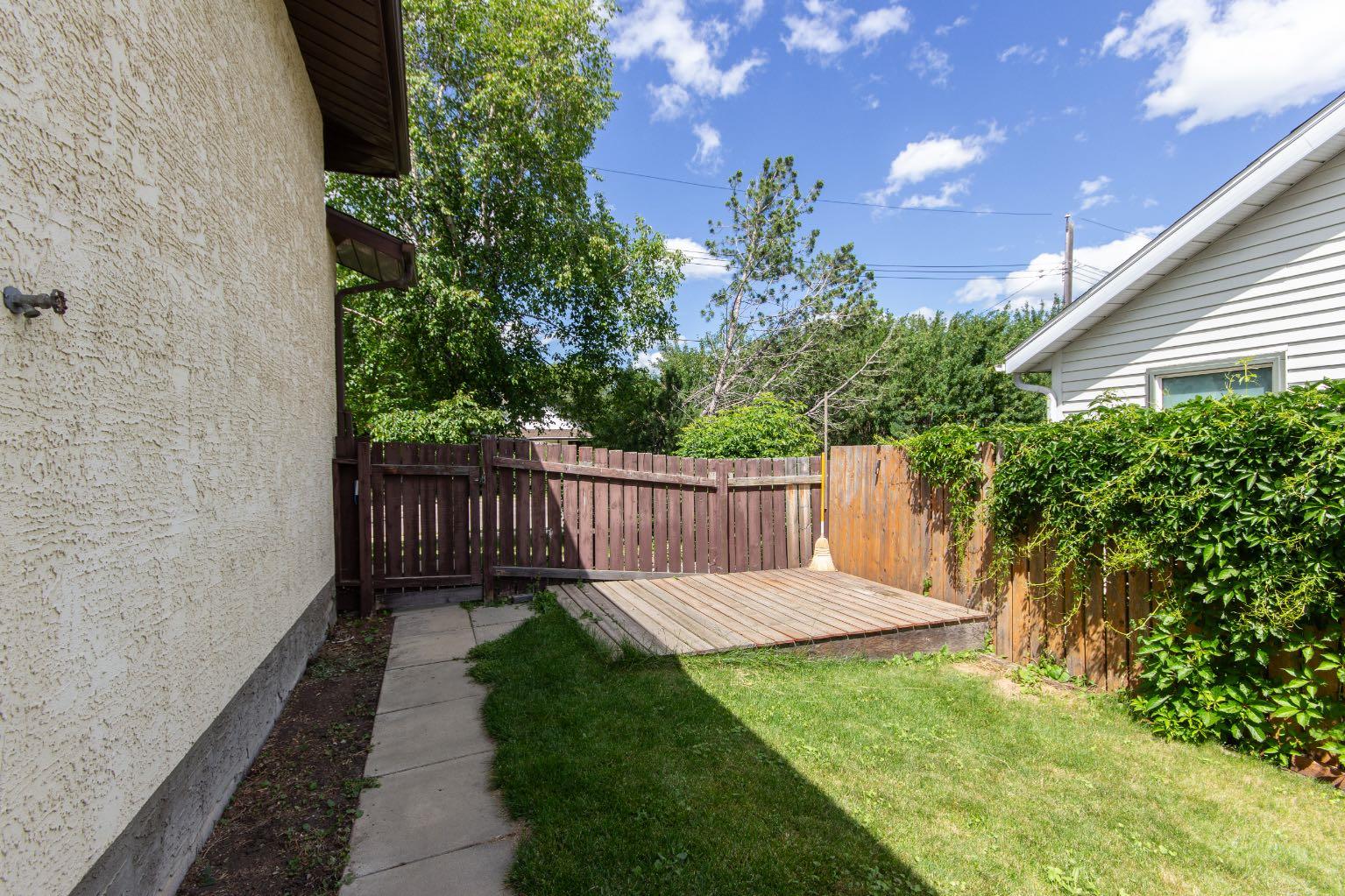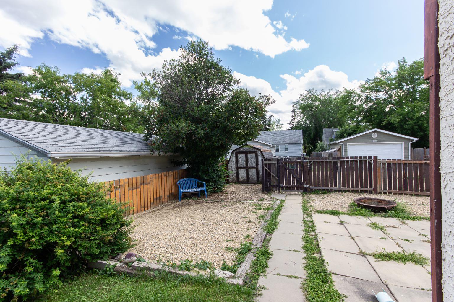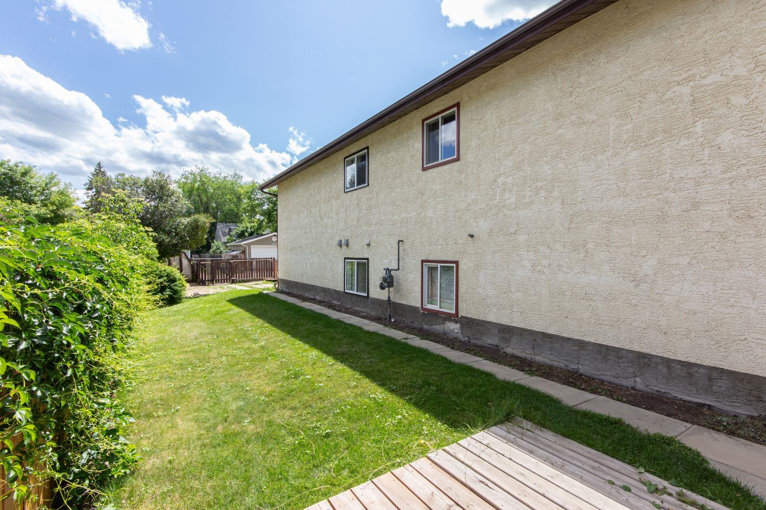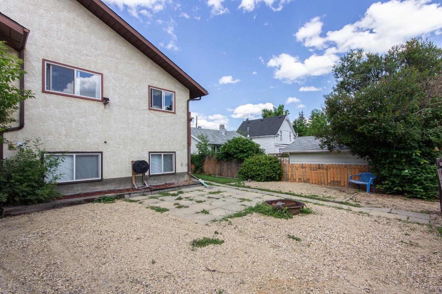 Calling investors and first time home buyers! This nicely updated 5 bedroom, 2 bathroom half duplex offers a number of recent upgrades including new shingles (2024), high efficient furnace (2023), hot water tank (2022), and a number of updated vinyl windows. The bright, open-concept living and dining area is filled with natural light from a large front-facing window, and the U-shaped kitchen offers plenty of oak cabinetry and functionality. The main floor hosts three comfortably sized bedrooms, including a spacious primary, along with the main 4-piece bathroom. You'll also appreciate the main floor laundry and a spacious storage room for added convenience. The fully finished basement with in-floor heat offers even more living space, including a large family room, two additional bedrooms, another 4 piece bathroom, and a flex space with a sink and cabinetry that could work for a home hair salon, hobby room, bar, or even kitchenette. Outside, the fully fenced backyard offers ample space for gatherings, complete with a paver patio, storage shed, and large gravel parking pad. Situated just steps from walking trails, parks, schools, playgrounds, restaurants, and shopping, this property is full of potential and ready for immediate possession!