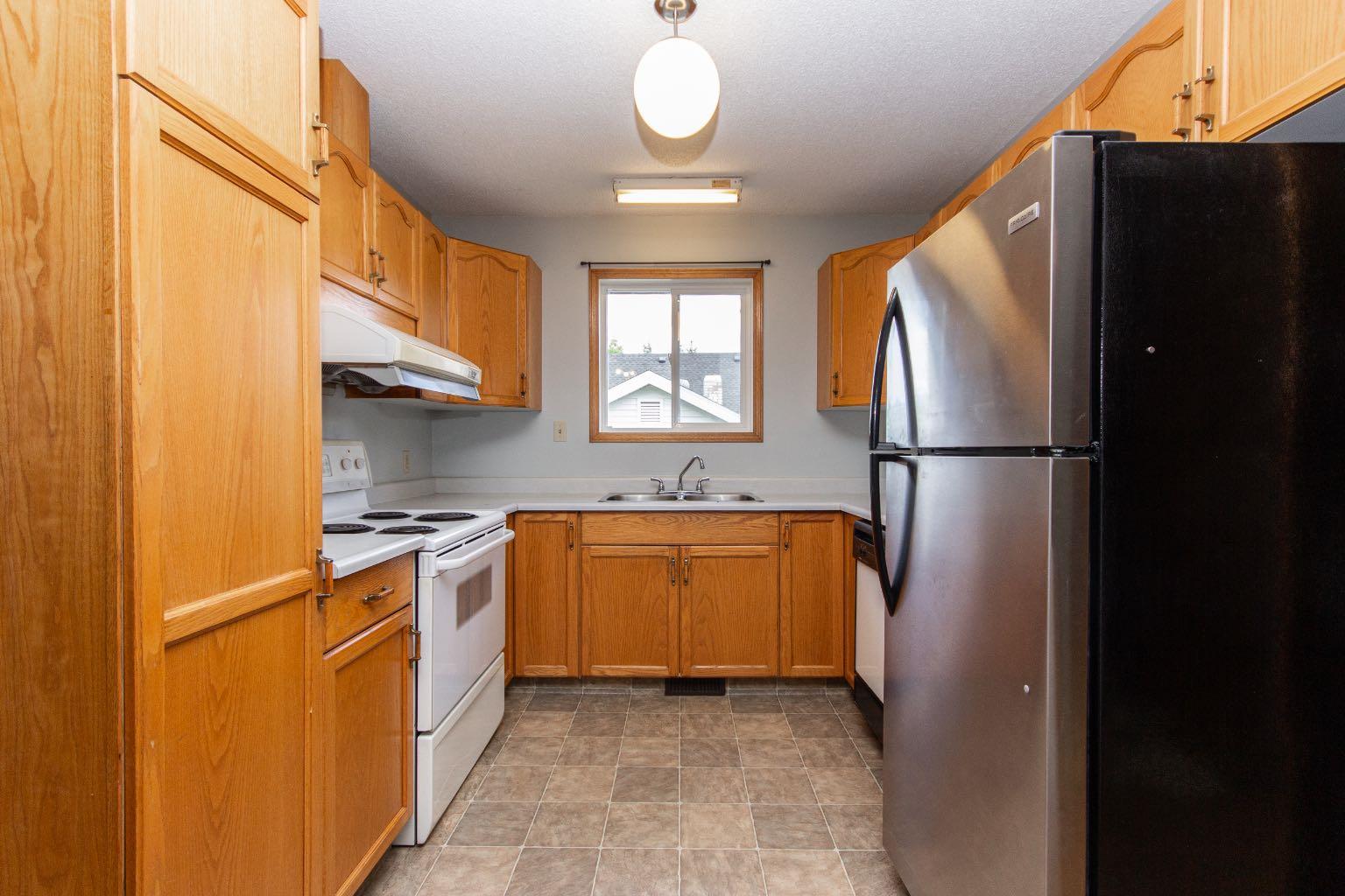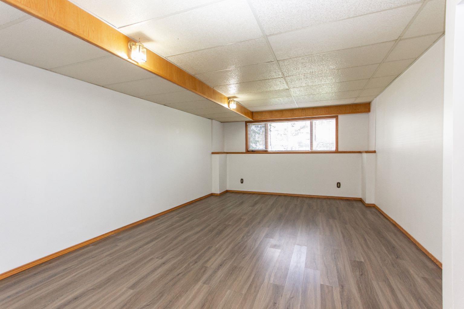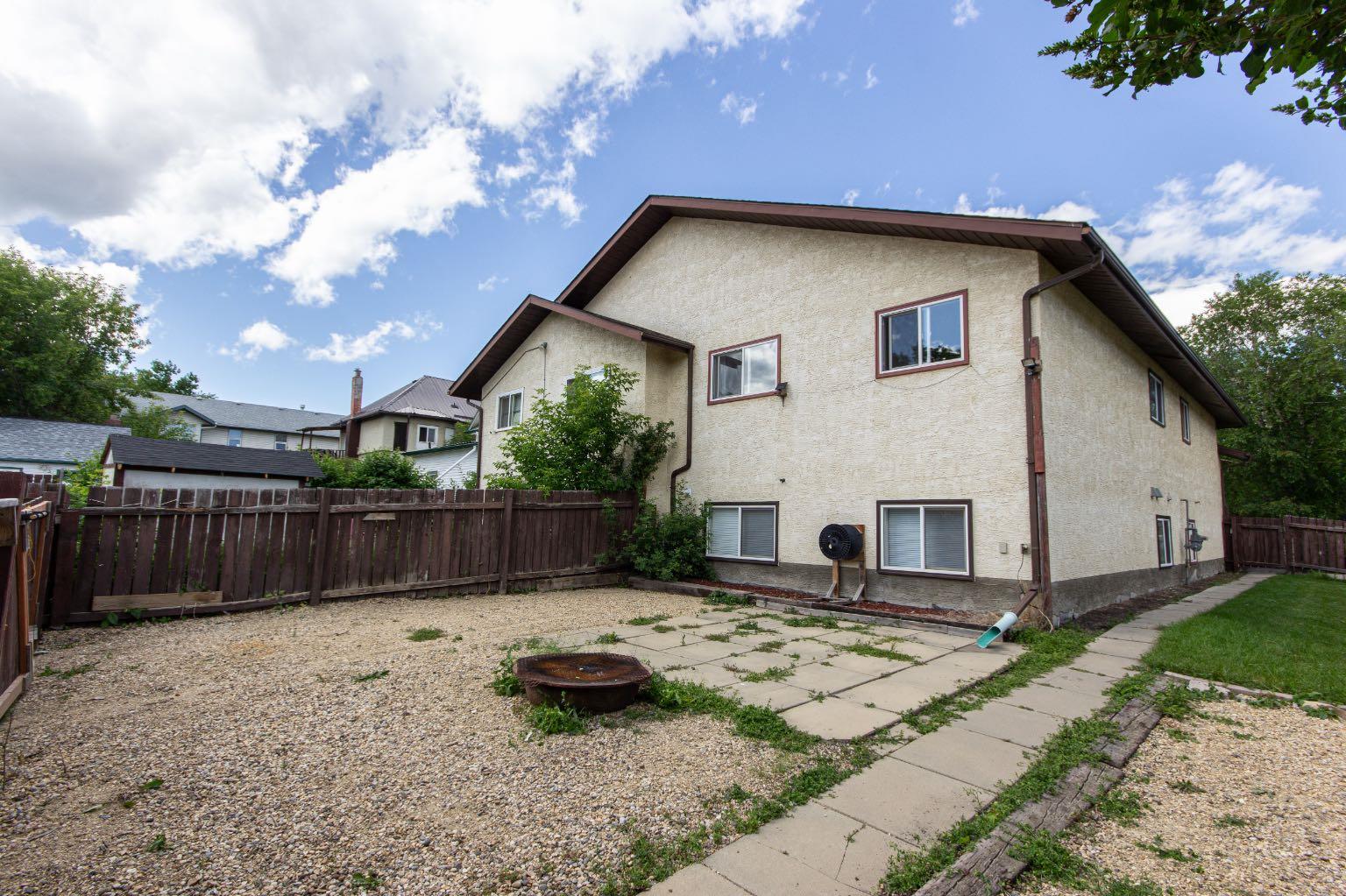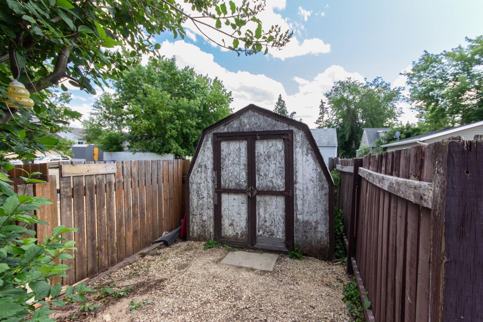 Calling investors and first time home buyers! This nicely updated 5 bedroom, 2 bathroom half duplex offers a number of recent upgrades including new shingles (2024), high efficient furnace (2023), hot water tank (2022), and a number of updated vinyl windows. The bright, open-concept living and dining area is filled with natural light from a large front-facing window, and the U-shaped kitchen offers plenty of oak cabinetry and functionality. The main floor hosts three comfortably sized bedrooms, including a spacious primary, along with the main 4-piece bathroom. You'll also appreciate the main floor laundry and a spacious storage room for added convenience. The fully finished basement with in-floor heat offers even more living space, including a large family room, two additional bedrooms, another 4 piece bathroom, and a flex space with a sink and cabinetry that could work for a home hair salon, hobby room, bar, or even kitchenette. Outside, the fully fenced backyard offers ample space for gatherings, complete with a paver patio, storage shed, and large gravel parking pad. Situated just steps from walking trails, parks, schools, playgrounds, restaurants, and shopping, this property is full of potential and ready for immediate possession!