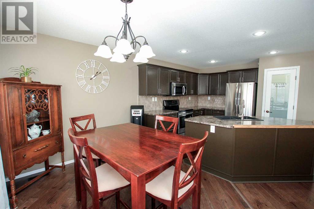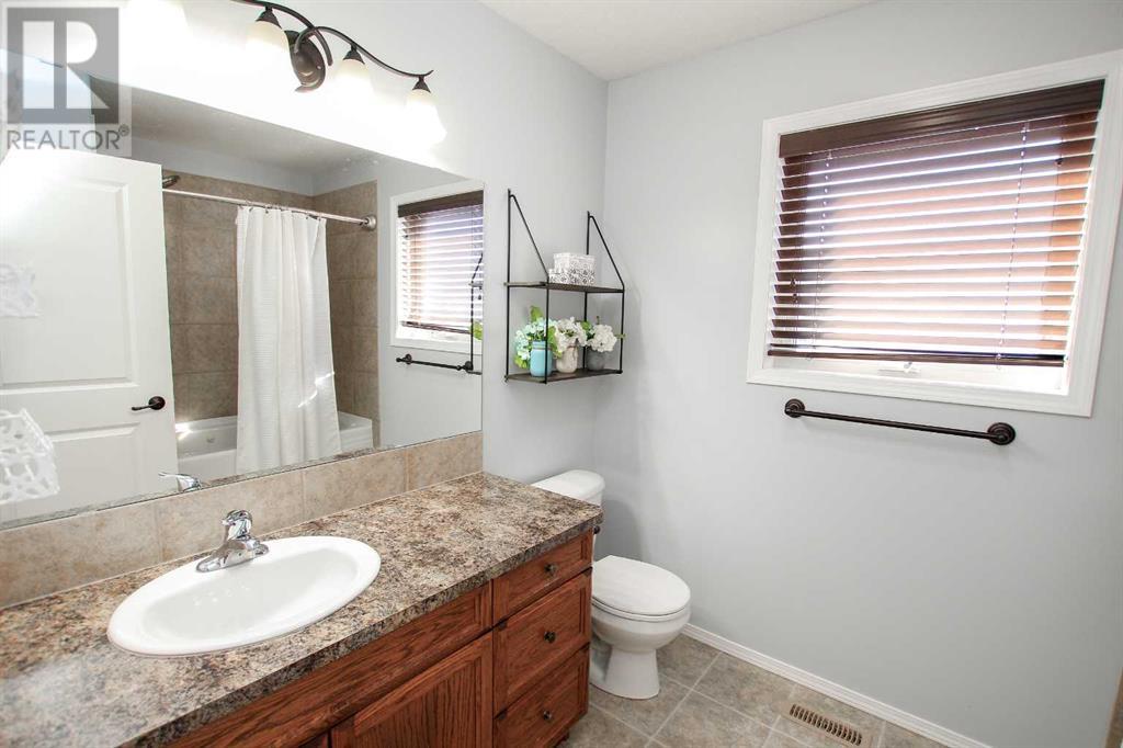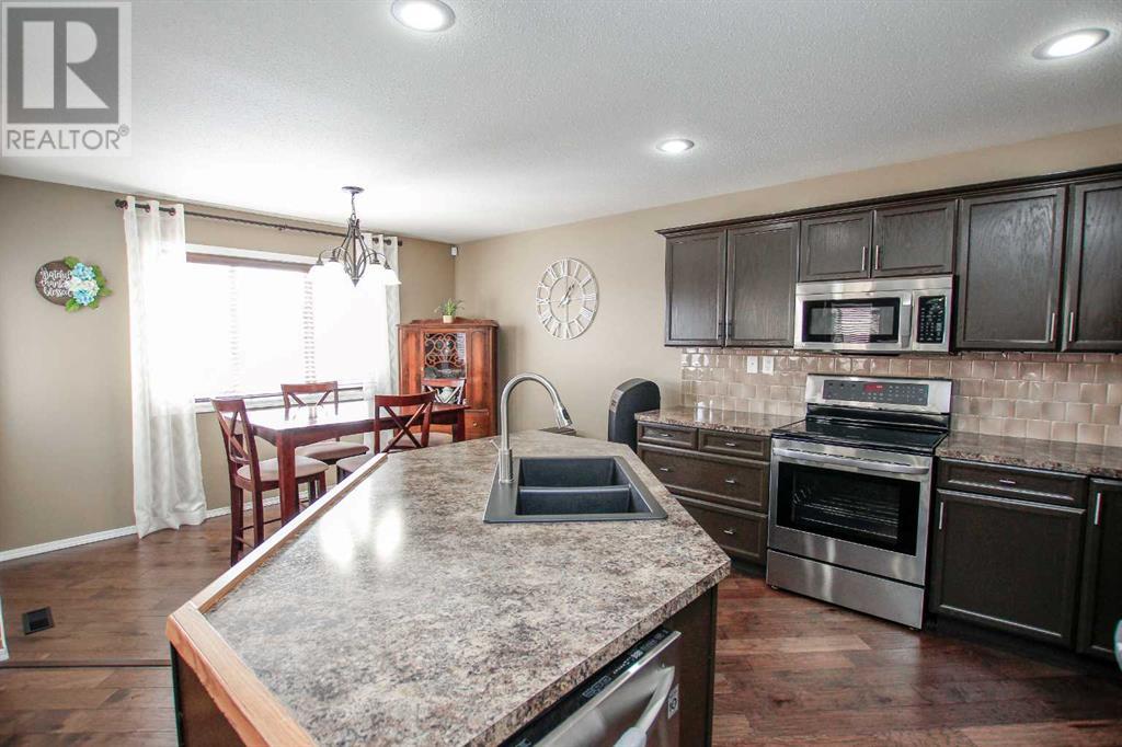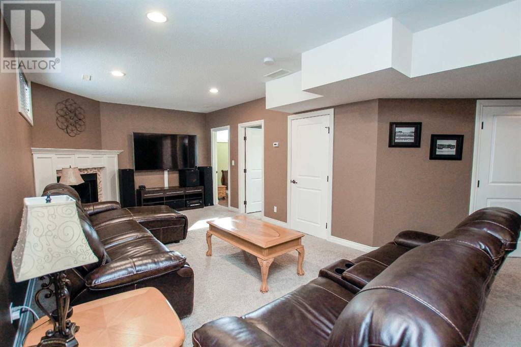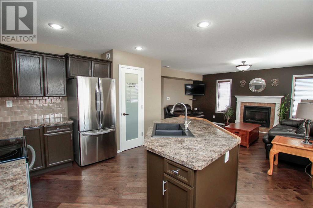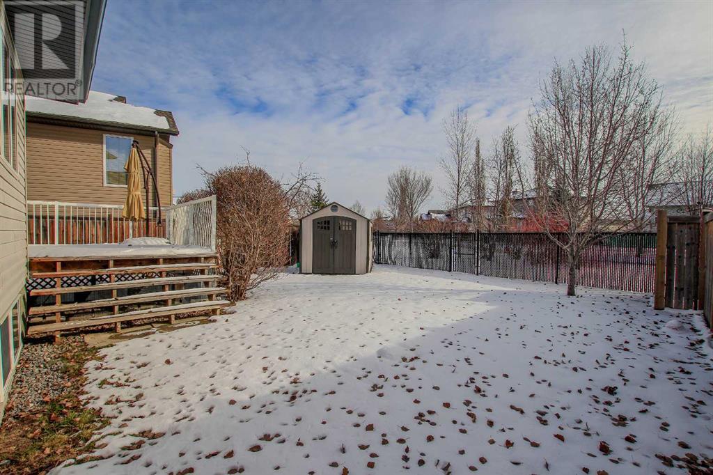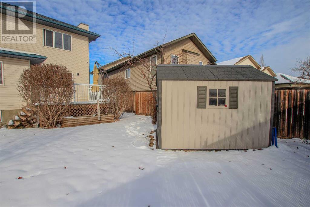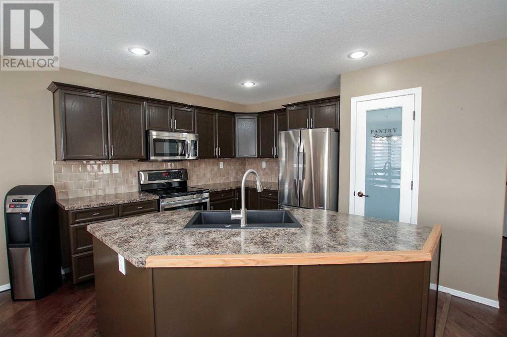 FULLY DEVELOPED 4 BED (3 up, 1 down), 4 BATH 2-STOREY ~ HEATED DOUBLE ATTACHED GARAGE ~ NO NEIGHBOURS BEHIND ~ LOADED WITH UPGRADES ~ Pride of ownership is evident in this well cared for, tidy home ~ An oversized covered front veranda welcomes you and leads to a sun filled foyer that opens to the upper level ~ Open concept main floor layout complemented by high ceilings offers a feeling of spaciousness ~ The living room has large windows offering tons of natural light and is centred by a cozy gas fireplace with a mantle and tile surround ~ The kitchen offers an abundance of cabinet and counter space, full tile backsplash, stainless steel appliances, a large walk in pantry with floor to ceiling shelving and a large island with a granite composite sink ~ The dining room has another large picture window plus garden door access to the large deck and backyard ~ 2 piece main is located next to the mud room with access to the garage and conveniently located laundry with plenty of built in cabinets ~ Open staircase overlooks the foyer and leads to the upper level ~ The massive primary bedroom can easily accommodate a king bed plus multiple pieces of large furniture, a large walk in closet and a 4 piece ensuite with a jetted tub ~ 2 additional bedrooms located on the upper level are both a generous size and share a 4 piece bathroom ~ The fully finished basement with high ceilings features a large family room with a corner gas fireplace, 4th bedroom, a 4 piece bathroom with a tiled surround and space for storage ~ Other great features include; Metal roof, central vacuum with attachments, central air conditioning, security system (no contract) ~ 22' L x 24' W garage is heated and insulated ~ The sunny south west facing backyard is landscaped, has an in ground sprinkler system, garden shed and is fully fenced with access to the treed walking path that leads to multiple parks and playgrounds ~ Excellent location; close to multiple schools, parks, playgrounds, YMCA with easy acce ss to tons of shopping, dining and highway access. (id:22211)