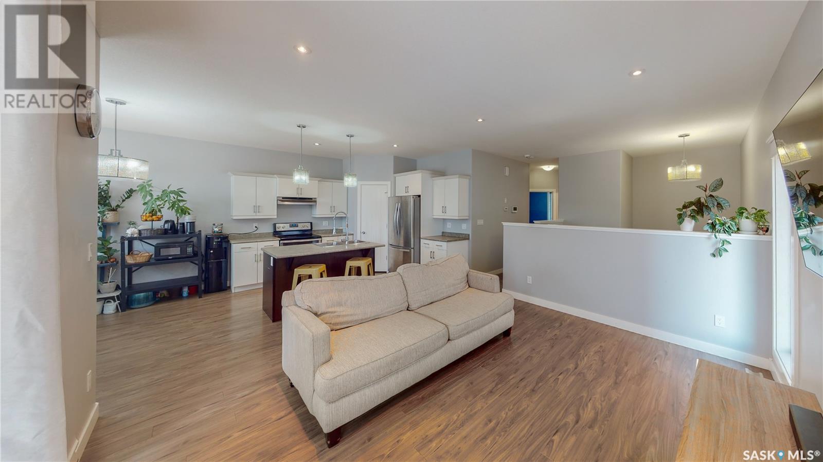Welcome to 1150 Jurasin Street N in very desirable neighborhood of Hawkstone. This beautiful Gilroy built bi-level home offers over 1000+ sqft of living space and is top to bottom beautifully finished. The house features nice front curb appeal with covered entrance. Walking in, you are first greeted with a bright foyer area. Moving up the stairs, you will see open-concept main floor with living room, kitchen and dining area. Walking down on this floor, you will see two nice sized bedrooms and a full 4-pc bathroom. The master bedroom offers a large walk-in closet. White cabinetry, walk-in pantry, stainless steel appliances and island, all compliment this perfectly laid out main floor. Downstairs, you will find a fully finished basement, complete with rec room, a large bedroom, 4-pc bathroom, laundry and utility room. Off the living room, there is a mud room, rear entrance door and covered composite steps, which leads you to the maintenance free beautiful backyard, partially fenced on two side. There is a parking pad for future garage development. The maintenance-free backyard is fully landscaped, with patio and rainbow rocks. Walking distance to Hopson Park and close to all the amenities in the north including Walmart, Superstore, Banks, Restaurants, this home is a perfect choice for investors or to call it your home! Contact your REALTOR® today for more information or for showings. (id:22211)