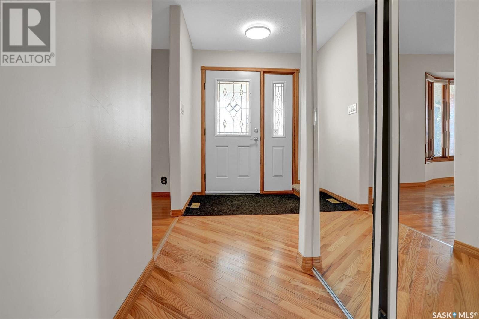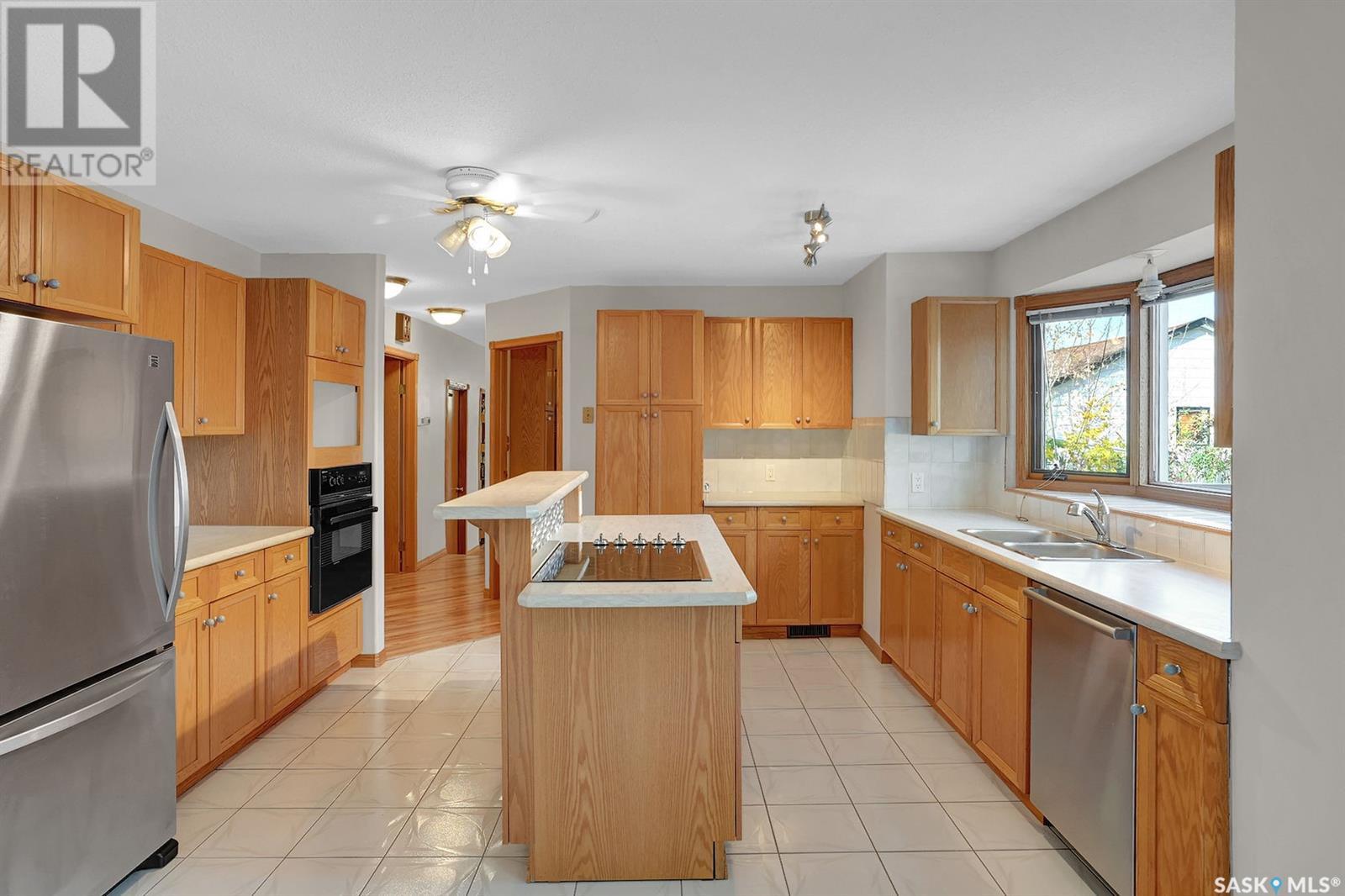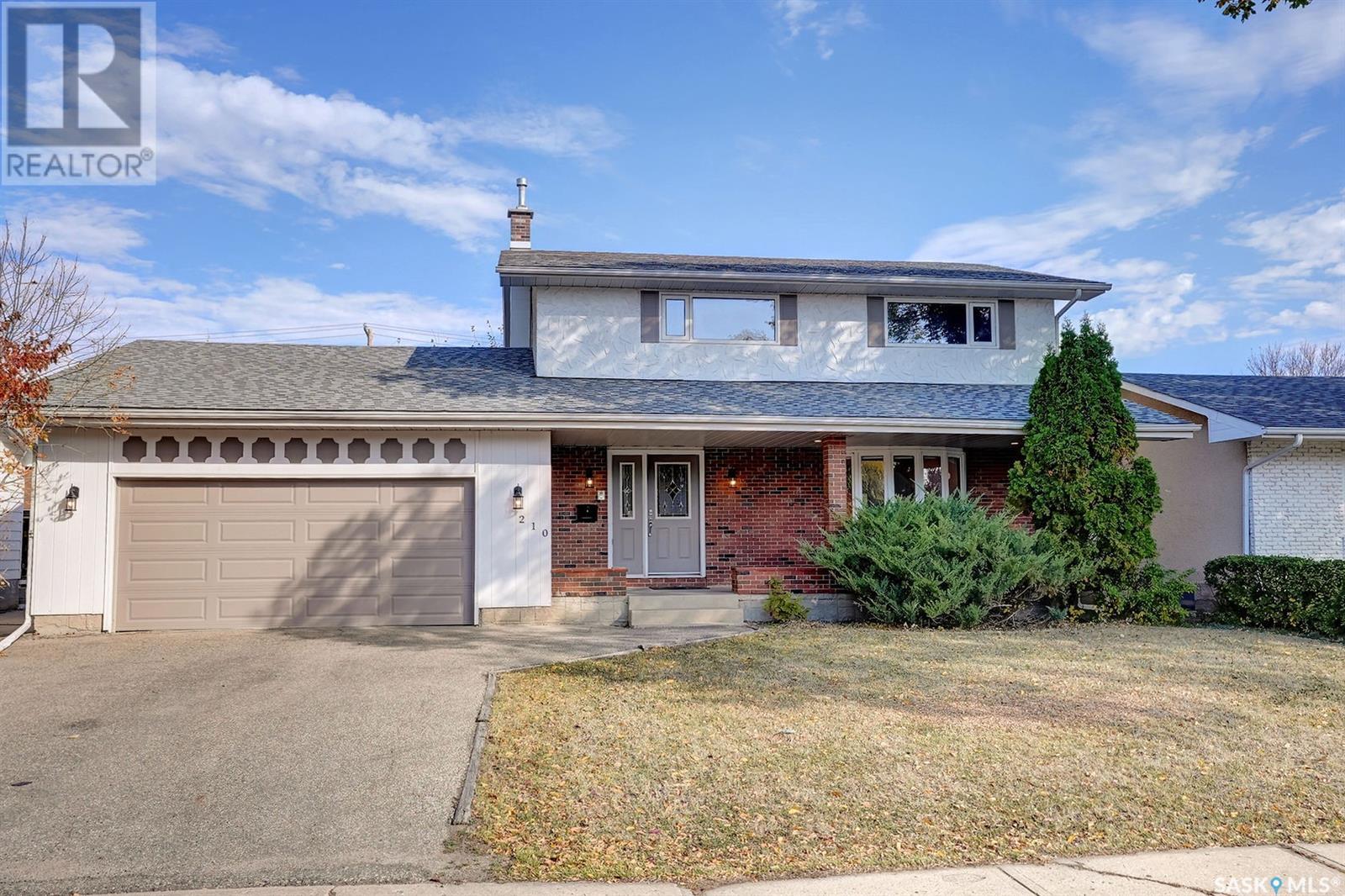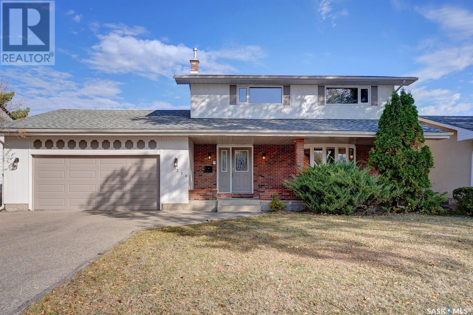 Welcome to 210 Hanley Crescent with fantastic north/west Regina location convenient to schools, shopping and all amenities. This outstanding Fiorante built home is perfect for a growing family with 1974 sq.ft., 3 very large bedrooms, 3 bathrooms including main floor laundry, lovely and spacious living areas throughout, insulated and drywalled double attached garage with direct entry. Many upgrades have been done to offer an immaculate and move-in ready home with a quick possession! Covered front verandah is an inviting entry which opens into to the foyer where there is beautiful upgraded hardwood flooring that continues down the hall and into the front living room and family room. Front living room has bayed south facing windows to bring in lots of natural light and a large opening leads into the huge kitchen and dining. Dining has garden doors leading to a big deck and massive fully fenced yard. The kitchen offers an abundance of modern oak cabinetry and here there is gorgeous white ceramic tile flooring. Kitchen featuring a centre island with lunch counter with buil-in cooktop. Lots of counter prep space and large bayed windows over the sinks with views to the rear yard. Built-in wall oven, dishwasher and fridge are all included. A combination 3pc bath and laundry is off the kitchen. A sunken family room is such a great space with cool dumb-waiter bar feature and garden doors lead to a concrete patio and back yard. Newer carpeting is on the stairs to the upper level and newer carpet in the first bedroom. All bedrooms are very large and spacious where parquet hardwood flooring is in the other bedrooms including the primary suite. The primary bedroom has a 2pc ensuite and a full family bath completes this second floor. Basement is partially developed with some room divisions and houses the mechanical room where there are dual mid efficient furnaces and upgraded 100amp electrical panel. Additional upgrades include most windows and shingles. Call to view today! (id:22211)