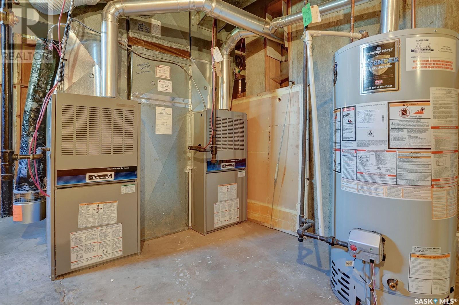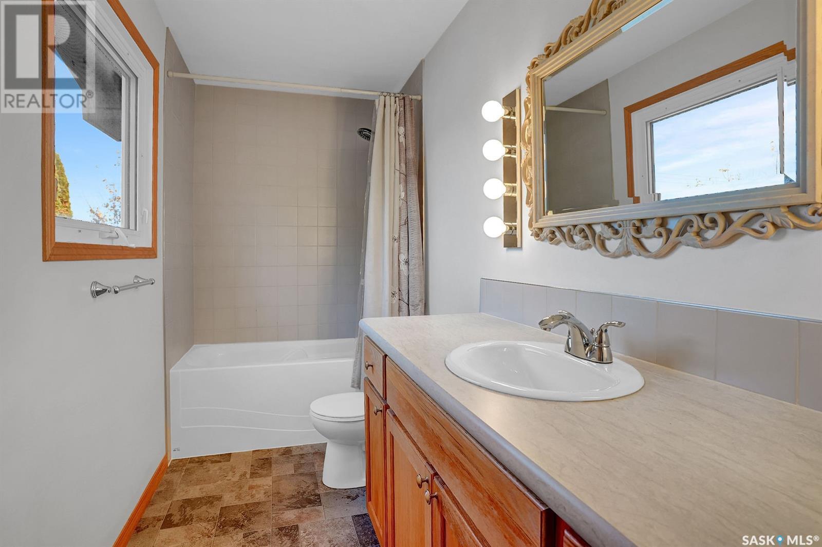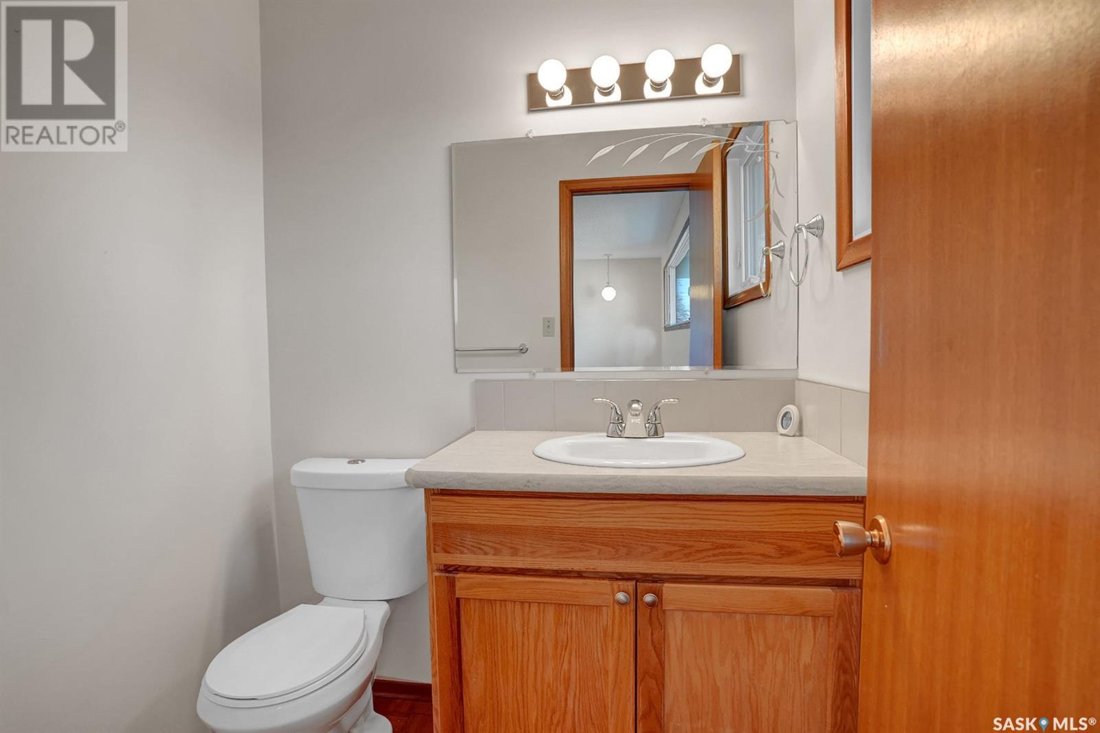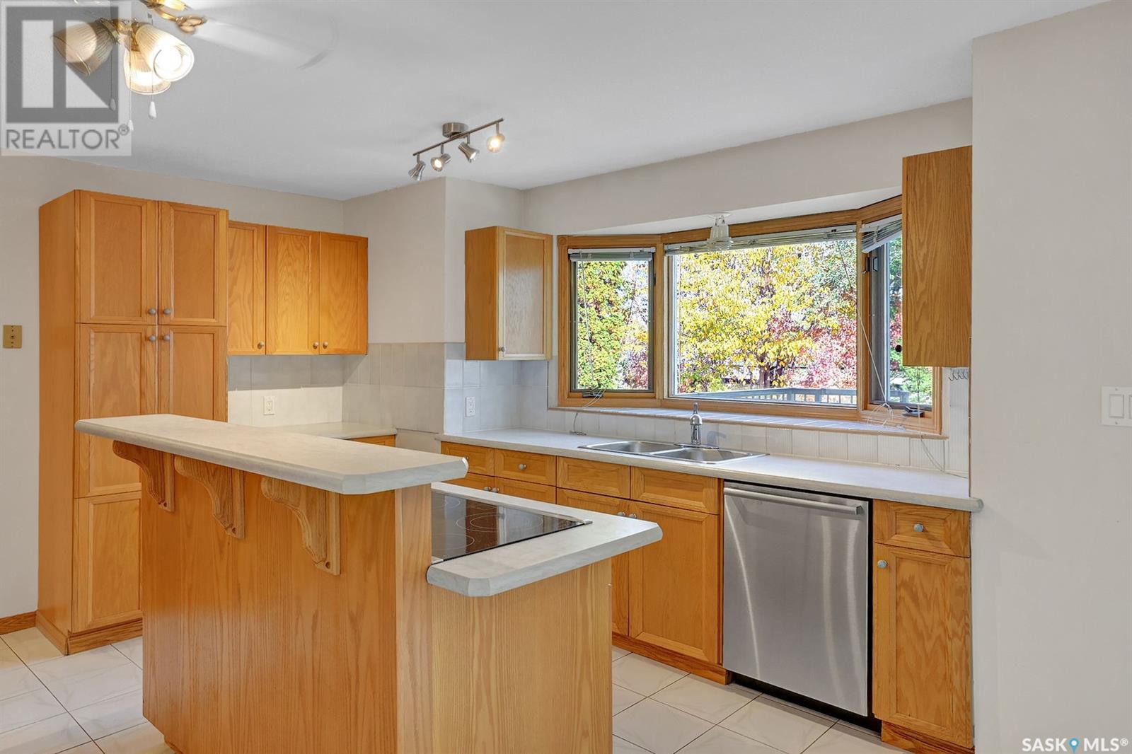 Welcome to 210 Hanley Crescent with fantastic north/west Regina location convenient to schools, shopping and all amenities. This outstanding Fiorante built home is perfect for a growing family with 1974 sq.ft., 3 very large bedrooms, 3 bathrooms including main floor laundry, lovely and spacious living areas throughout, insulated and drywalled double attached garage with direct entry. Many upgrades have been done to offer an immaculate and move-in ready home with a quick possession! Covered front verandah is an inviting entry which opens into to the foyer where there is beautiful upgraded hardwood flooring that continues down the hall and into the front living room and family room. Front living room has bayed south facing windows to bring in lots of natural light and a large opening leads into the huge kitchen and dining. Dining has garden doors leading to a big deck and massive fully fenced yard. The kitchen offers an abundance of modern oak cabinetry and here there is gorgeous white ceramic tile flooring. Kitchen featuring a centre island with lunch counter with buil-in cooktop. Lots of counter prep space and large bayed windows over the sinks with views to the rear yard. Built-in wall oven, dishwasher and fridge are all included. A combination 3pc bath and laundry is off the kitchen. A sunken family room is such a great space with cool dumb-waiter bar feature and garden doors lead to a concrete patio and back yard. Newer carpeting is on the stairs to the upper level and newer carpet in the first bedroom. All bedrooms are very large and spacious where parquet hardwood flooring is in the other bedrooms including the primary suite. The primary bedroom has a 2pc ensuite and a full family bath completes this second floor. Basement is partially developed with some room divisions and houses the mechanical room where there are dual mid efficient furnaces and upgraded 100amp electrical panel. Additional upgrades include most windows and shingles. Call to view today! (id:22211)