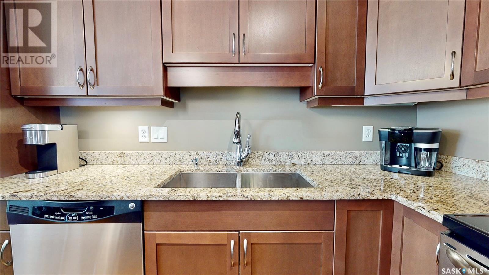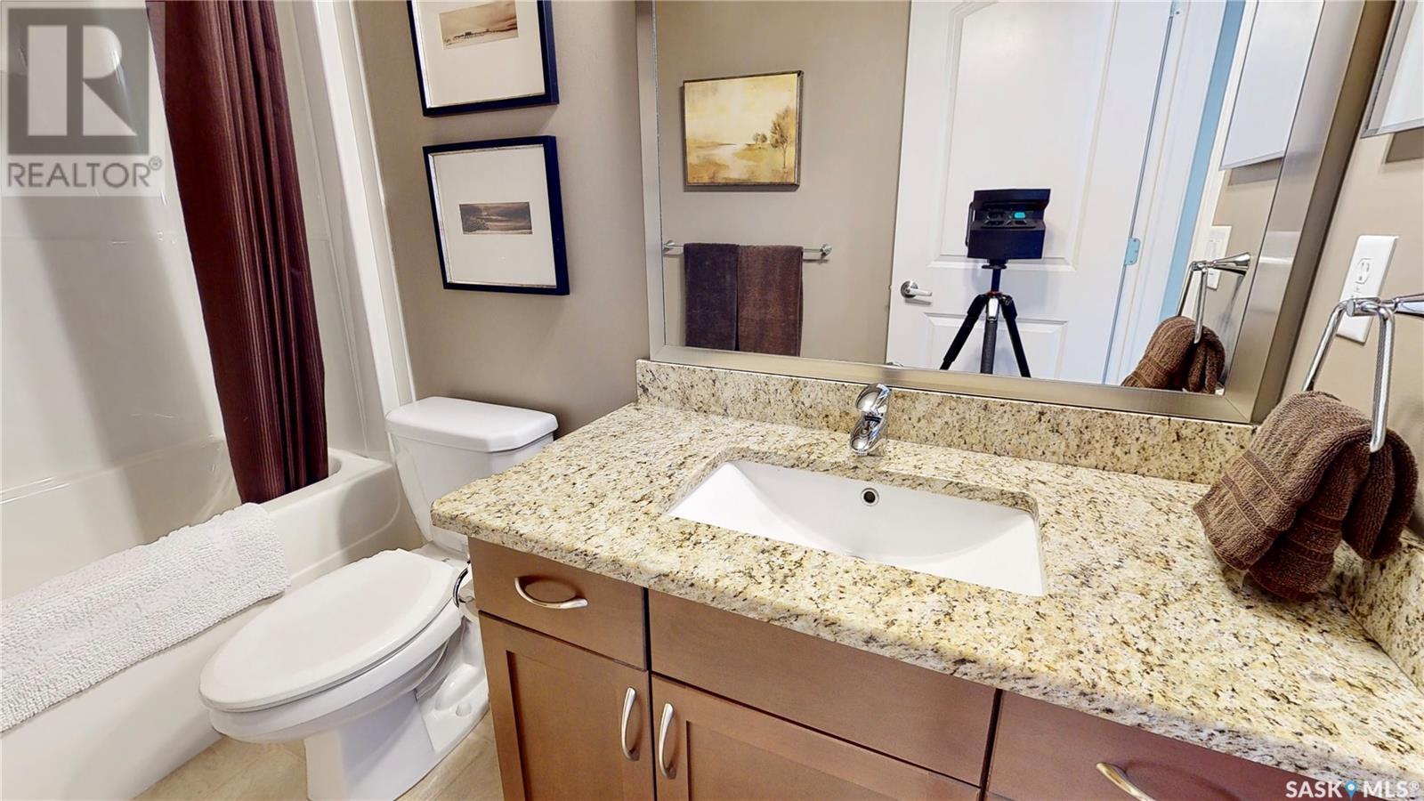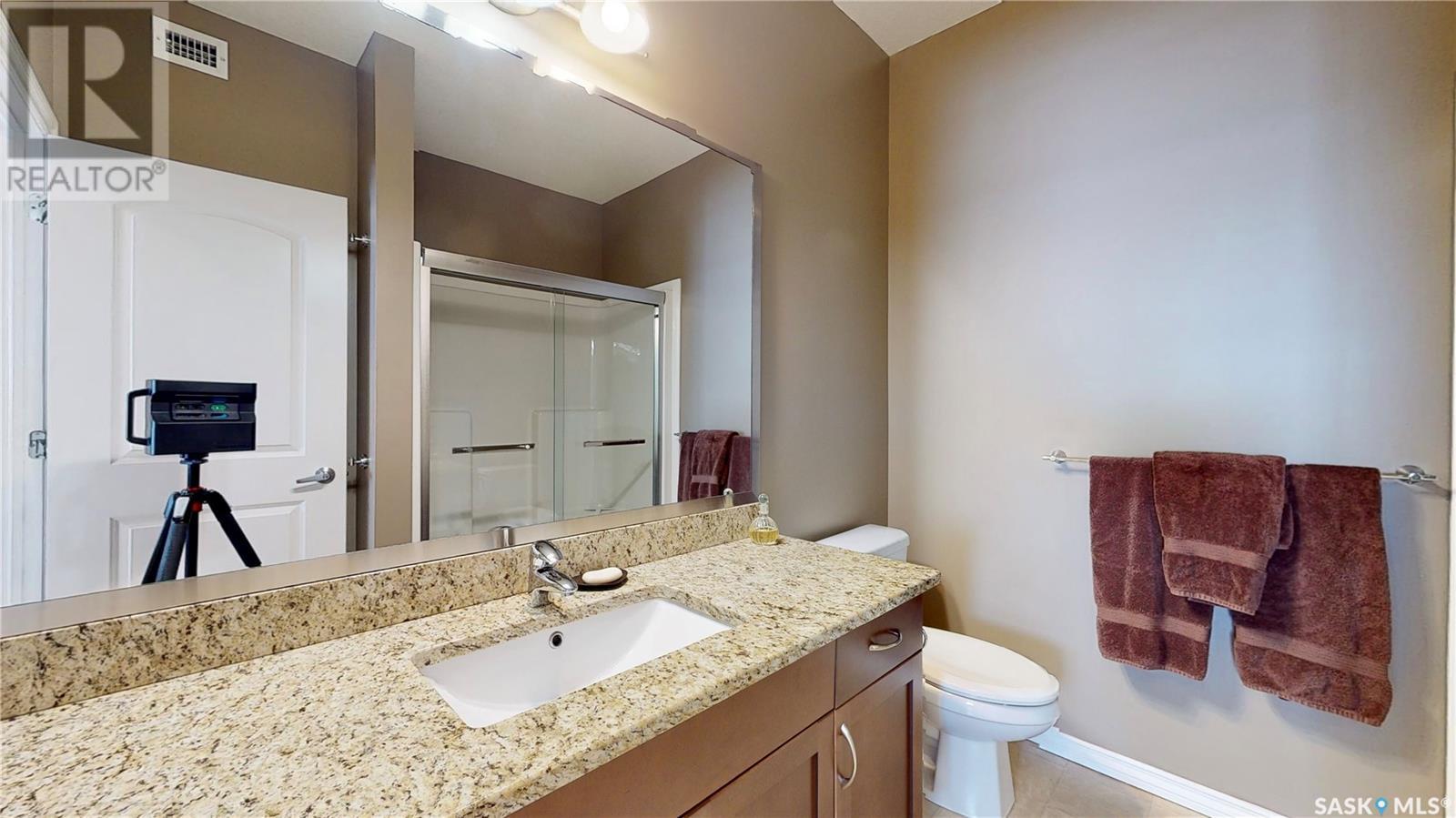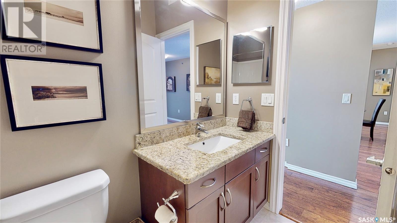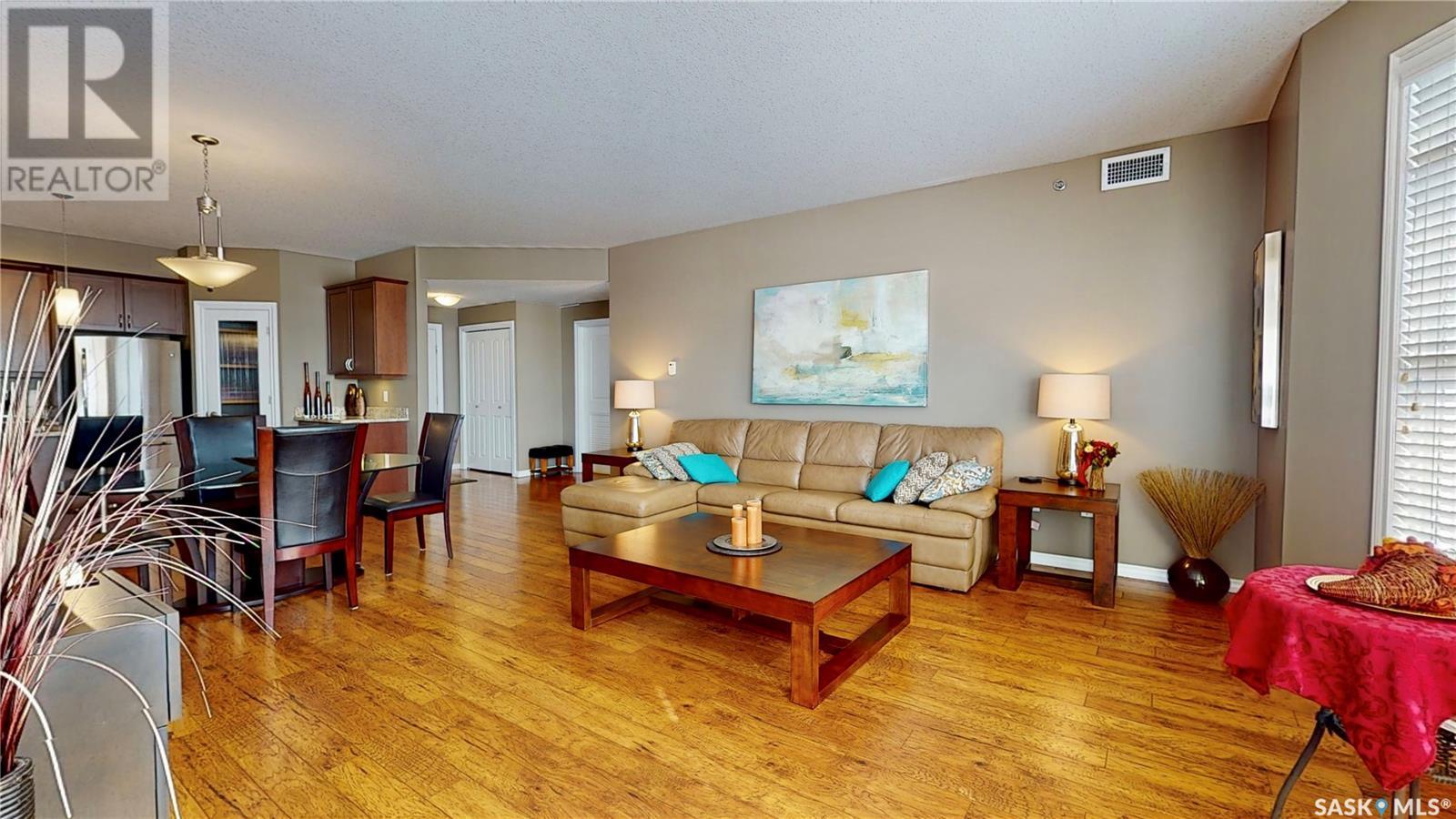 Welcome to this rare chance to own an executive 2 bedroom 2 bathroom top floor unit with a view of the lake. This home has been immaculately kept and this well laid out floor plan has neutral tones and is flooded with natural light. The foyer has lots of space with room for an entry table and even a chair. The beautiful large kitchen has tons of dark cabinets, gorgeous granite counters and matching granite back splash as well as an updated stainless steal appliance package. Extra storage is found in the large corner pantry. The kitchen is open to a spacious dining area as well as the large living room with lots of space for company. The generous sized primary bedroom has room for a king sized bed and a full bedroom set. It has a pass through with double closets and a 3 pc en-suite with walk in shower with a built in bench as well as an extra linen closet. Cabinets, granite and fixtures match the kitchen. There is a second spacious bedroom, a 4pc main bathroom with a tub/shower combo/matching finishes and completing this gorgeous unit is the convenient in-suite laundry/utility room. This complex offers security doors, secure heated underground parking with a storage unit and an extra parking stall above ground. There is ample guest parking, a common room with kitchenette, fireplace and pool table and a great community of neighbors. It's a wonderful place to live!! (id:22211)