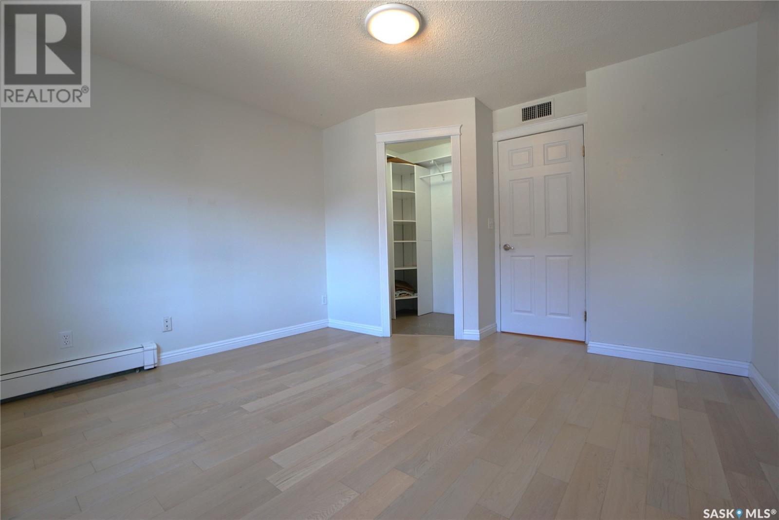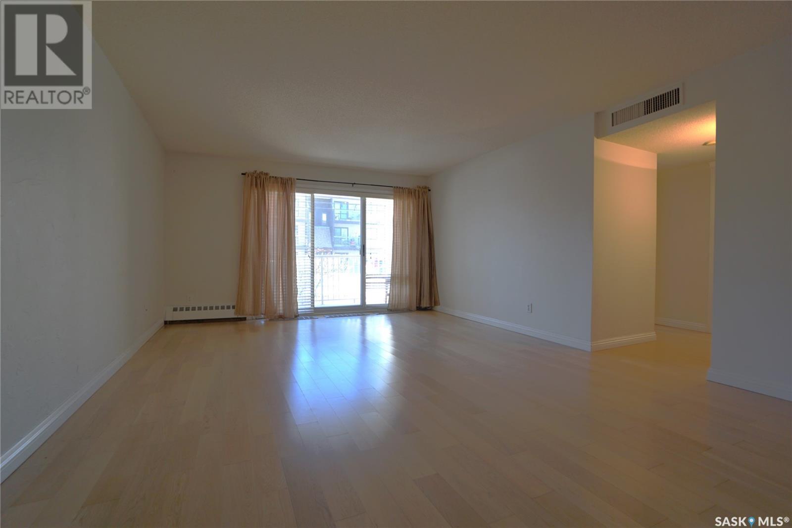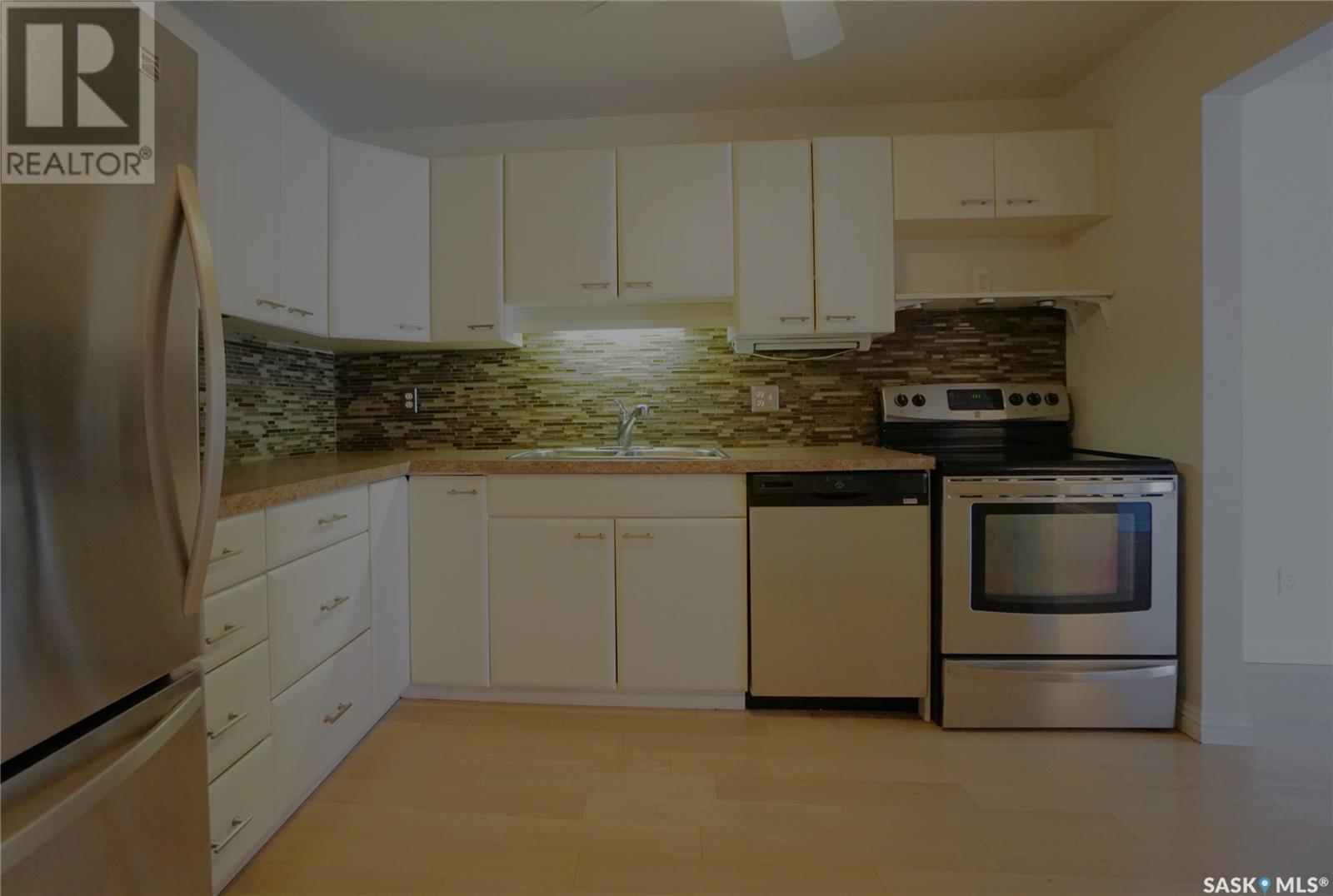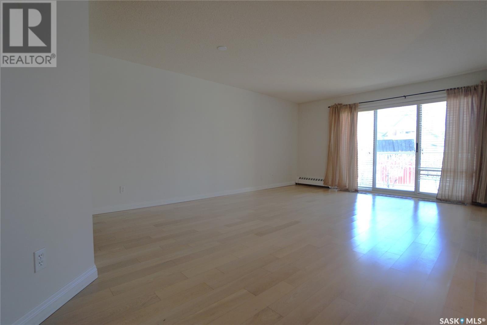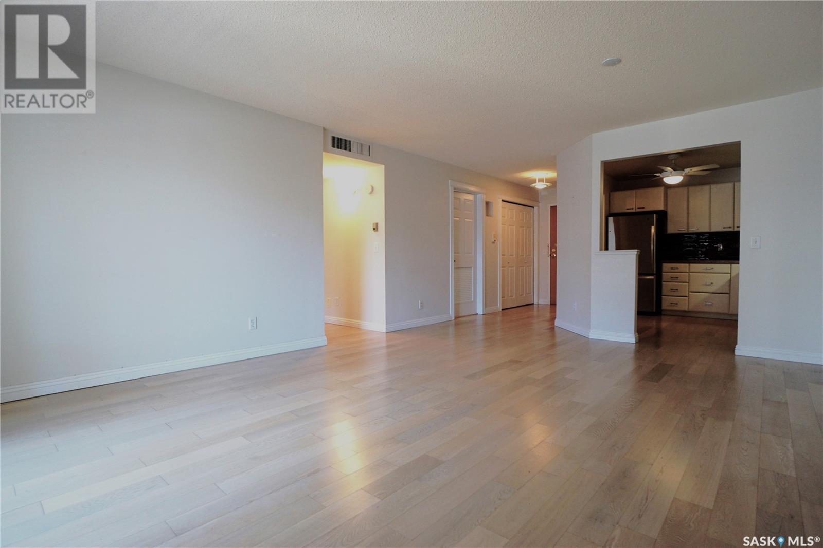 This fantastic condo is located close to Wascana Park and a 5 minute walk to Cathedral or down town. Great floor plan with spacious living room, featuring newer flooring and a private balcony that overlooks the court yard and offers additional storage. The kitchen has been updated with light and modern flat panel cabinets, counter tops, mosaic tile backsplash and stainless-steel appliances. The generous size bedroom can fit a king size bed and features a walk-in closet. Completing this home is a full four-piece bath, linen closet, and good sized laundry/storage area. The condo comes complete with 1 underground parking spot. This quiet, well-maintained building also has an amenities room with walk-out patio. Condo fees include; heat, water, common area and external building maintenance, insurance, garbage and reserve fund. Schedule your showing today! (id:22211)