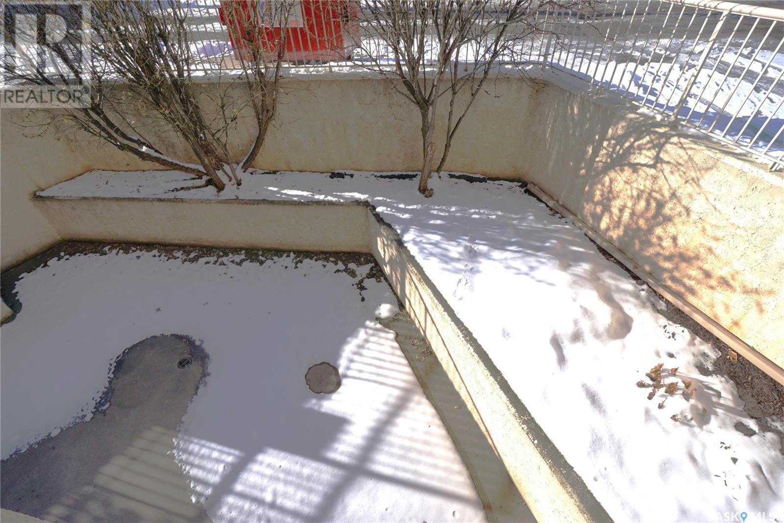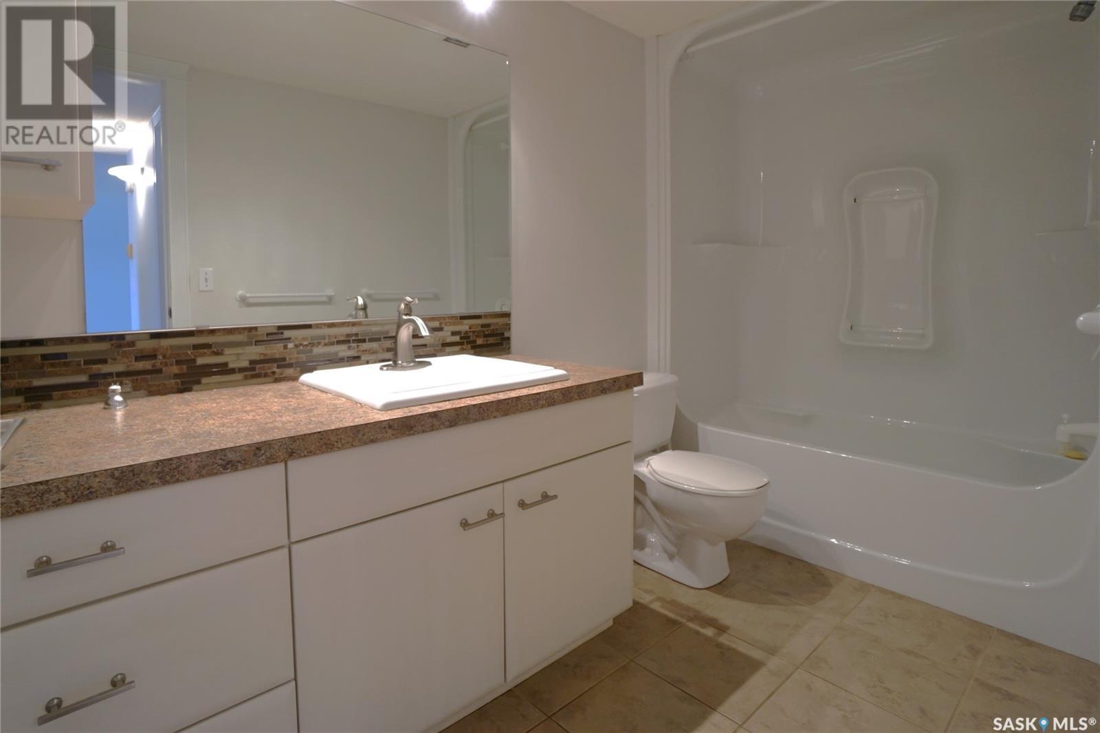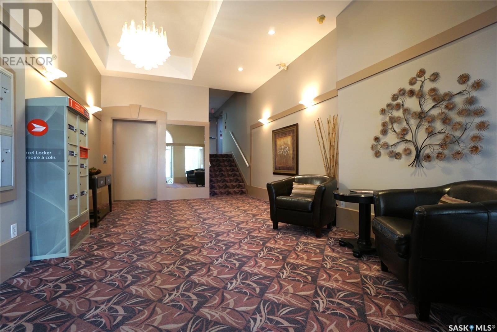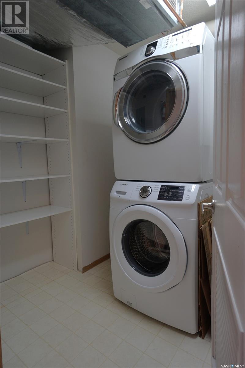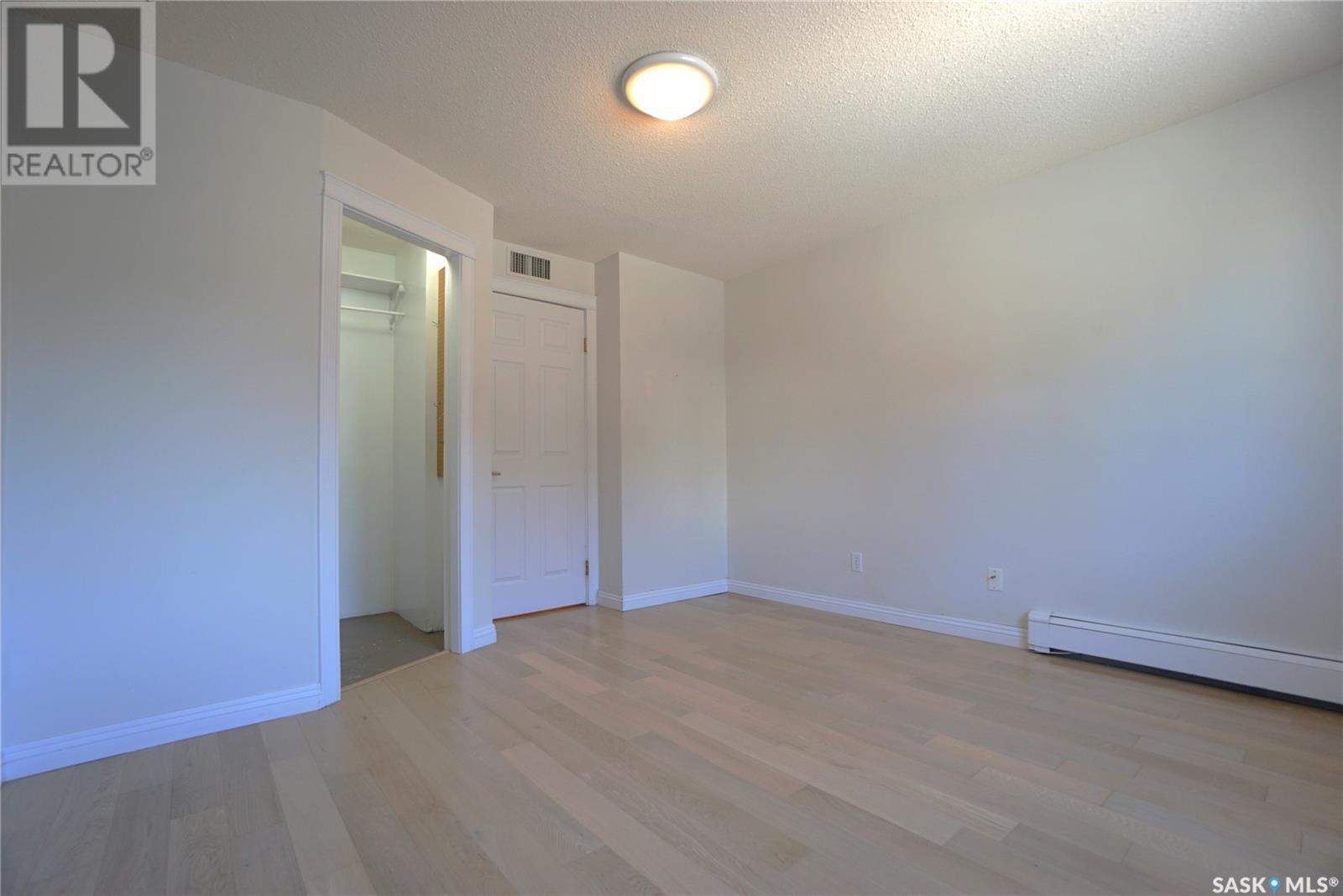 This fantastic condo is located close to Wascana Park and a 5 minute walk to Cathedral or down town. Great floor plan with spacious living room, featuring newer flooring and a private balcony that overlooks the court yard and offers additional storage. The kitchen has been updated with light and modern flat panel cabinets, counter tops, mosaic tile backsplash and stainless-steel appliances. The generous size bedroom can fit a king size bed and features a walk-in closet. Completing this home is a full four-piece bath, linen closet, and good sized laundry/storage area. The condo comes complete with 1 underground parking spot. This quiet, well-maintained building also has an amenities room with walk-out patio. Condo fees include; heat, water, common area and external building maintenance, insurance, garbage and reserve fund. Schedule your showing today! (id:22211)