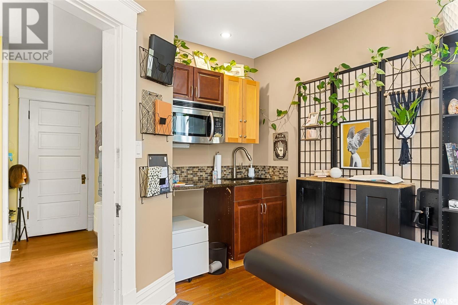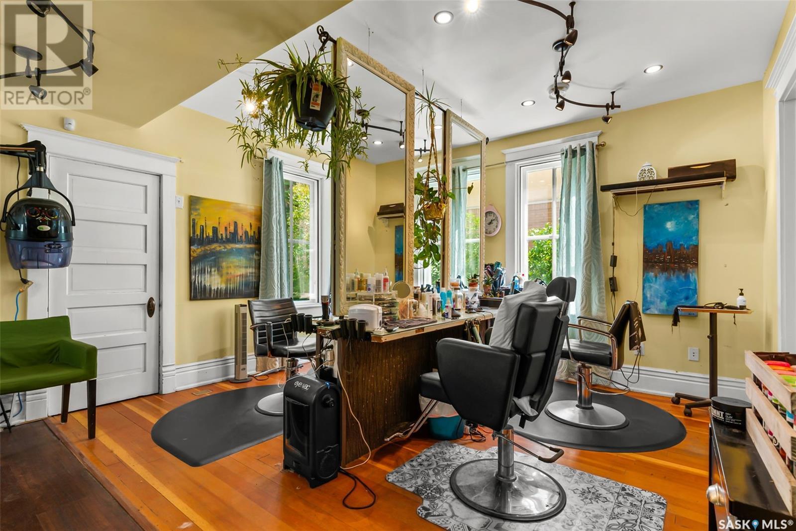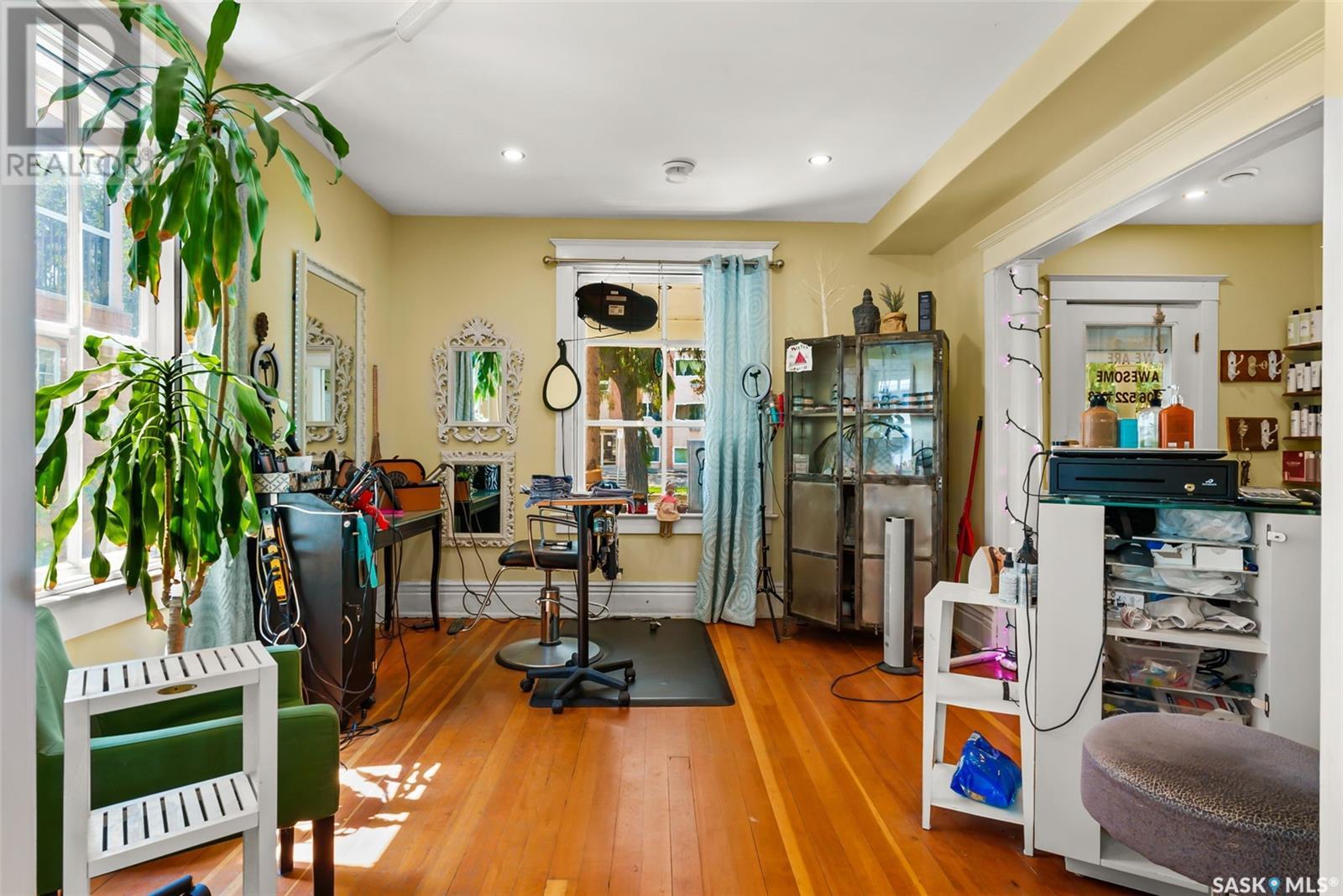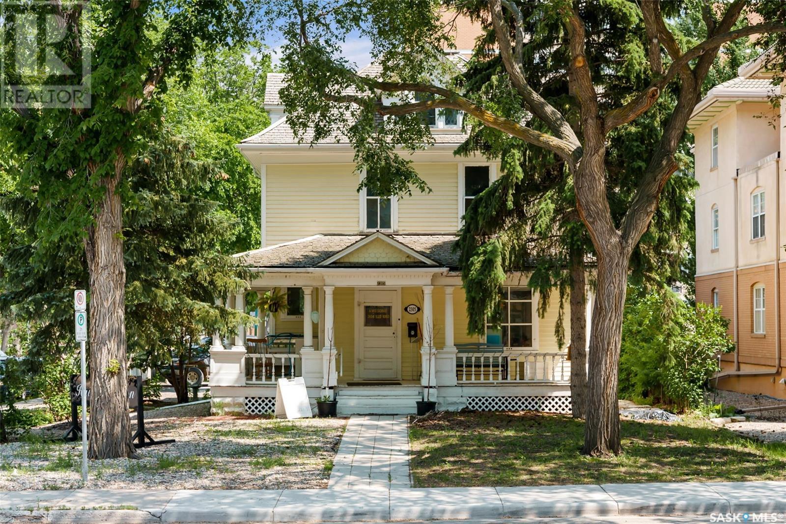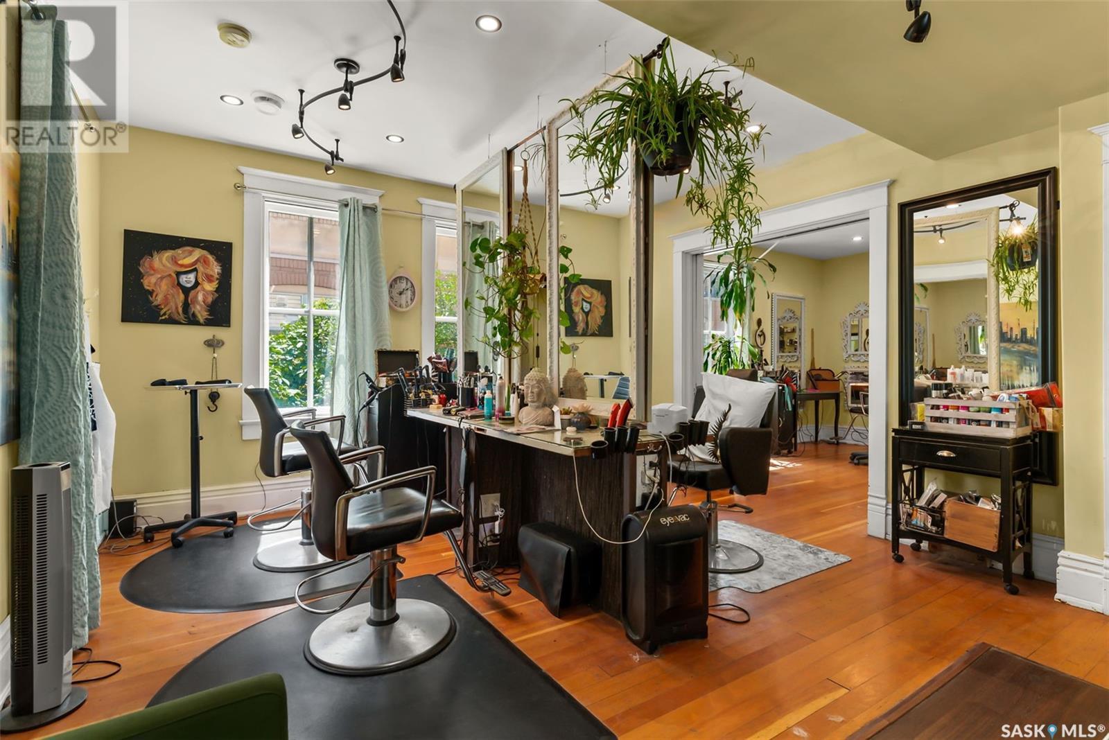 Don’t miss the opportunity to own this designated Heritage property a short distance from Wascana Park and downtown businesses! Currently utilized as a hair salon, this 1,523 square foot 2 storey home is zoned for both residential and commercial use, making it a fantastic property for a downtown lifestyle or trendy business space. Covered front porch provides nice street appeal and highlights the original character. Upon entry you are welcomed into the foyer with original hardwood floors – this space is currently being used as a retail and reception area. Open concept main floor with styling stations, kitchen area that has been turned into a back bar with sinks and a 2 pc power room. 2nd floor has 3 bedrooms currently used as treatment spaces – one with sink and microwave and another with a new shower and sink. Basement houses the laundry area (washer and dryer included) with plenty of storage space. Parking is a breeze with a gravel drive with space for 6 cars. Updates include: central air, and furnace, alarm system, knob and tube wiring replaced, all new plumbing, support beam added in basement plus spray foam insulation, new windows on the main level, exterior paint scraped and refreshed, all new fireproof insulation and drywall, chimney removed to open up the main floor all new brickwork on outside beams plus new concrete pads poured to reinforce the front porch. Contact your REALTOR® for a full list of upgrades and features. (id:22211)