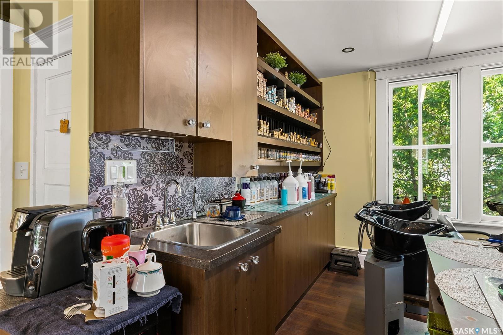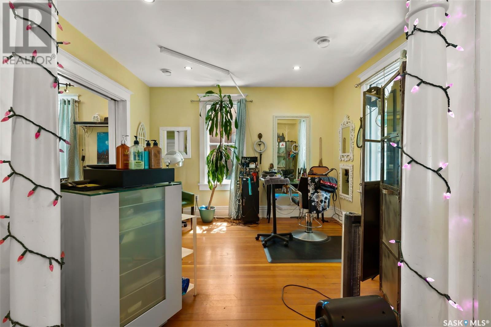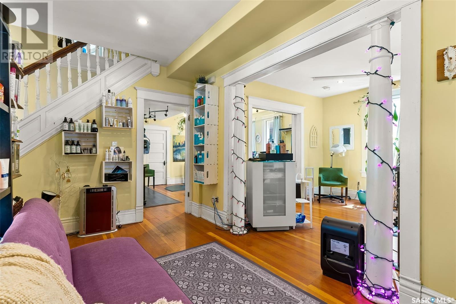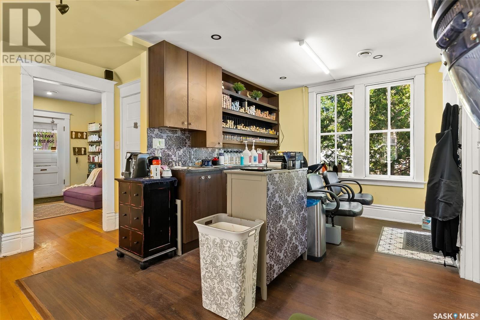 Don’t miss the opportunity to own this designated Heritage property a short distance from Wascana Park and downtown businesses! Currently utilized as a hair salon, this 1,523 square foot 2 storey home is zoned for both residential and commercial use, making it a fantastic property for a downtown lifestyle or trendy business space. Covered front porch provides nice street appeal and highlights the original character. Upon entry you are welcomed into the foyer with original hardwood floors – this space is currently being used as a retail and reception area. Open concept main floor with styling stations, kitchen area that has been turned into a back bar with sinks and a 2 pc power room. 2nd floor has 3 bedrooms currently used as treatment spaces – one with sink and microwave and another with a new shower and sink. Basement houses the laundry area (washer and dryer included) with plenty of storage space. Parking is a breeze with a gravel drive with space for 6 cars. Updates include: central air, and furnace, alarm system, knob and tube wiring replaced, all new plumbing, support beam added in basement plus spray foam insulation, new windows on the main level, exterior paint scraped and refreshed, all new fireproof insulation and drywall, chimney removed to open up the main floor all new brickwork on outside beams plus new concrete pads poured to reinforce the front porch. Contact your REALTOR® for a full list of upgrades and features. (id:22211)