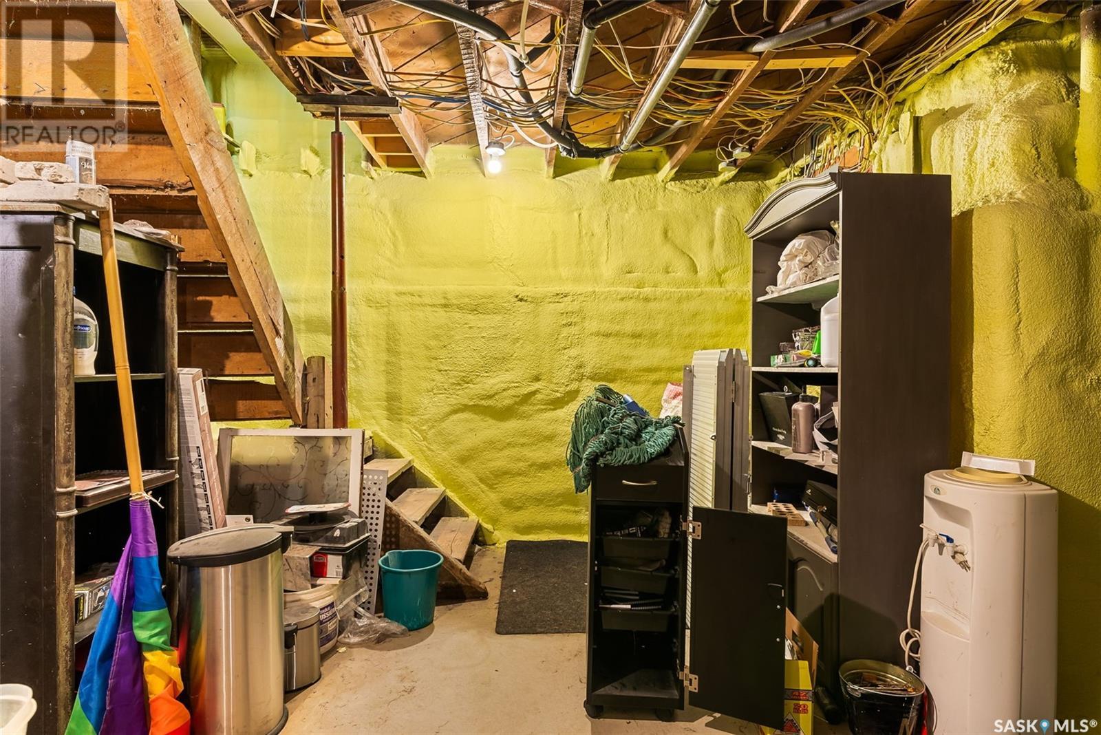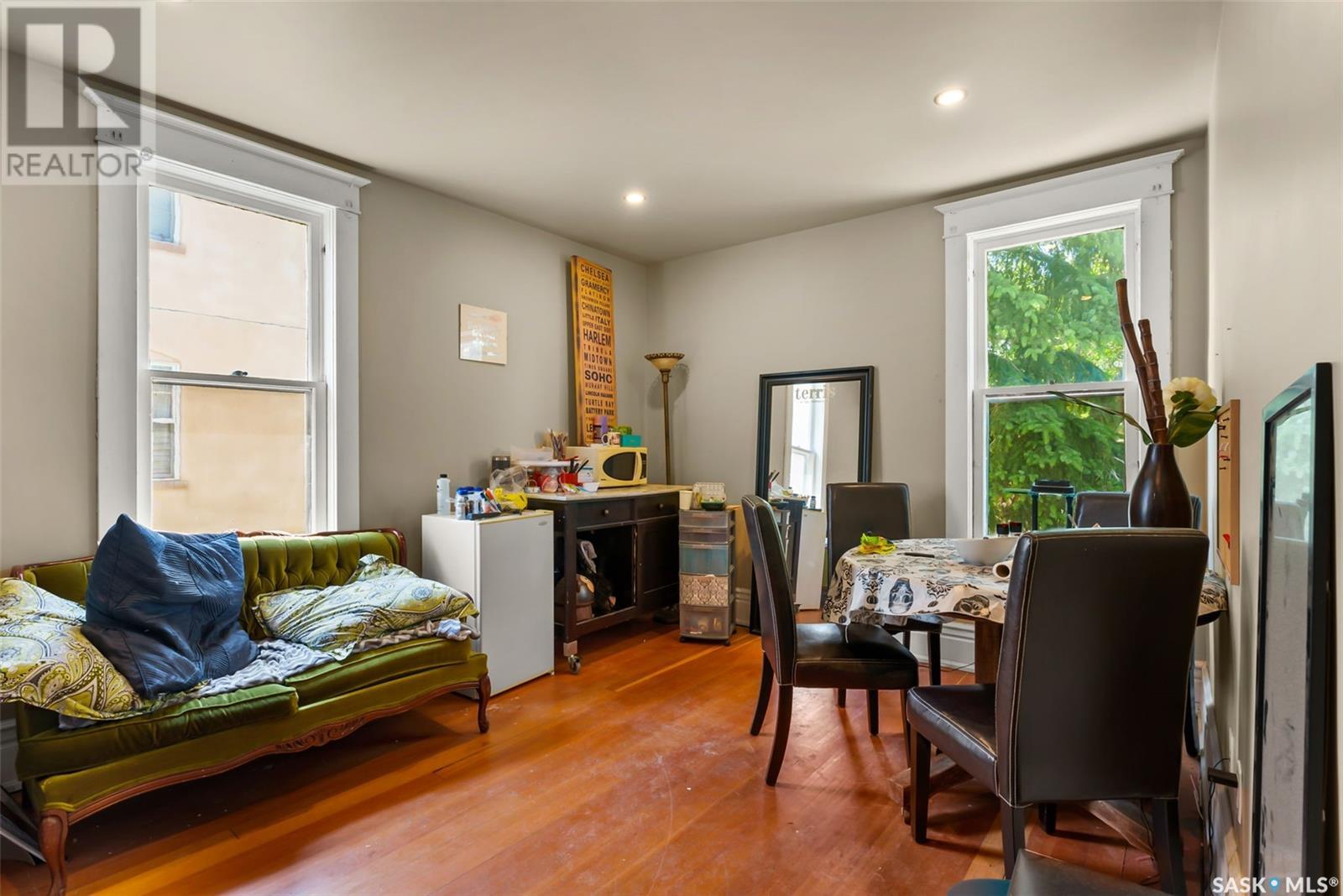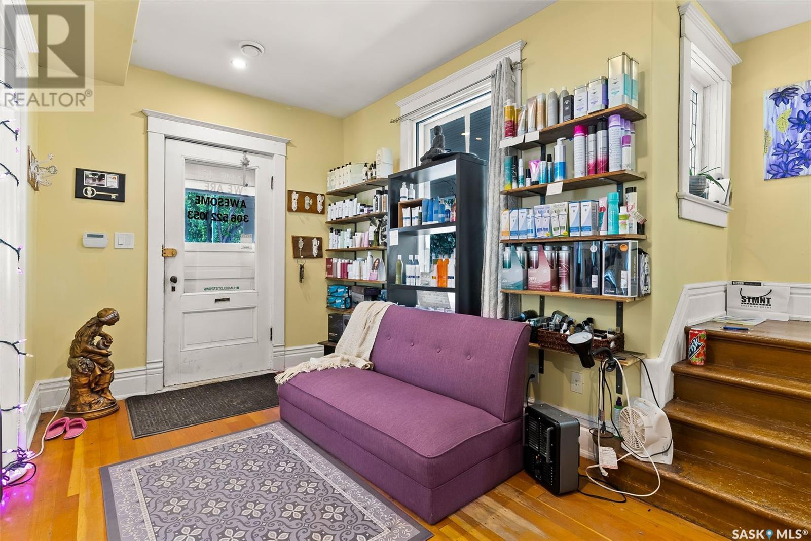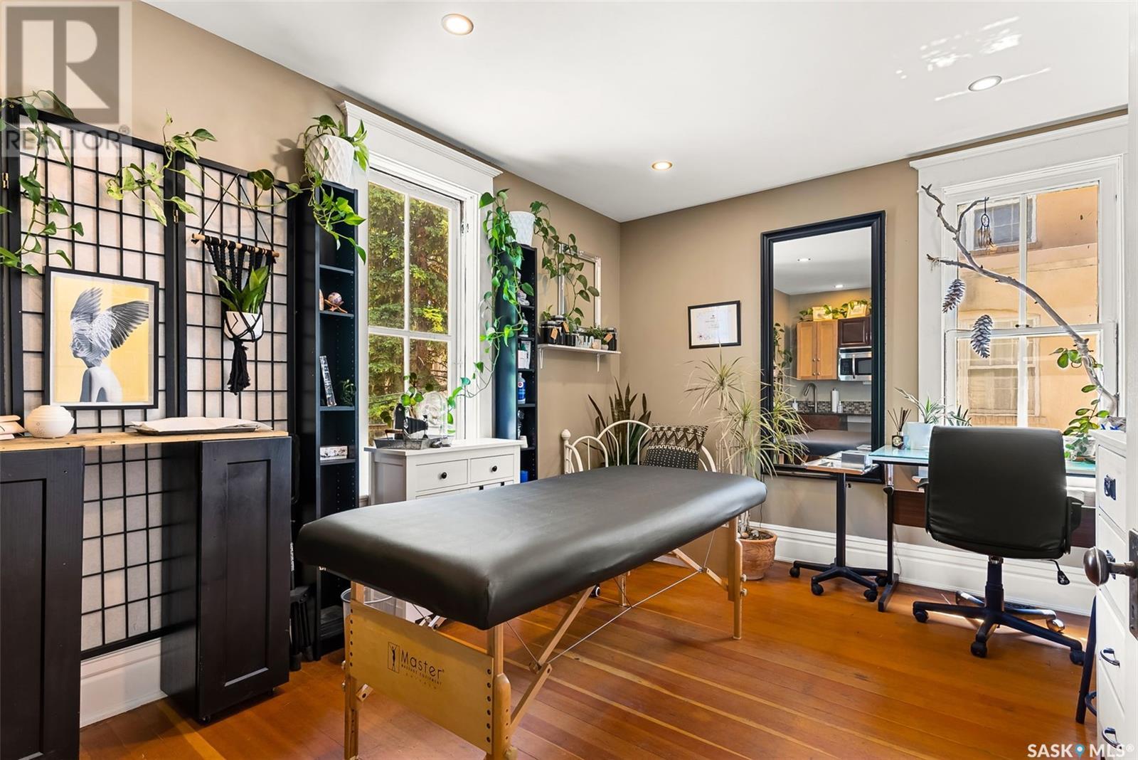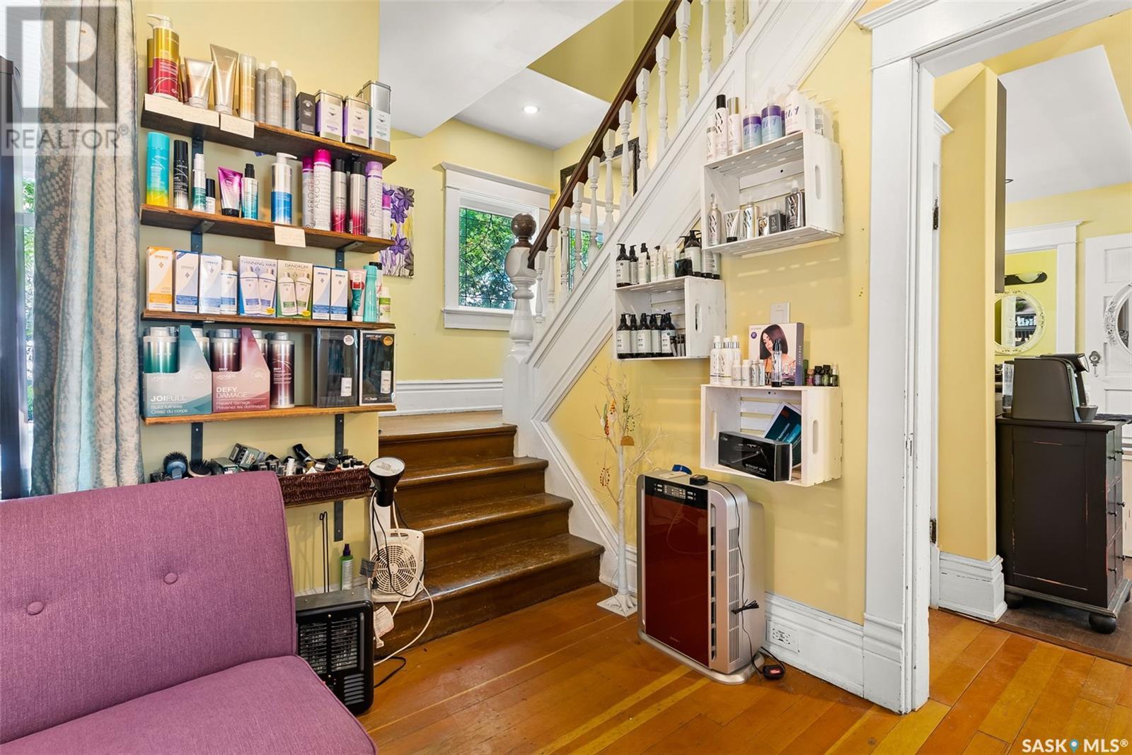 Don’t miss the opportunity to own this designated Heritage property a short distance from Wascana Park and downtown businesses! Currently utilized as a hair salon, this 1,523 square foot 2 storey home is zoned for both residential and commercial use, making it a fantastic property for a downtown lifestyle or trendy business space. Covered front porch provides nice street appeal and highlights the original character. Upon entry you are welcomed into the foyer with original hardwood floors – this space is currently being used as a retail and reception area. Open concept main floor with styling stations, kitchen area that has been turned into a back bar with sinks and a 2 pc power room. 2nd floor has 3 bedrooms currently used as treatment spaces – one with sink and microwave and another with a new shower and sink. Basement houses the laundry area (washer and dryer included) with plenty of storage space. Parking is a breeze with a gravel drive with space for 6 cars. Updates include: central air, and furnace, alarm system, knob and tube wiring replaced, all new plumbing, support beam added in basement plus spray foam insulation, new windows on the main level, exterior paint scraped and refreshed, all new fireproof insulation and drywall, chimney removed to open up the main floor all new brickwork on outside beams plus new concrete pads poured to reinforce the front porch. Contact your REALTOR® for a full list of upgrades and features. (id:22211)