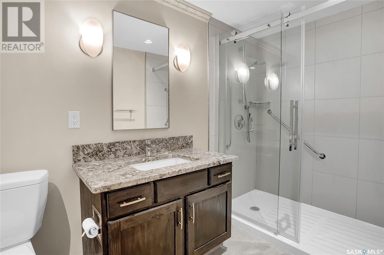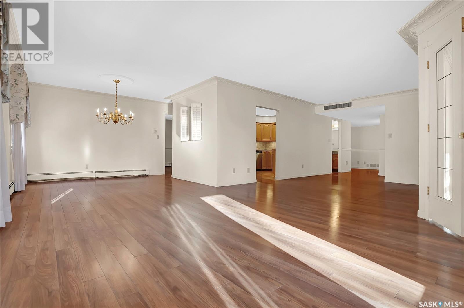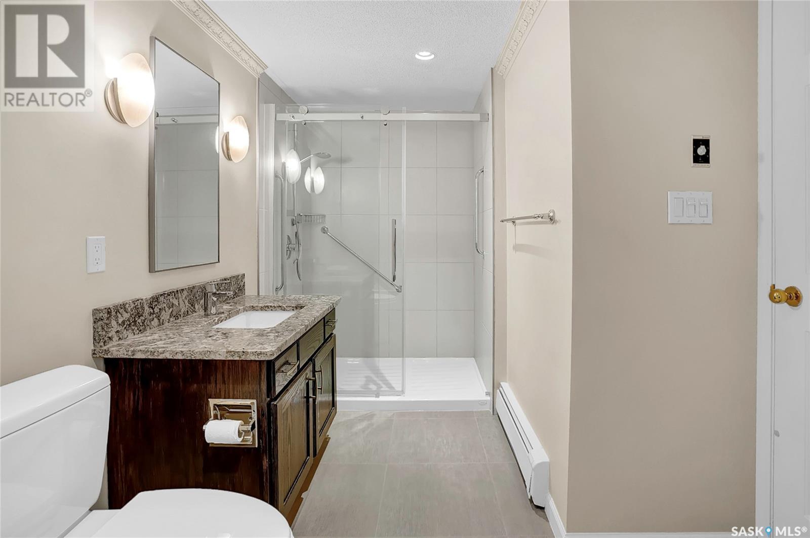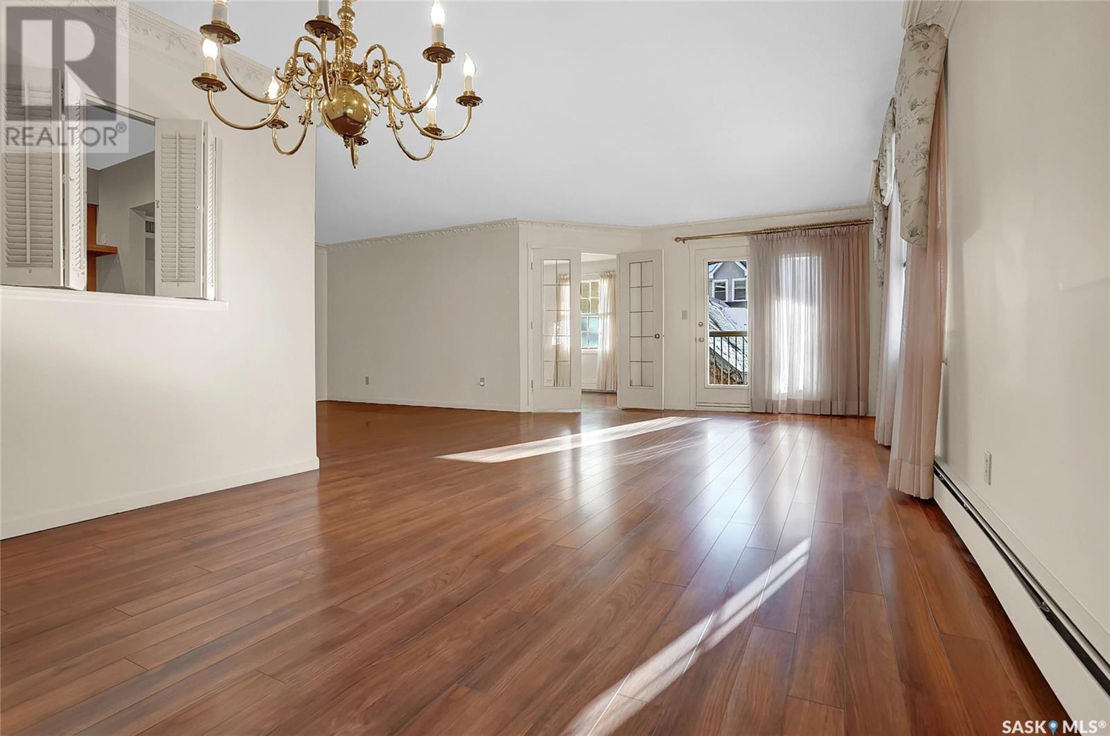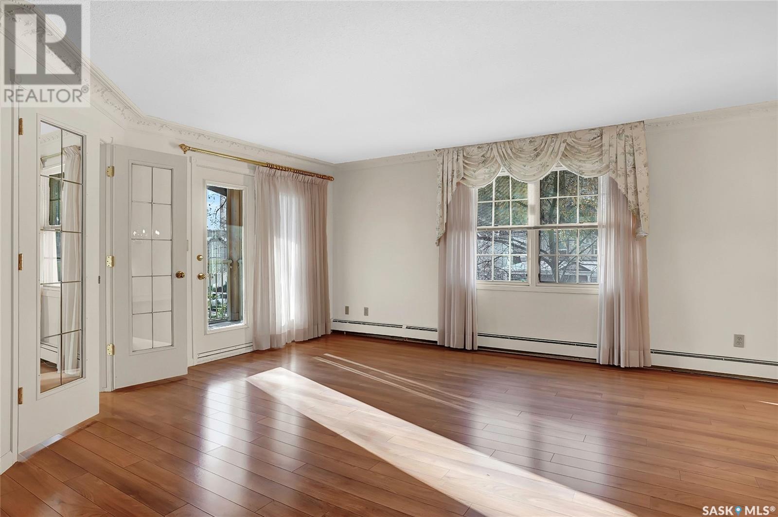 Welcome to #201 - 2315 Cornwall St! This exceptional and rare almost 1800 sq ft condo is ready for it's new owner. This home has been meticulously cared for by its original owner and features upgraded finishes and calm, comfortable tones throughout. The complex is located ideally in Regina's Transition Area, making it very walkable to all amenities and downtown living. Inside this unit you will find a large foyer area welcoming you into this executive style apartment. A handy full bath is located adjacent the front entry, as well as a large storage room and laundry with built in cabinetry. The sitting room is ideal for entertaining and is flanked by the family room, dining room, and kitchen. The kitchen offers an incredible amount of storage space, is well lit, and perfectly laid out to make even the most difficult of dinner parties a breeze. The dining area is large enough to accommodate even up to 10 for dinner, and gives way to the second family room space. There is a large secondary bedroom here which could also be an office for the at-home worker. Continuing on, there is a lovely and private den space featuring tons of natural light and a gas fireplace, with two French doors to accent. The primary bedroom is very large and offers enough room for your entire King Sized bed set, as well as a sitting area, and direct access to the updated ensuite. The ensuite features a deep soaker tub on one side, and beautiful tiled shower on the other, along with modern flooring and built in storage. Finishing off this truly unique property is a large screened in balcony and TWO underground heated parking stalls. Value added items include: all appliances, central air, screened in balcony, gas fireplace, fresh ensuite renovation, condo fees include heat and water, TWO heated underground parking stalls, car wash station, a huge amenities room, workshop, and more! (id:22211)