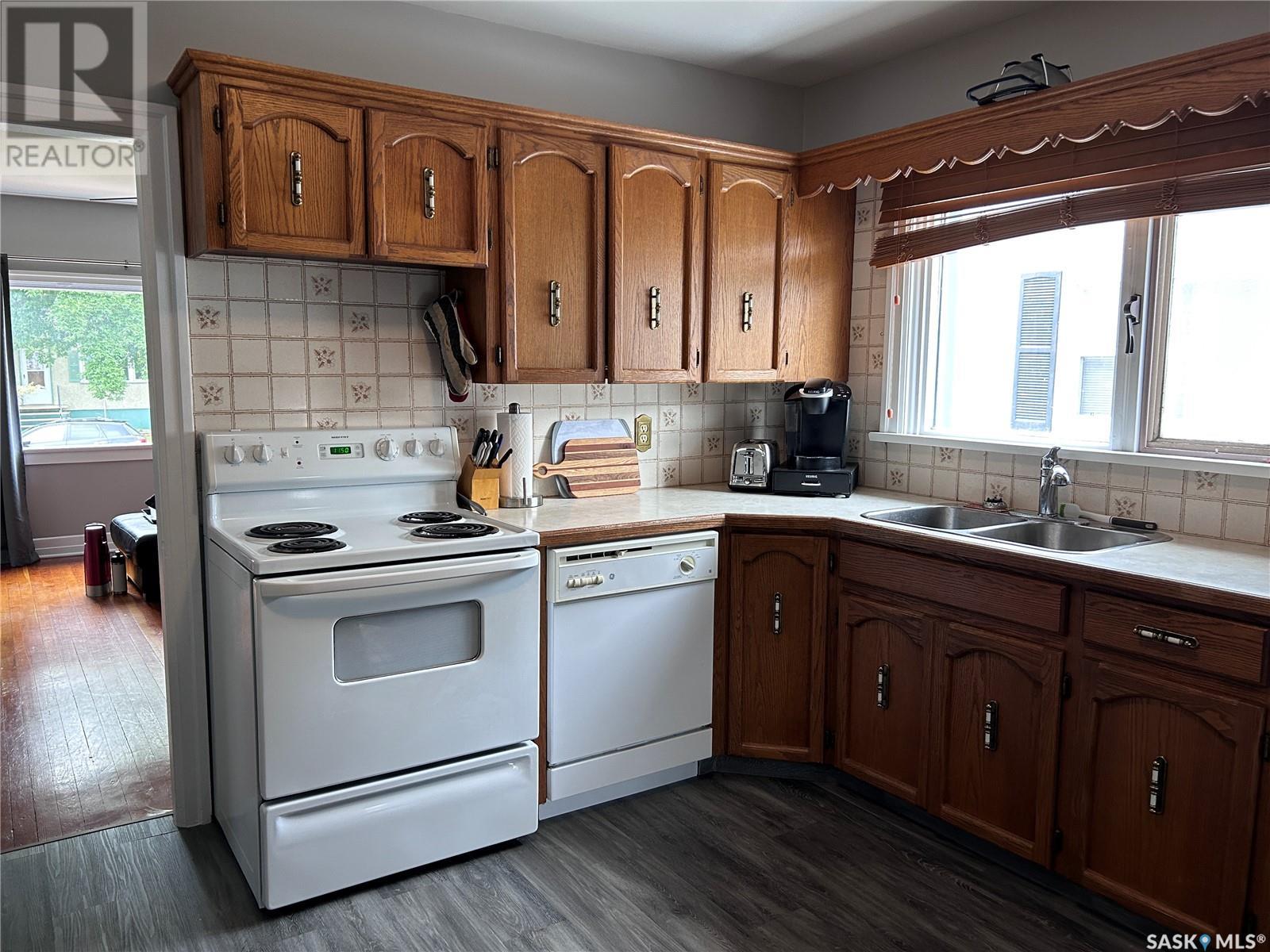 Excellent First-time home for young buyers, or ideal for someone wanting to downsize. Very well maintained, comfortable, affordable, a great location & with great curb appeal. Lots of larger windows allowing for natural light and lots of sunshine. Kitchen area has south exposure. Eat-in Kitchen features darker oak stained cabinets, lots of counter space, appliances (including dishwasher) & new vinyl plank flooring. Living room is good sized with a large picture window and original hardwood floors, that also carry throughout the hallway and 2 bedrooms. Both bedrooms are quite good in size, and give closet space. Bathroom has had upgrades in past few yrs. & there is a window, pedestal sink & tub with surround. The home is freshly painted in soft grey tones with white trim. Basement is developed and provides a Rec /family room area: laminate flooring, with window and then an extra area that is currently used as a large combination bedroom/den with a little sink (a teenager’s delight! ). High efficient furnace. Newer chain link fence at laneway with other 2 fences of wood. Exterior has been upgraded to Vinyl Siding with rapped insulation under vinyl. The lot is very spacious, has a lane at the rear of property, and to complete; a deck to sit and enjoy evenings, barbecue and to entertain. Single garage with room for vehicle & storage space. A great home awaits new owners to enjoy! (id:22211)