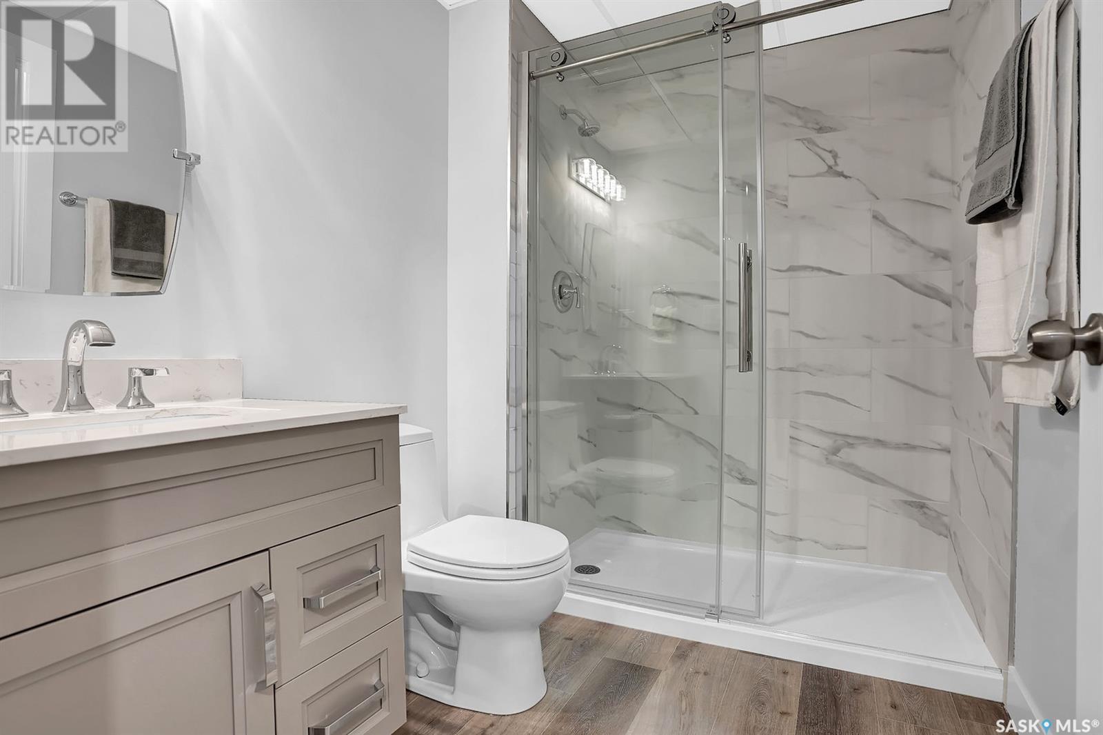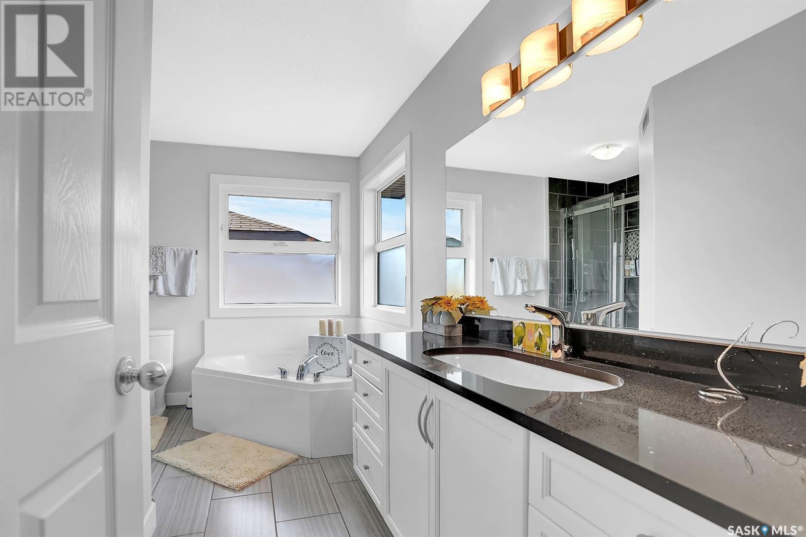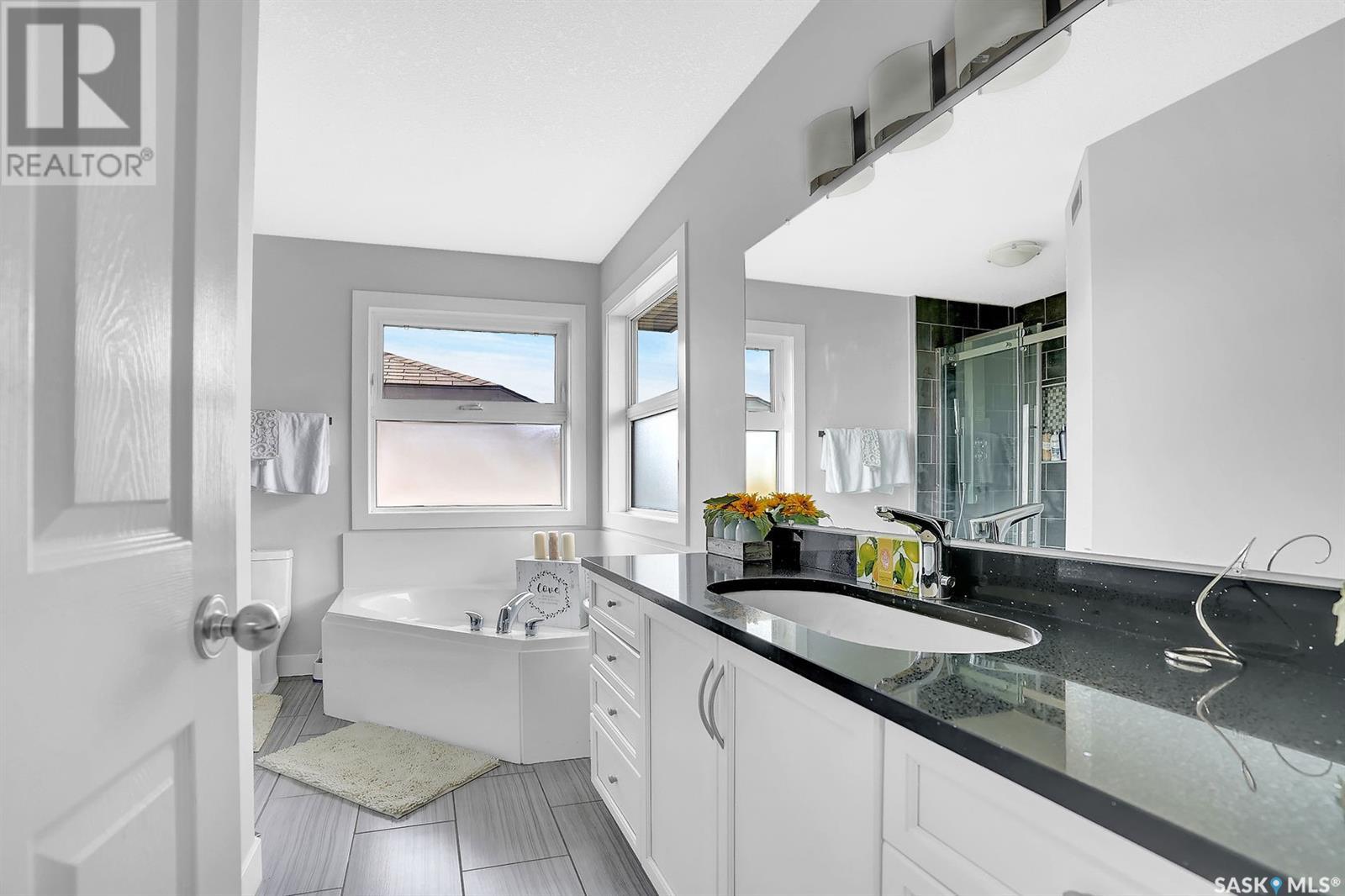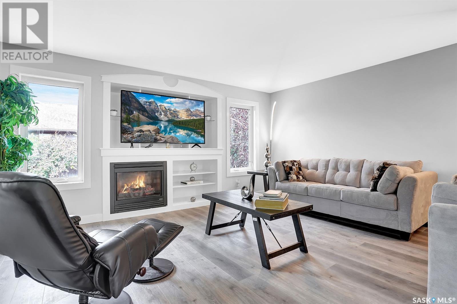 Fully renovated 2 story 5 bedrooms and 4 bathrooms in established neighbourhood of Windsor Park park. Welcome home to 2863 Sunninghill crescent nested in one of East Regina's most desirable neighbourhoods, close to east end amenities and schools; Jack Mackenzie, W.F. Ready and St. Gabriel Schools, the French Immersion school option for this area is Ecole St. Elizabeth School . Entering you find a spacious front entry with a large bright window leading to the large cozy living room with a gas fireplace and built-in media center, open to the eating area and kitchen with lots of counter space. The modern white contemporary kitchen features quartz countertops, a lazy susan turntable corner cabinets, stainless appliances, and a comfortable bright dining area. The main floor is complete with private laundry and a half bath with a granite top. Luxury vinyl plank flooring flows throughout the main and basement for minimal maintenance. The second level boasts a dream primary bedroom with a built-in walk-in closet and a beautiful ensuite bathroom with a large shower, an elongated oval Kohler enamel cast iron under mount basin with a touch-less tap and a jacuzzi tub. Two more bedrooms and another gorgeous 4pc. bath complete this level. What makes this home so special is the well-designed basement (city permit in supplement ) with two additional large bedrooms, a large fully tiled shower (3-piece bath ), and a recreational room that offer an incredibly bright and inviting space to hang out and relax. The yard is landscaped and fenced with matured trees (apple tree) /shrubs with underground sprinklers. The patio stepped down to a lower level for private, intimate seating space, a garden plot, and still, room for the family to play, and a garden shed. This home is professionally renovated and inspection report for basement development in the supplement. Pictures were taken last year . Reach out to the listing agent for any more details and book your showing today. (id:22211)