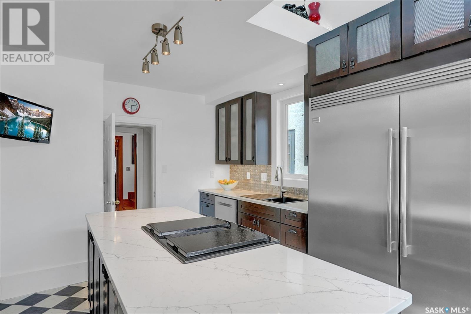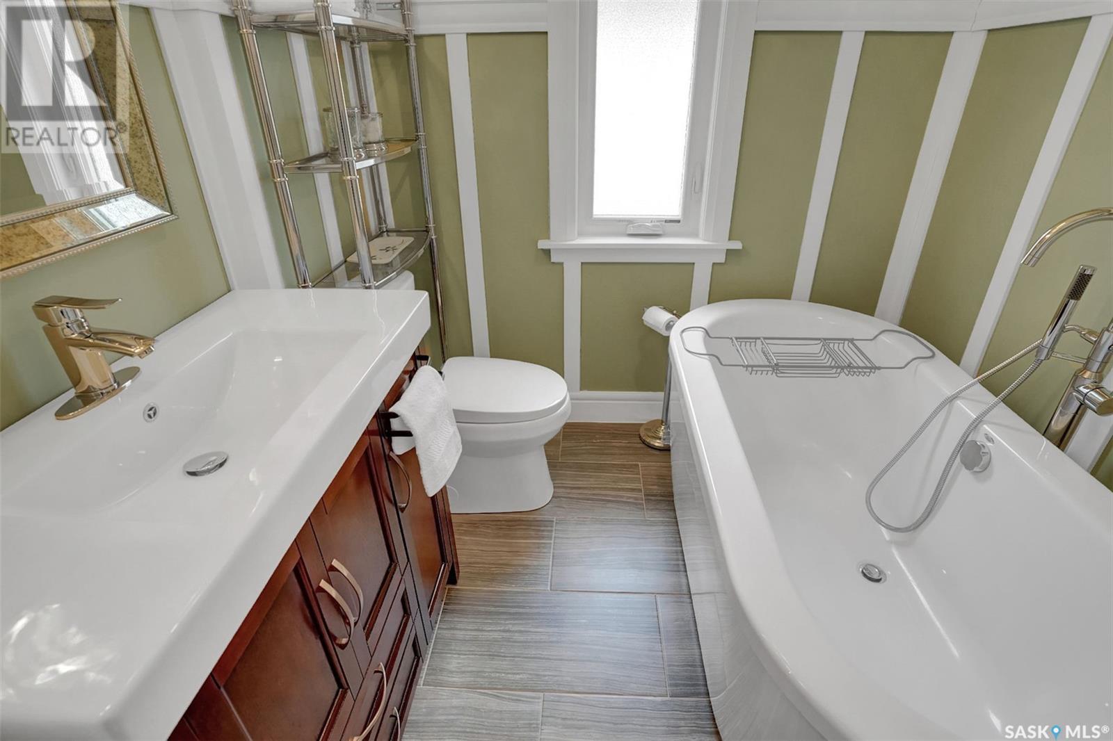 Have you been searching for that Lakeview property that offers all the character you’d expect mixed with all the modern renovations you really want? Well 2915 Angus St is that perfect mix, situated within walking distance to the Legislative building and Wascana Lake, a quick commute to downtown. The large windows and white walls allow the natural sunlight to flow throughout the home making it bright and inviting. The living room is spacious with a functional wood burning fireplace to cozy up in front of during our cold winters. The dining room is a generous size with a patio door that spans the whole wall and leads into the backyard, perfect for a summer dinner party. The kitchen has been fully renovated with ceiling height cabinets, soft close doors and drawers, a massive island, quartz countertops, skylight, stainless steel appliances, fridge freezer combo and slide in stove. There is another patio door in the kitchen to your fully fenced backyard featuring access to your single car garage(overhead door is manual) and a deck. The stunning original hardwood flooring runs throughout the entire main level except for the kitchen and then continues up the stairs to the second level. There are 3 bedrooms located on the second level, the primary bedroom overlooks the front of the house. The middle bedroom is ideal for an office or nursery, while the bedroom that overlooks the backyard is a nice size and offers 2 closets. The main bathrooms upstairs has been stunningly renovated with a deep freestanding soaker tub. The basement is fully developed with a family room featuring a wet bar, a good sized bathroom, plenty of storage and a nice sized laundry room with many built-in cabinets throughout the basement to easily organize and hide away all those toys, games, crafts, tools, knick knacks, etc. Don’t miss your opportunity to own a home in Regina’s Lakeview neighborhood, contact your real estate agent today to book your showing! (id:22211)