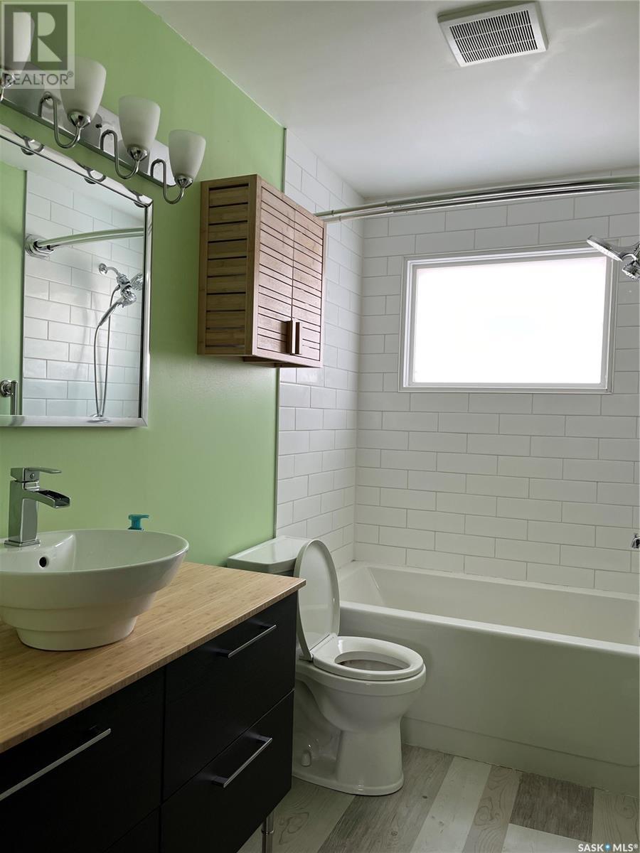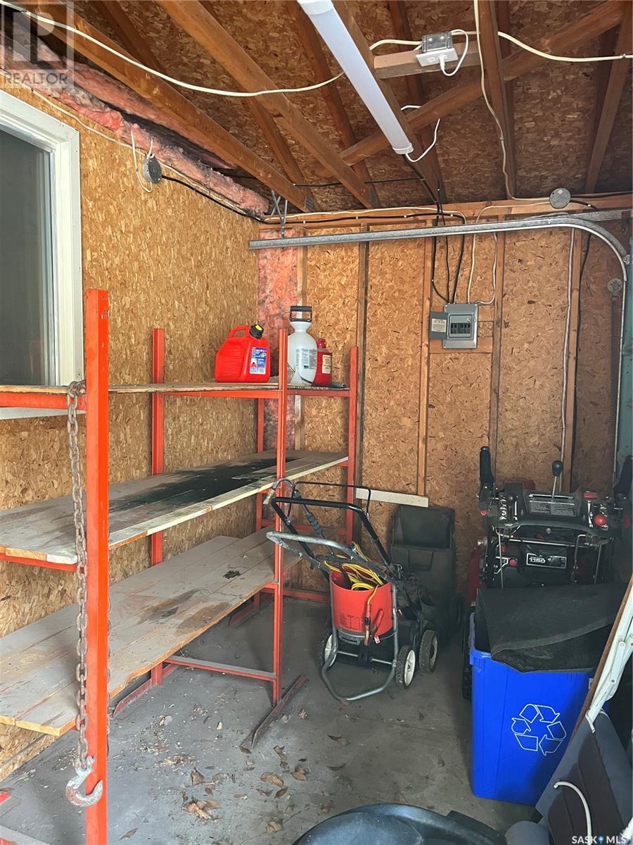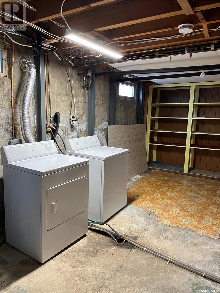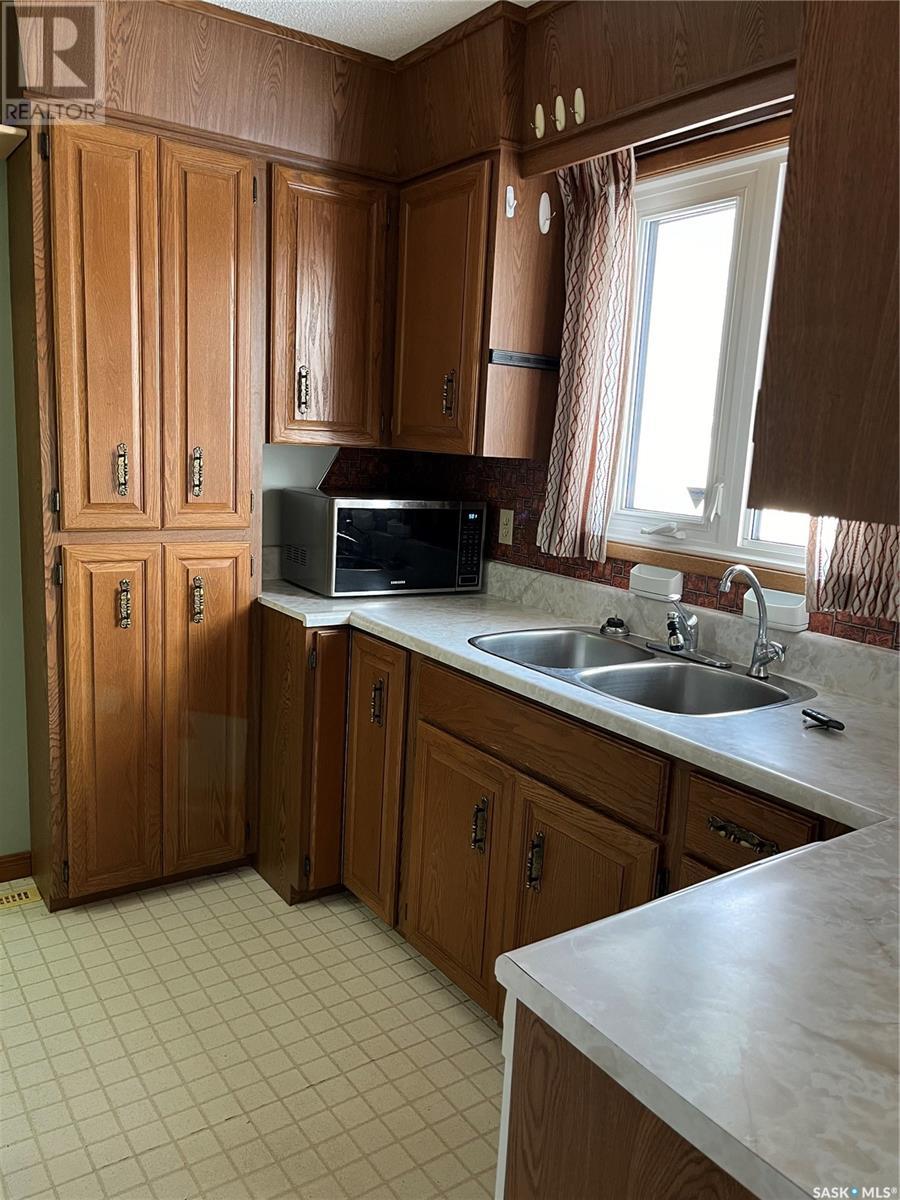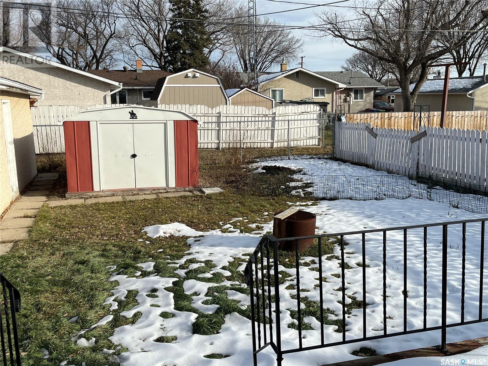 This 918 sq. ft. bungalow is the ideal starter home. This house needs some cosmetic work, but has lots of potential. Located in the quiet neighbourhood of Regent Park this house is close to amenities such as schools, restaurants, shopping and movie theatre. Location has easy access to Pasqua St. North and the Ring Road. The main floor offers a spacious living room with large windows and original hardwood flooring. Kitchen offers oak cabinets with an eating space that has direct access to the deck. Updated main floor bathroom. Basement is developed with large recreational room and 4 piece bathroom. Original floor plans included. Double car detached garage that currently has one half for parking and the other half has been turned into a separate heated workshop. Lawn mower and snowblower included. Garage door opener and microwave less than a year old. Open House: Sunday, January 14th 12-2pm (id:22211)