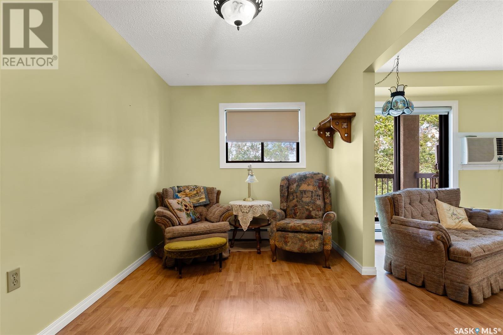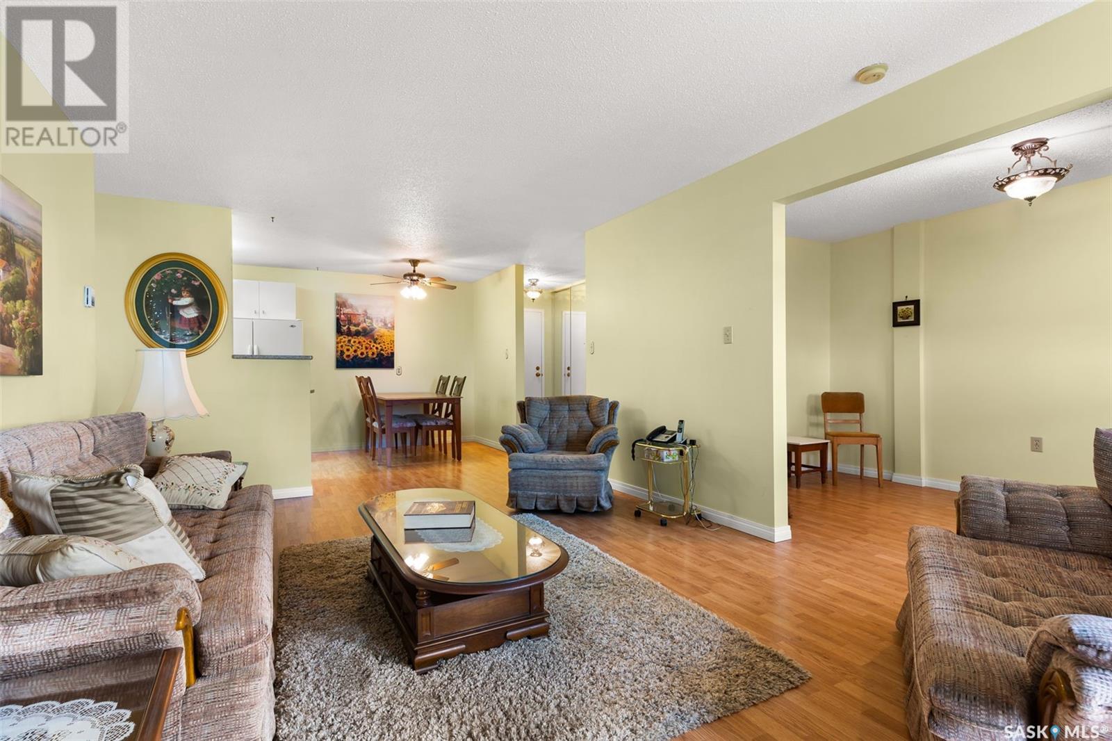 Welcome to The Gardens, located in east Regina. This stunning apartment-style condominium offers a prime location within walking distance of the University of Regina, Douglas Park, and Wascana Park, with easy access to biking and walking paths. Enjoy the convenience of nearby east-end amenities, including Siast, Arcola Avenue, and Ring Road. This spacious apartment- style condominium features 1,080 sq ft of living space, boasting 2 bedrooms plus a den, 2 bathrooms, a galley-style kitchen with all appliances, a designated dining room, a cozy living room, in-suite laundry, ample storage space, and a large deck. The unit includes an electrified surface parking stall conveniently located near the front entrance. The complex also provides an amenities room with exercise equipment, a pool table, shuffleboard, an elevator, visitor parking, and wheelchair accessibility. With condo fees covering heat, water, sewer, standard area maintenance, recycling, trash bins, insurance (common), lawn care, reserve fund, and snow removal, The Gardens offers a hassle-free and luxurious living experience. (id:22211)