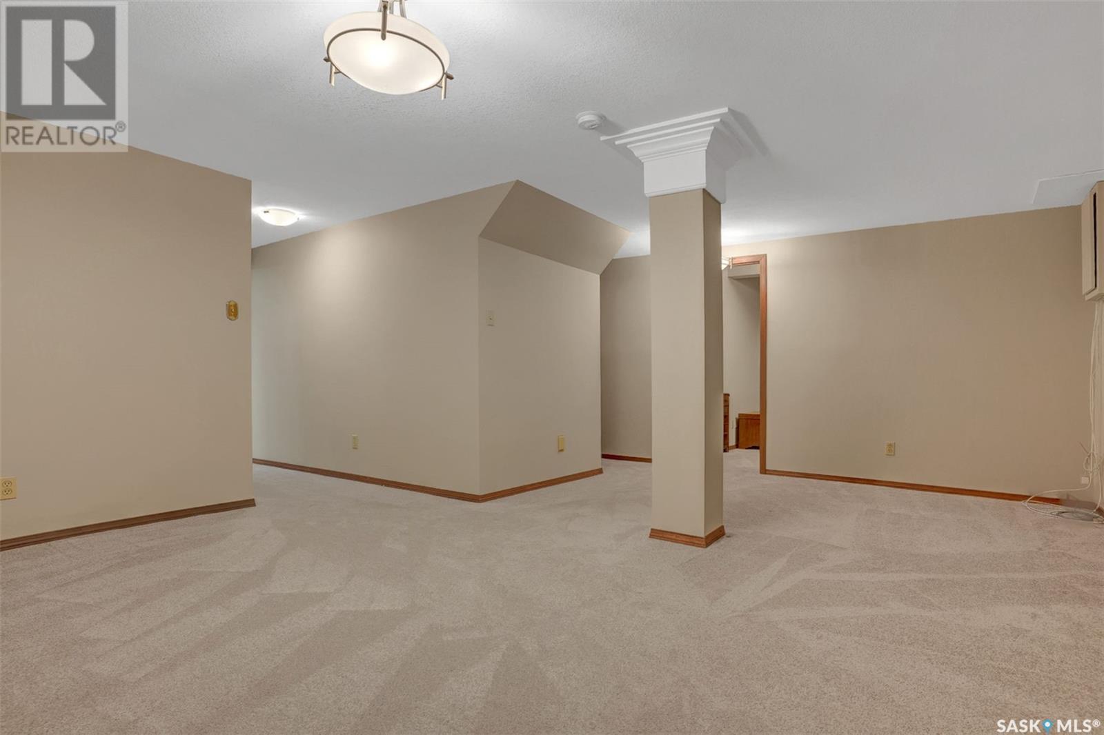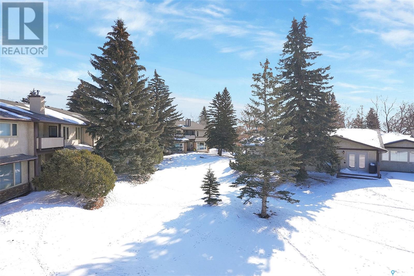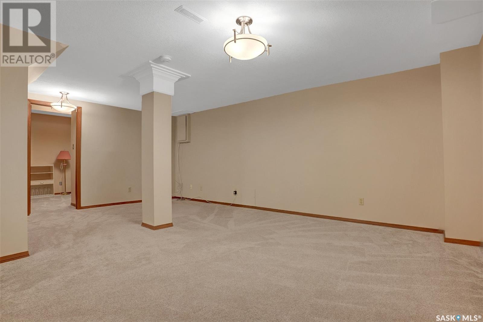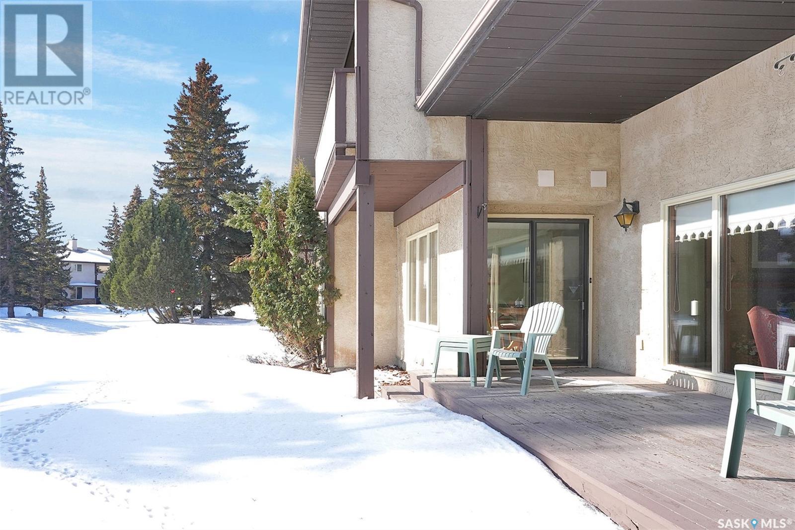 Flooded with sunlight, this 1,800 two storey condo is ready for new owners to call it home. Located in the Stratford Place complex in Regina’s Gardiner Park neighbourhood, this end unit offers 2 bedrooms, 4 bathrooms and double attached garage and visitor parking close to the unit. The front entrance is spacious with a modern chandelier and overlooks the sunken living room that is flooded with sunlight from the large windows that offer views of the greenspace behind your unit. The living room is highlighted with a vaulted ceiling and gas fireplace with a stunning brick surround. The kitchen has plenty of white cabinetry and a large kitchen dining space with windows that overlook the greenspace and a patio door that leads onto your deck, a quiet place to enjoy your morning coffee in the summer months. There is a separate formal dining space on the other side of the kitchen, a large pantry and a 2 pc bathroom. Plus, there is the ability to add in main floor laundry if desired. Upstairs houses both bedrooms and a cozy sitting room that overlooks the sunken living room. The primary bedroom is a generous size featuring a balcony with greenspace views, 2 closets and an ensuite with soaker tub and separate shower, the perfect bedroom oasis. The second bedroom also has a 4 pc ensuite. The basement is fully developed, you’ll find the laundry room with cabinets, counter space, extra space for storage, a family room with plush carpets, and 2 dens, one with a nice sized closet and another that is great for storage, craft or hobby room. If you’ve been searching for a condo because it is low maintenance but want the size and feel of a single family home, this is the perfect blend of both. Call your real estate agent and book your showing today! (id:22211)