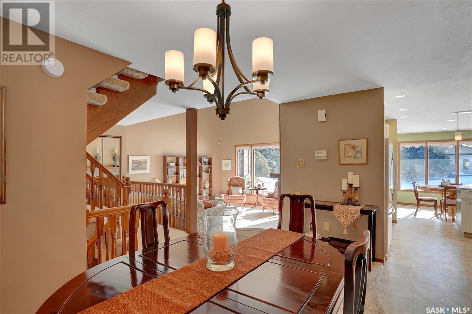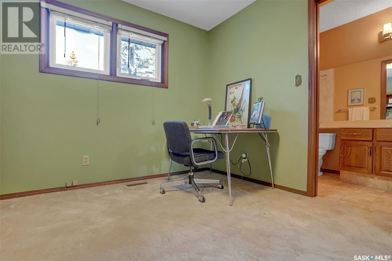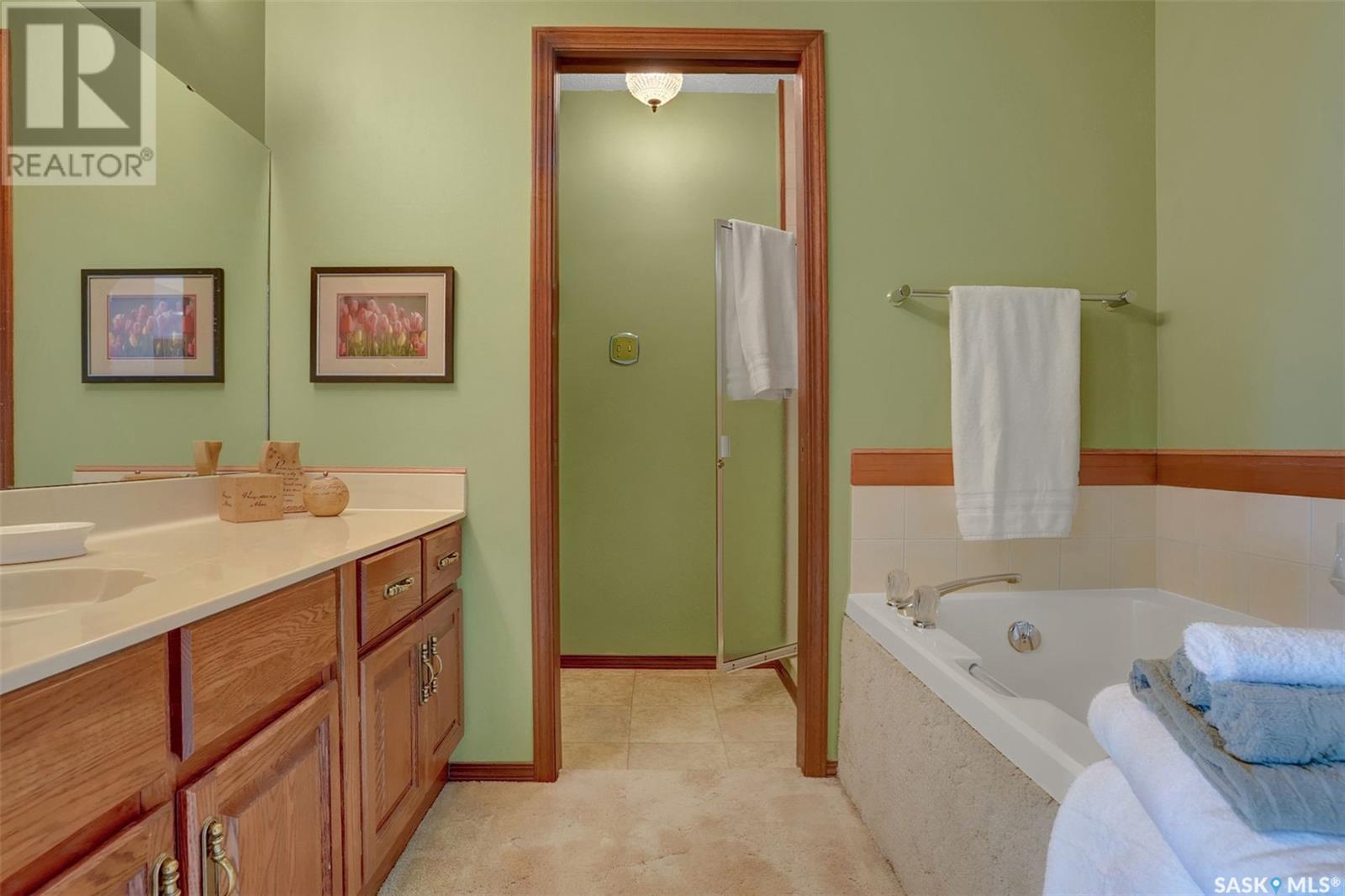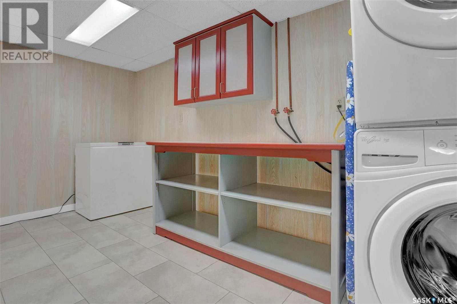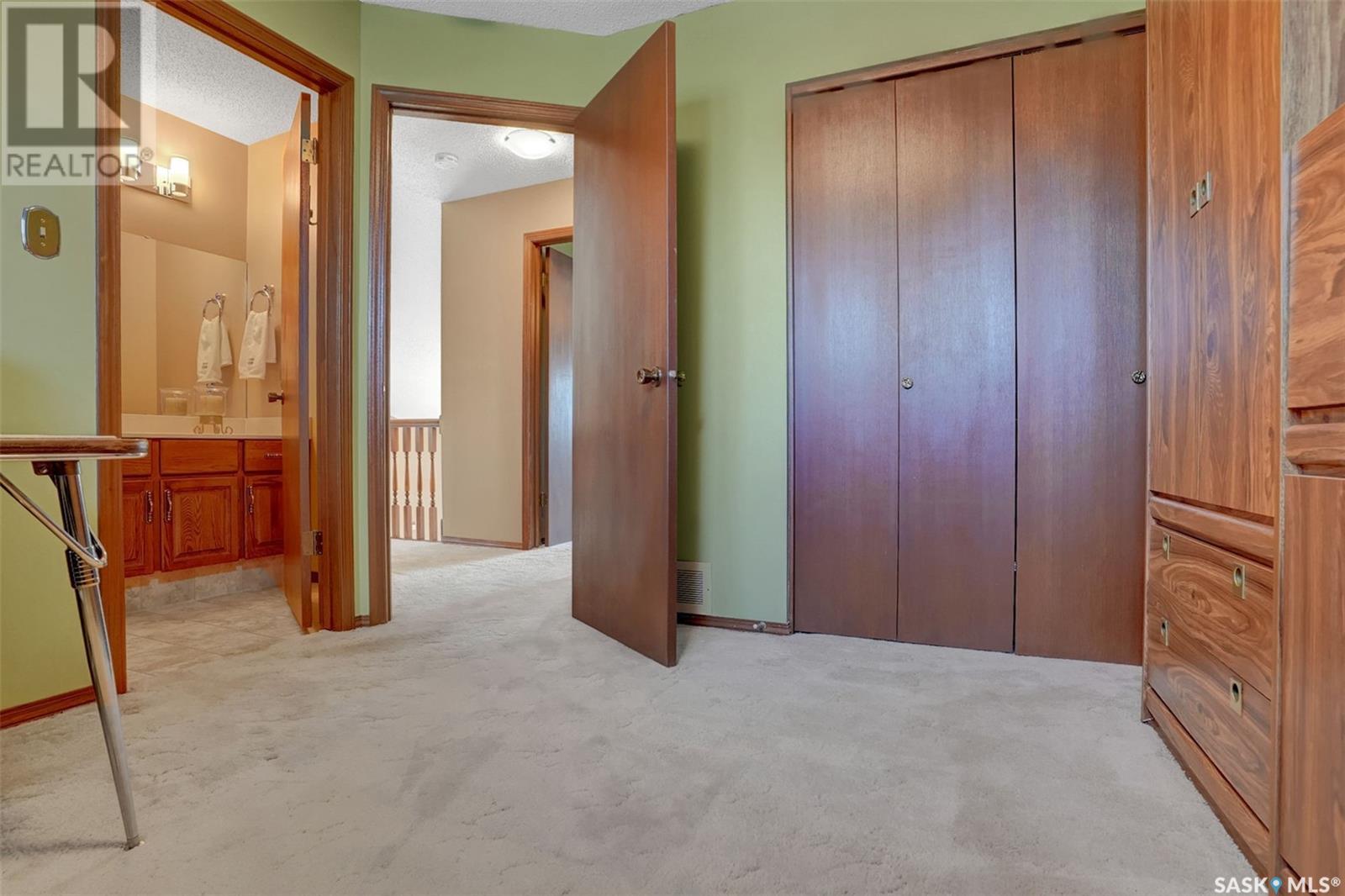 Flooded with sunlight, this 1,800 two storey condo is ready for new owners to call it home. Located in the Stratford Place complex in Regina’s Gardiner Park neighbourhood, this end unit offers 2 bedrooms, 4 bathrooms and double attached garage and visitor parking close to the unit. The front entrance is spacious with a modern chandelier and overlooks the sunken living room that is flooded with sunlight from the large windows that offer views of the greenspace behind your unit. The living room is highlighted with a vaulted ceiling and gas fireplace with a stunning brick surround. The kitchen has plenty of white cabinetry and a large kitchen dining space with windows that overlook the greenspace and a patio door that leads onto your deck, a quiet place to enjoy your morning coffee in the summer months. There is a separate formal dining space on the other side of the kitchen, a large pantry and a 2 pc bathroom. Plus, there is the ability to add in main floor laundry if desired. Upstairs houses both bedrooms and a cozy sitting room that overlooks the sunken living room. The primary bedroom is a generous size featuring a balcony with greenspace views, 2 closets and an ensuite with soaker tub and separate shower, the perfect bedroom oasis. The second bedroom also has a 4 pc ensuite. The basement is fully developed, you’ll find the laundry room with cabinets, counter space, extra space for storage, a family room with plush carpets, and 2 dens, one with a nice sized closet and another that is great for storage, craft or hobby room. If you’ve been searching for a condo because it is low maintenance but want the size and feel of a single family home, this is the perfect blend of both. Call your real estate agent and book your showing today! (id:22211)