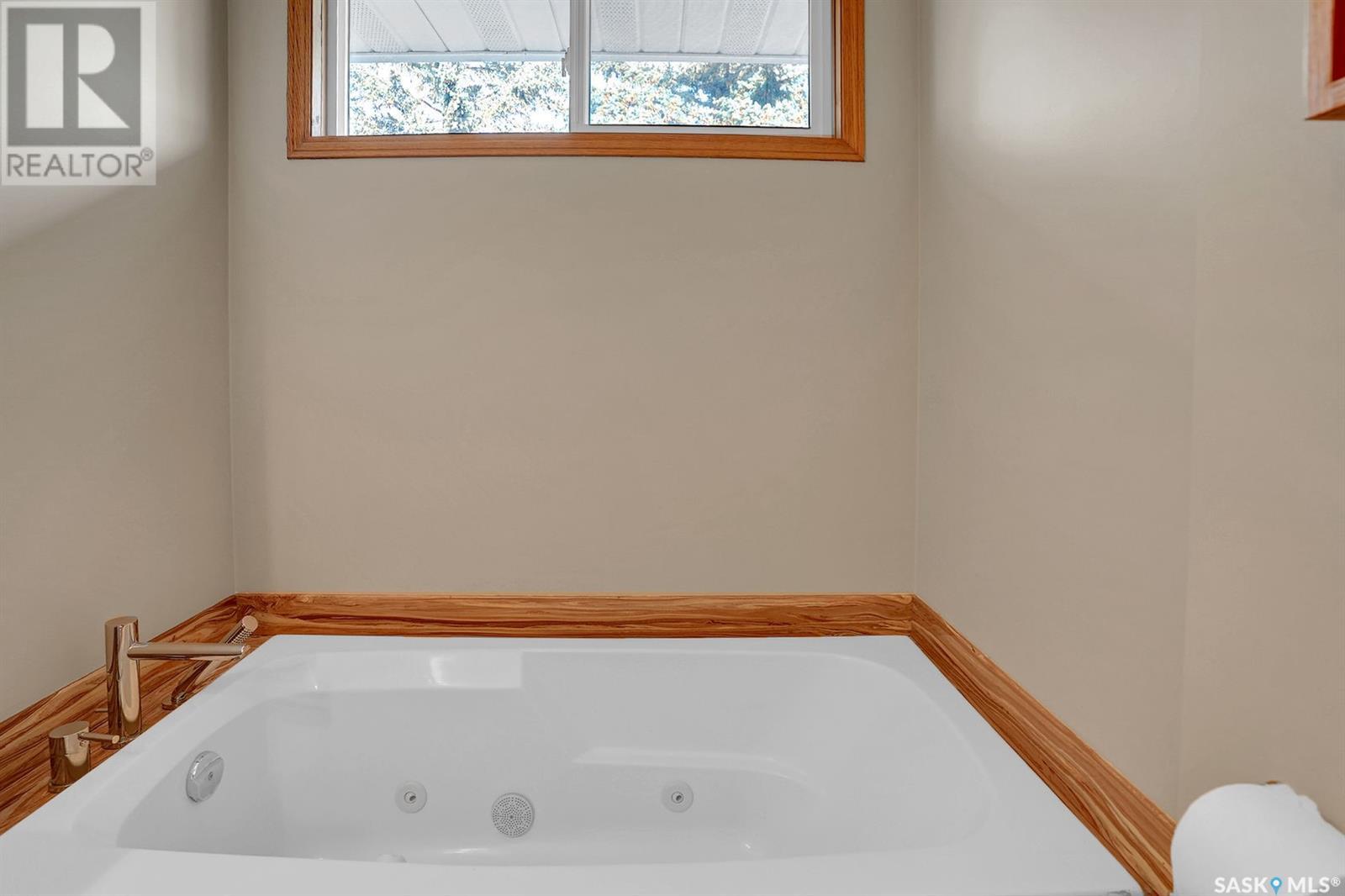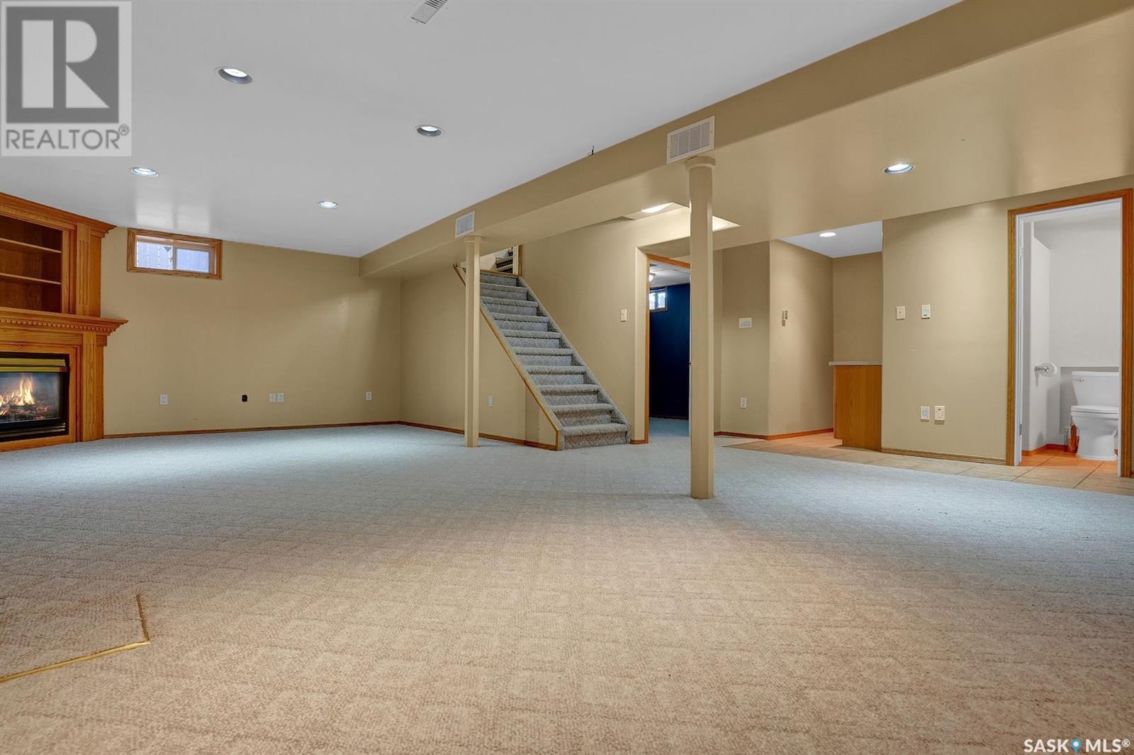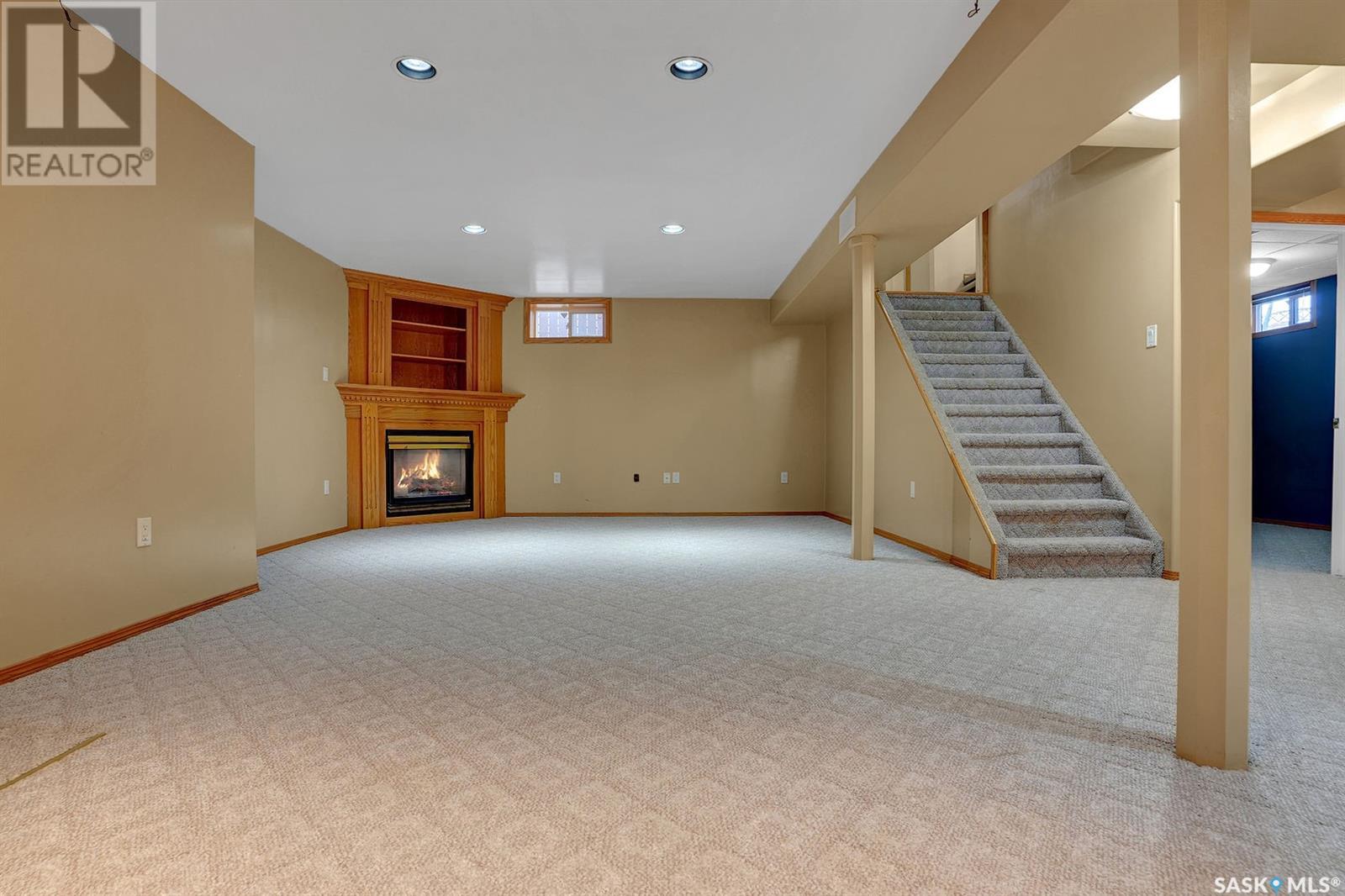 Welcome to 36 Dryburgh Crescent in Walsh Acres! In a prime location on a large pie lot backing Lakeridge Sports Park, this well maintained and updated bungalow is move in ready! With great curb appeal, this home welcomes you as you walk up to the front door. The floor plan is extremely practical. A nice size living room with south exposure and beautiful hardwood floors greets you. The kitchen is stunning with an abundance of updated cabinets, granite counters, S/S appliances, under and above cabinet lighting, undermount sink + garburator, pantry with roll out drawers and peninsula lighting. The dining area is a good size and has patio doors leading to a large maintenance free deck that overlooks a large backyard that has a fantastic paving stone patio, mature trees, is fully fenced, 2 storage sheds, and lots of space for whatever you want! The private backyard is truly wonderful! Back inside, the main bath has been updated and includes a jet tub to relax and rejuvenate. All 3 bedrooms on the main are a decent size. Entire main floor just painted in a warm, neutral tone (Oct/Nov 2023). The basement is awesome with a nice rec room with built in speaker wire in the ceiling and a corner gas fireplace with upper build ins, extra large bedroom with great storage, updated bathroom, a wet bar area, and a super functional, large laundry room with sink and tons of storage space. Updated HE furnace is nicely tucked away. Single insulated and heated attached garage with lots of storage cabinetry offering direct entry (floor recently painted with epoxy). Windows and doors on main have been updated. Exterior boasts new 40 yr shingles, vents, fascia, eaves, and downspouts (2023). Extra value items include central air, Beam central vac, updated appliances, front deck and railing, updated concrete driveway and walkway, 2 storage sheds, and RV parking. A real gem of a property! (id:22211)