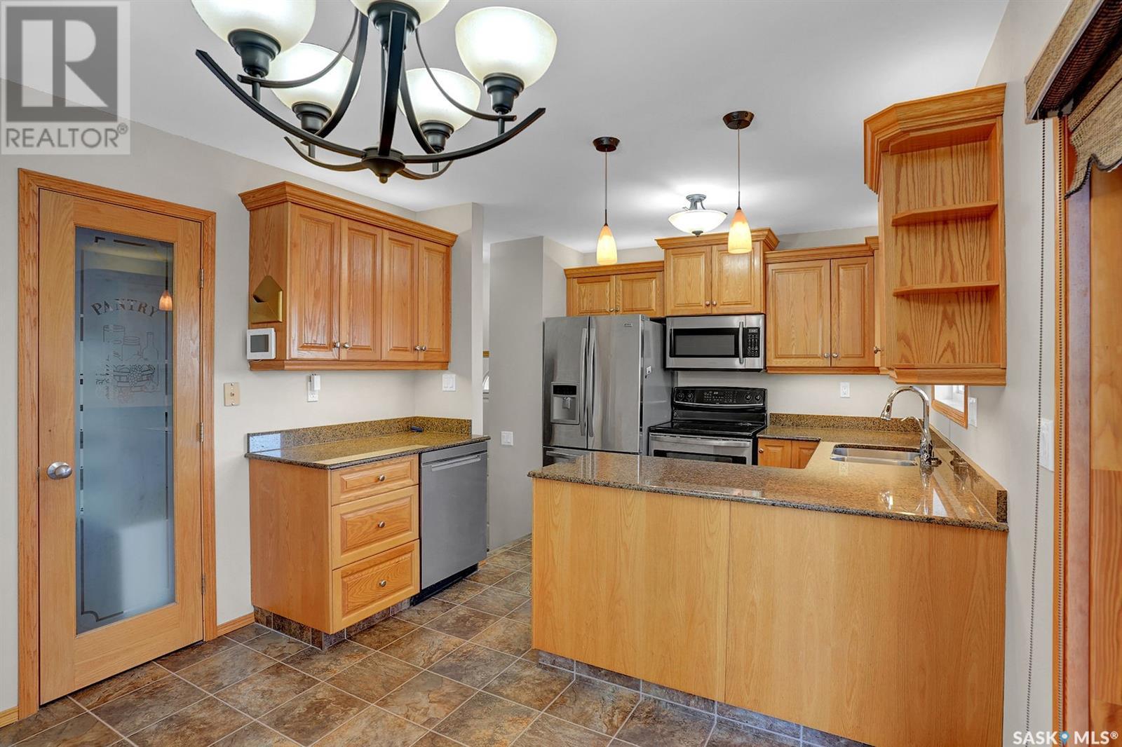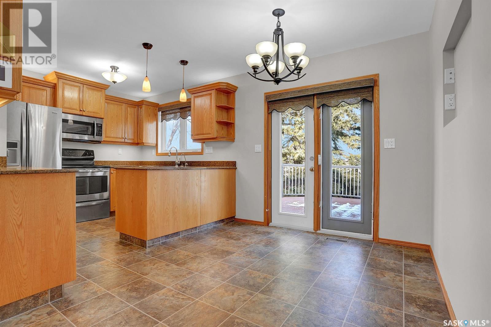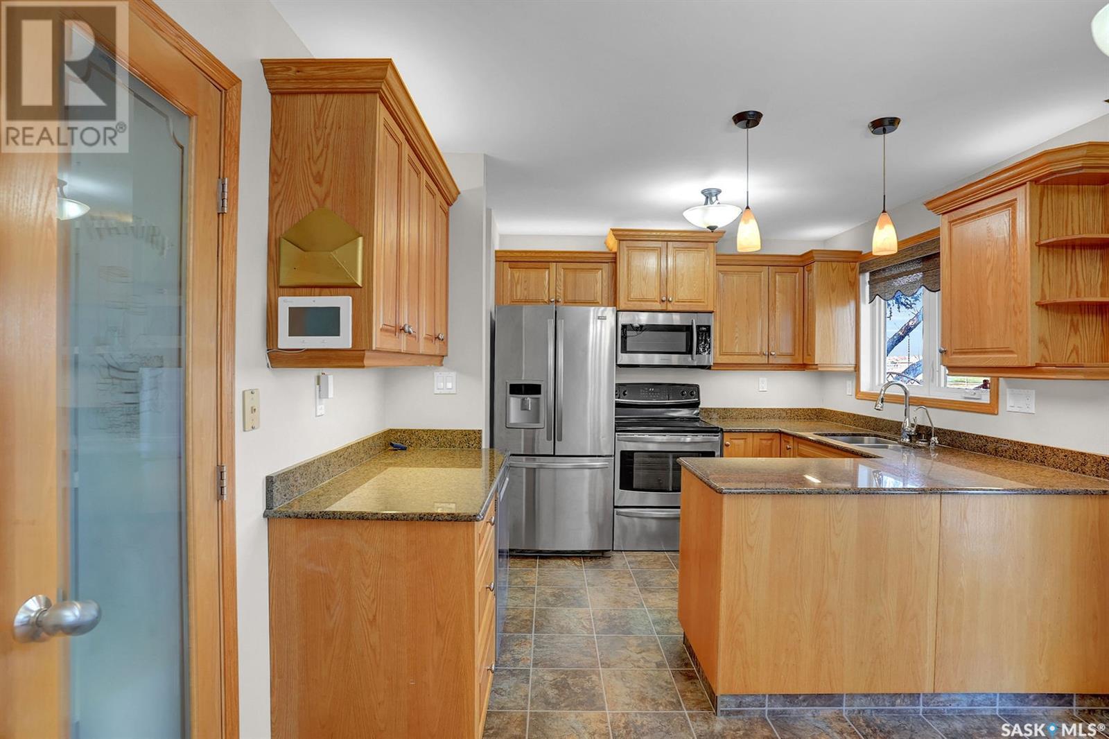 Welcome to 36 Dryburgh Crescent in Walsh Acres! In a prime location on a large pie lot backing Lakeridge Sports Park, this well maintained and updated bungalow is move in ready! With great curb appeal, this home welcomes you as you walk up to the front door. The floor plan is extremely practical. A nice size living room with south exposure and beautiful hardwood floors greets you. The kitchen is stunning with an abundance of updated cabinets, granite counters, S/S appliances, under and above cabinet lighting, undermount sink + garburator, pantry with roll out drawers and peninsula lighting. The dining area is a good size and has patio doors leading to a large maintenance free deck that overlooks a large backyard that has a fantastic paving stone patio, mature trees, is fully fenced, 2 storage sheds, and lots of space for whatever you want! The private backyard is truly wonderful! Back inside, the main bath has been updated and includes a jet tub to relax and rejuvenate. All 3 bedrooms on the main are a decent size. Entire main floor just painted in a warm, neutral tone (Oct/Nov 2023). The basement is awesome with a nice rec room with built in speaker wire in the ceiling and a corner gas fireplace with upper build ins, extra large bedroom with great storage, updated bathroom, a wet bar area, and a super functional, large laundry room with sink and tons of storage space. Updated HE furnace is nicely tucked away. Single insulated and heated attached garage with lots of storage cabinetry offering direct entry (floor recently painted with epoxy). Windows and doors on main have been updated. Exterior boasts new 40 yr shingles, vents, fascia, eaves, and downspouts (2023). Extra value items include central air, Beam central vac, updated appliances, front deck and railing, updated concrete driveway and walkway, 2 storage sheds, and RV parking. A real gem of a property! (id:22211)