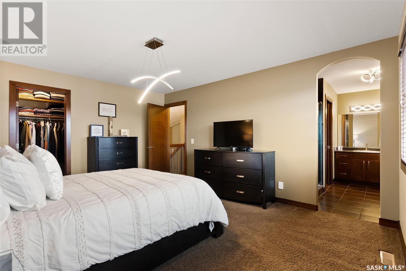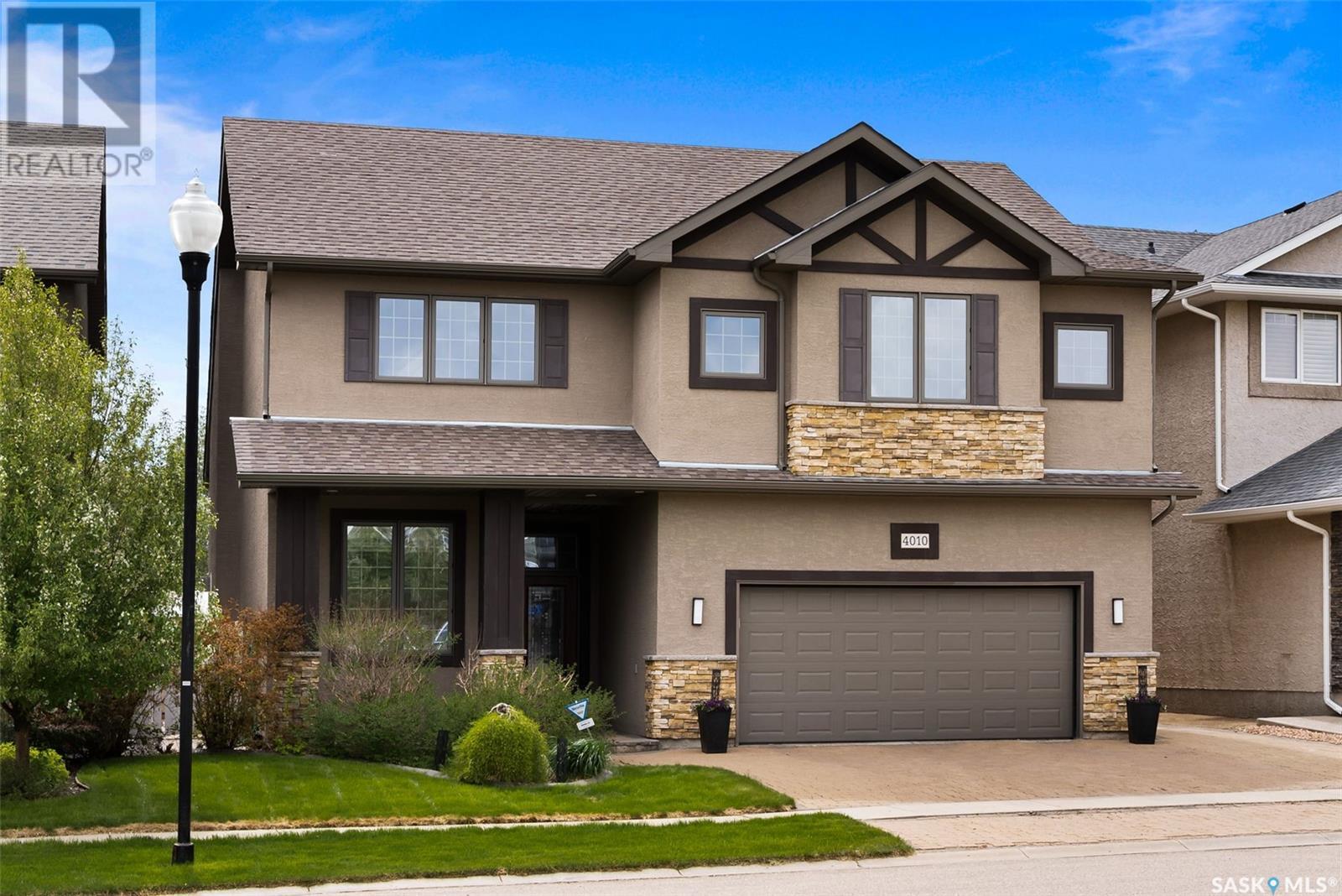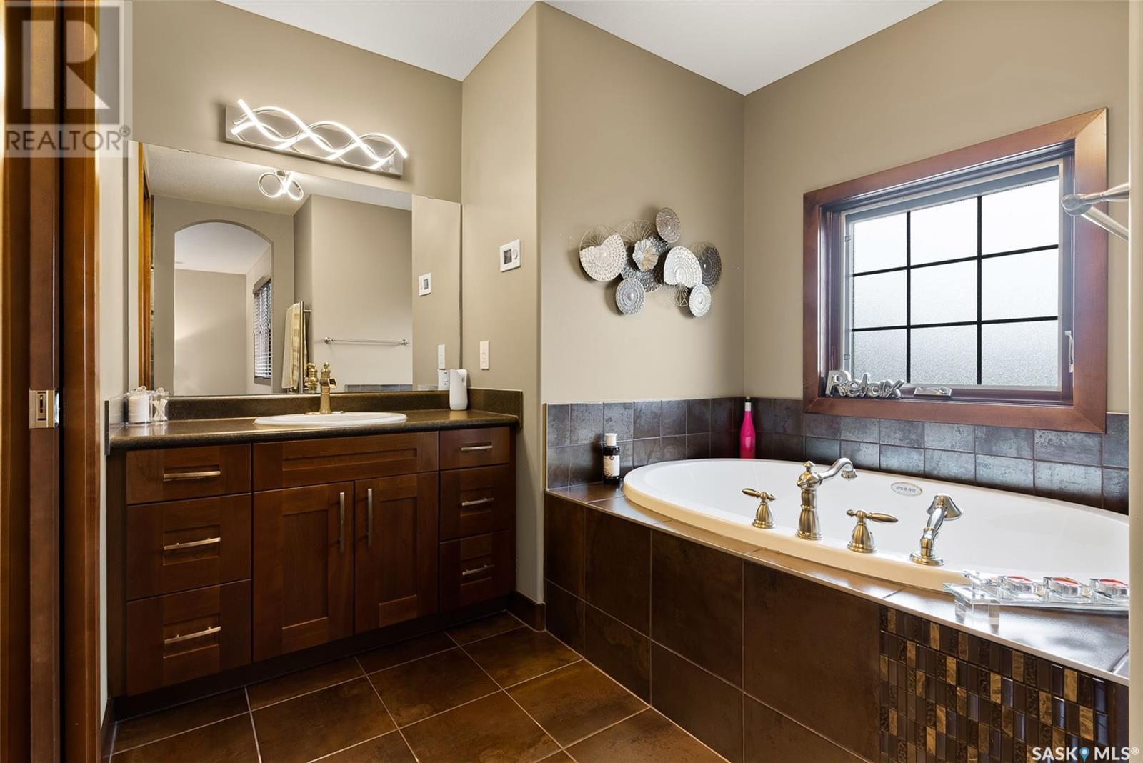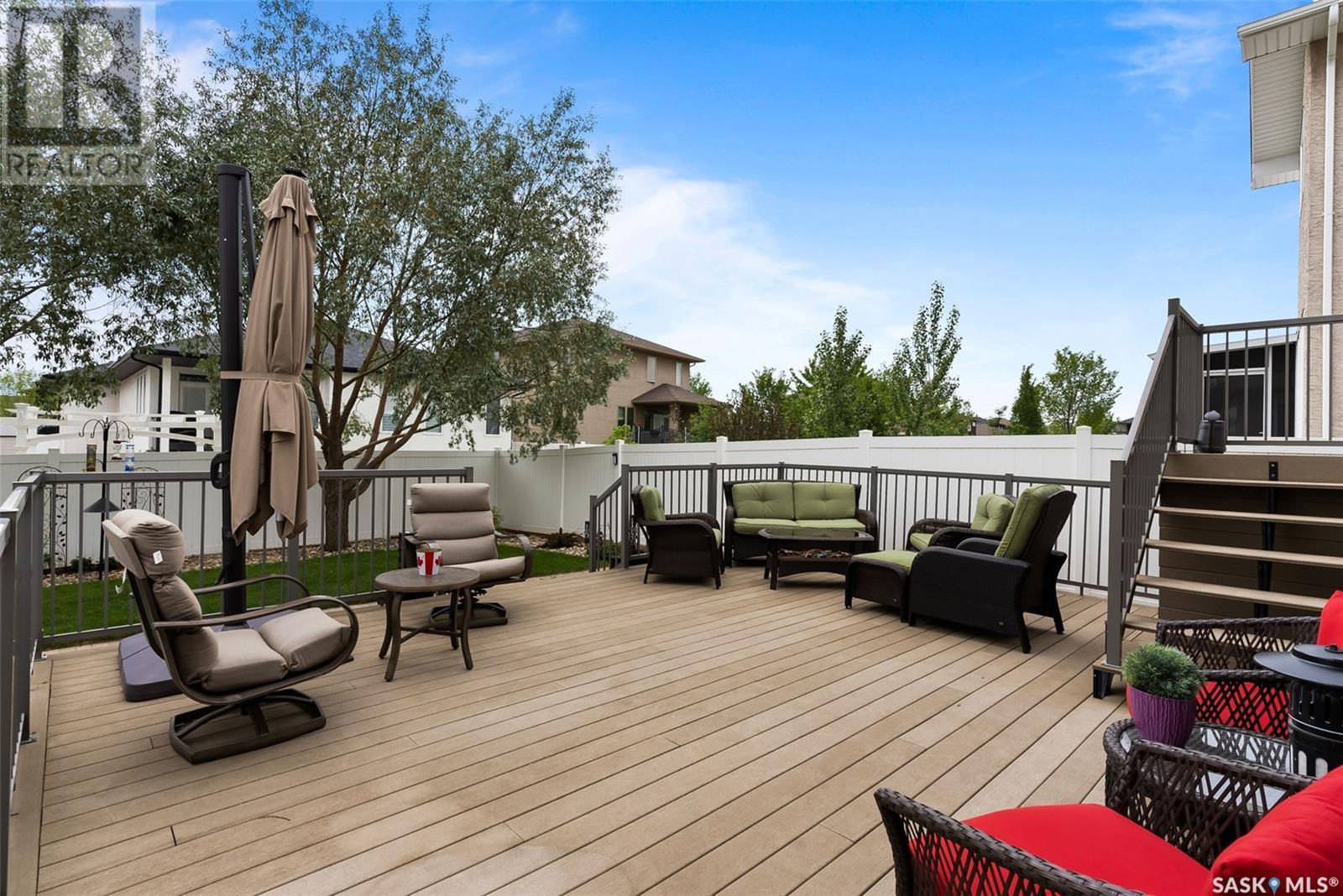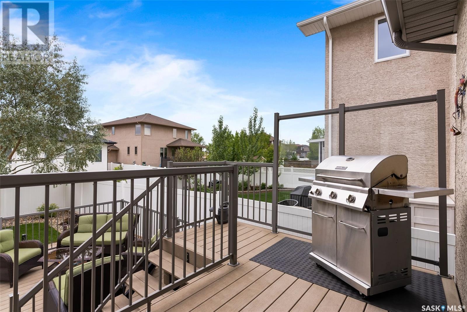 Welcome to 4010 Goldfinch Way in The Creeks - one of Regina’s most desirable neighbourhoods! This executive-style modified bi-level was a former show home built by Gilroy Homes. Offering 4 bedrooms and 3.5 bathrooms, this home has been completely upgraded from the beautiful maple hardwood floors, trims, doors, cabinetry, bathroom vanities to the built-in wall unit in the great room (with natural gas fireplace). There is a control 4 system that provides you with the ability to have music in the kitchen, living room, basement, and master bedroom and ensuite. Lighting has been updated to LED bulbs and fixtures. In the kitchen you will find a new fridge (2022) and dishwasher (2021). There is a natural gas cooktop and built-in oven and microwave. The pantry is very large - keeping everything off the granite countertops. The kitchen also has a Brondell Reverse Osmosis system that is also hooked up to the fridge. The master bedroom has a walk-in closet and the ensuite features a heated towel bar and a large jacuzzi tub. The third bedroom upstairs features fun areas that could be used as reading nooks for children – a definite must see. The garage (heated, insulated and drywalled)is an oversized 2 car garage, and the driveway is sized for 3 cars. The backyard is equally as stunning – it features 1200 sq ft of no maintenance composite decking and interlocking brick patio. It is an entertainer’s dream backyard. The thermostat in the great room has been upgraded to a digital thermostat that can be controlled by your phone. The water heater was replaced in 2021 and the air conditioner was replaced in May 2023 with a 10-year warranty. Also included in this home is a central vac, upgraded bidet toilets, a beautiful home office right beside the front door, a large mud room and much more. Call listing agent today for your personal viewing of this gorgeous home! (id:22211)